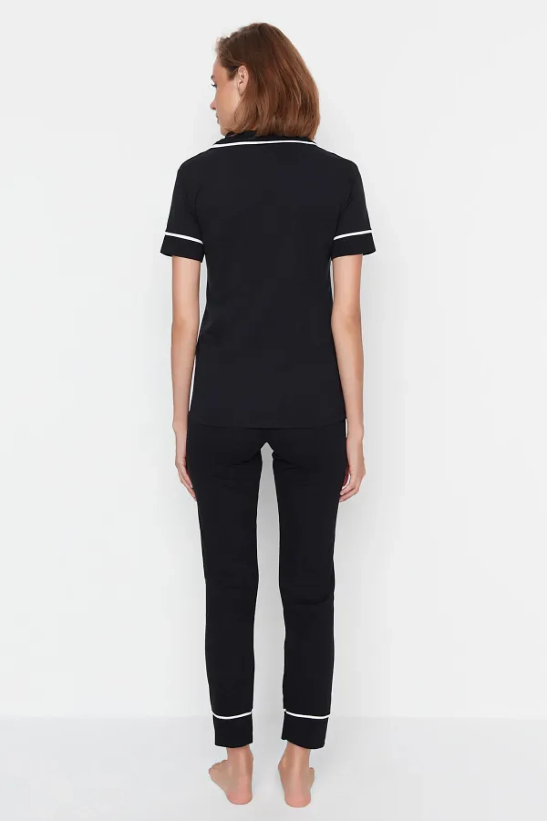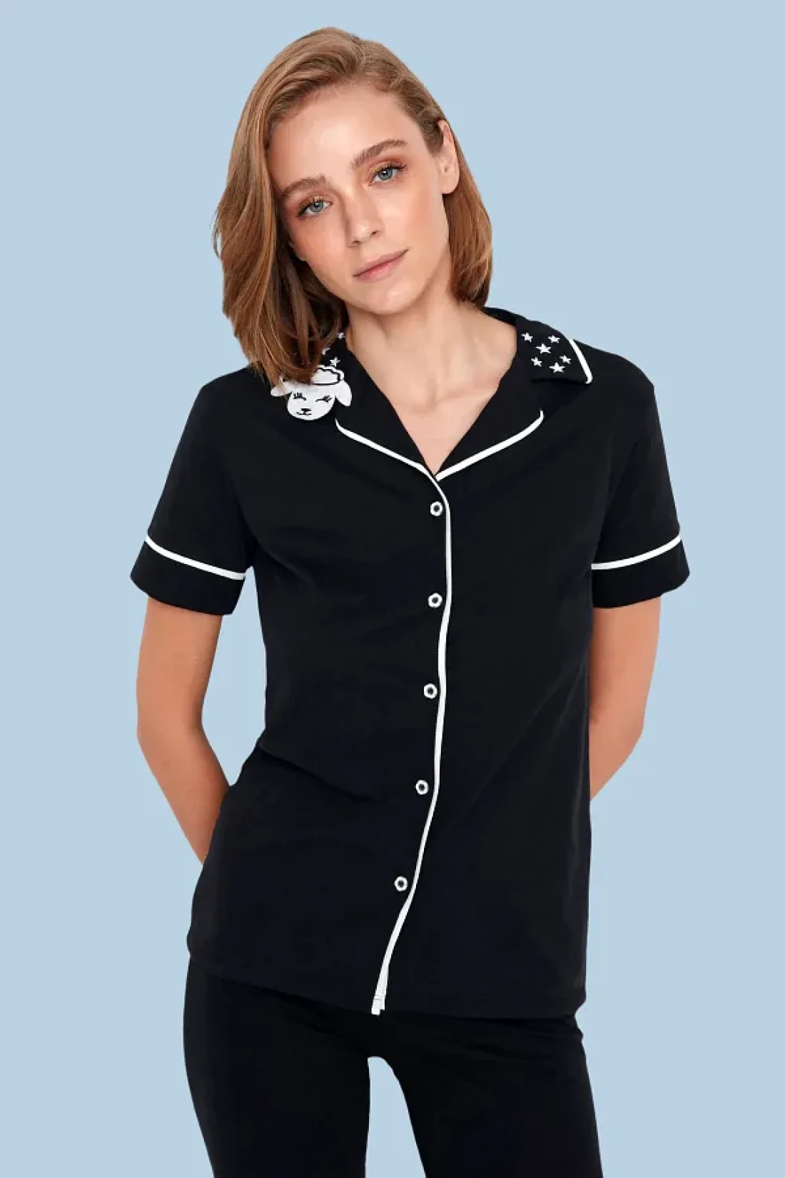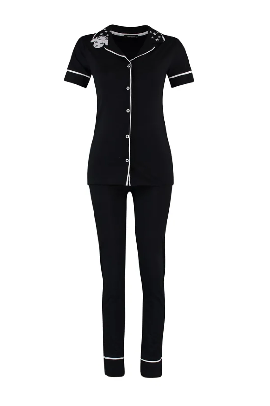 Collection Black Cotton Collar Lamb Printed Close-Fitting Fit Knitted Pajamas Set Thmaw22Pt0704