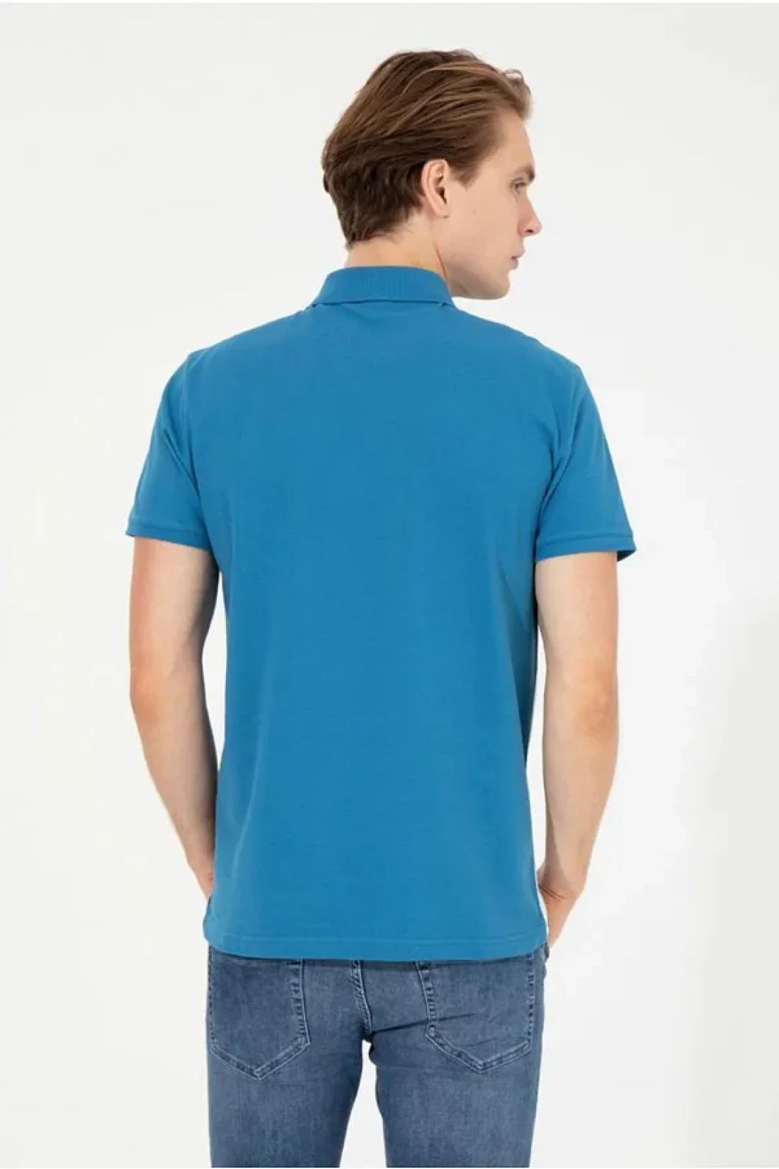 Men's petroleum polo neck t-shirt that attracts attention with its comfortable and stylish design, ideal for daily use.