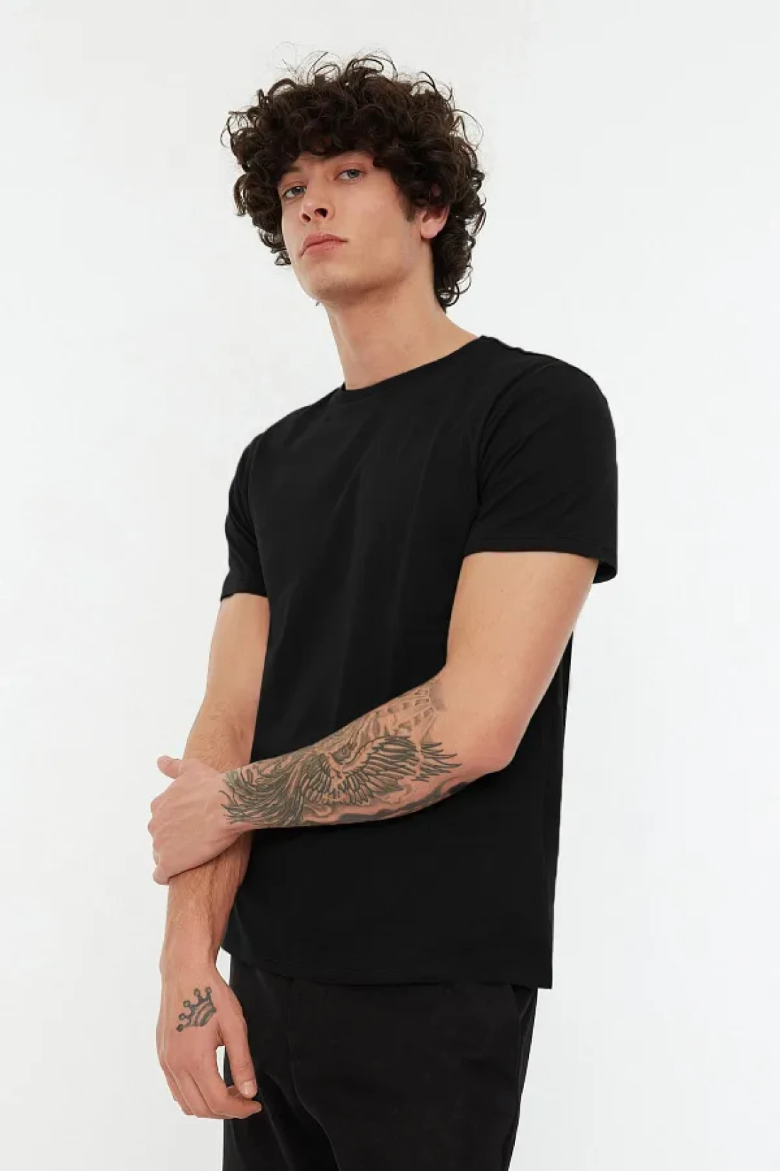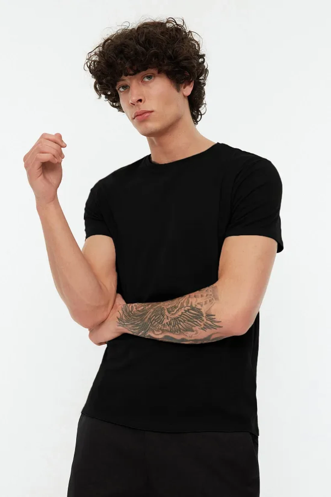 Collection Black Slim Fit Crew Neck 100% Cotton T-Shirt - Tmnss19Bo0001