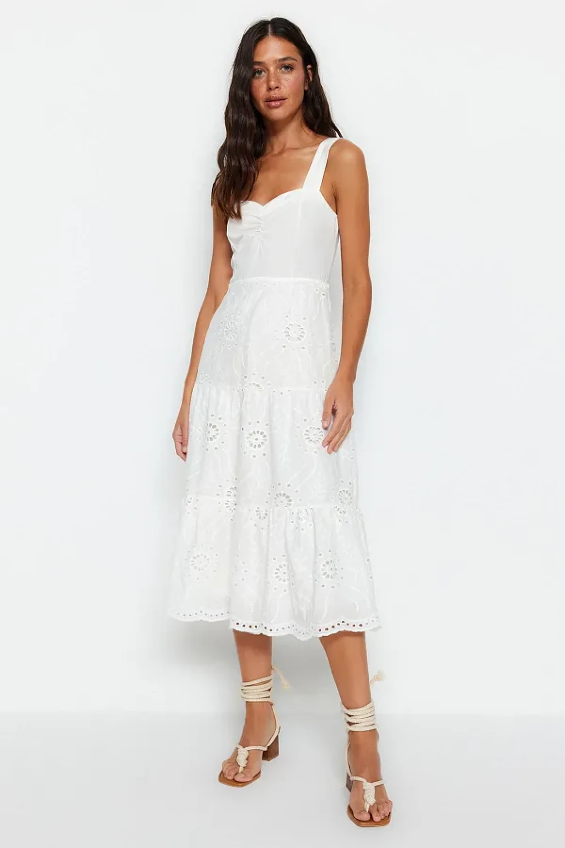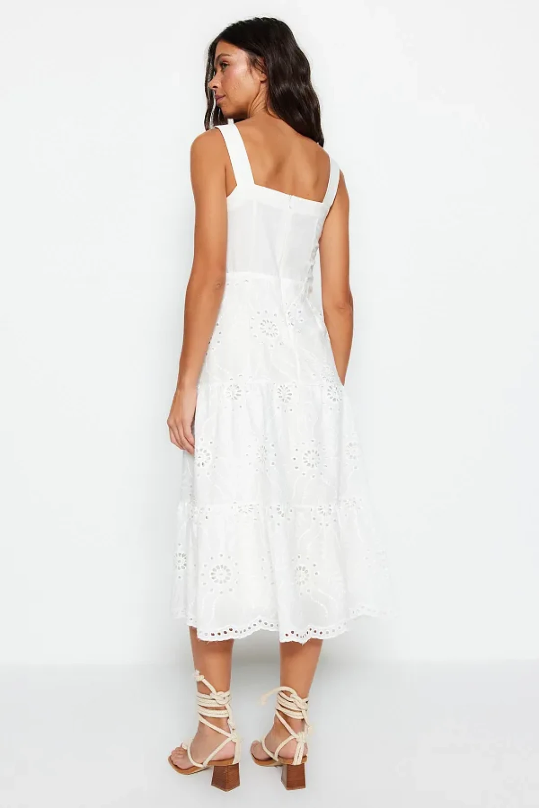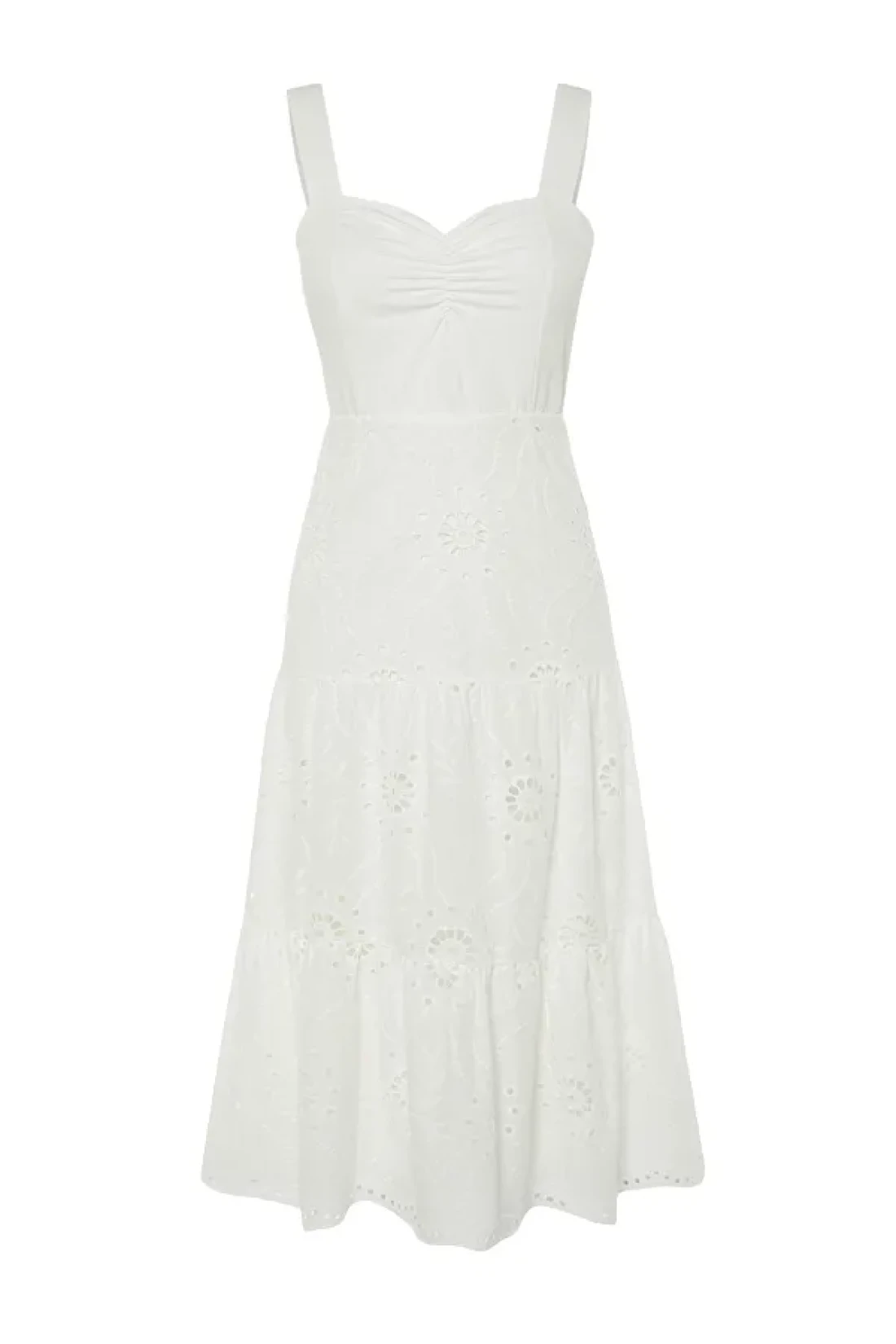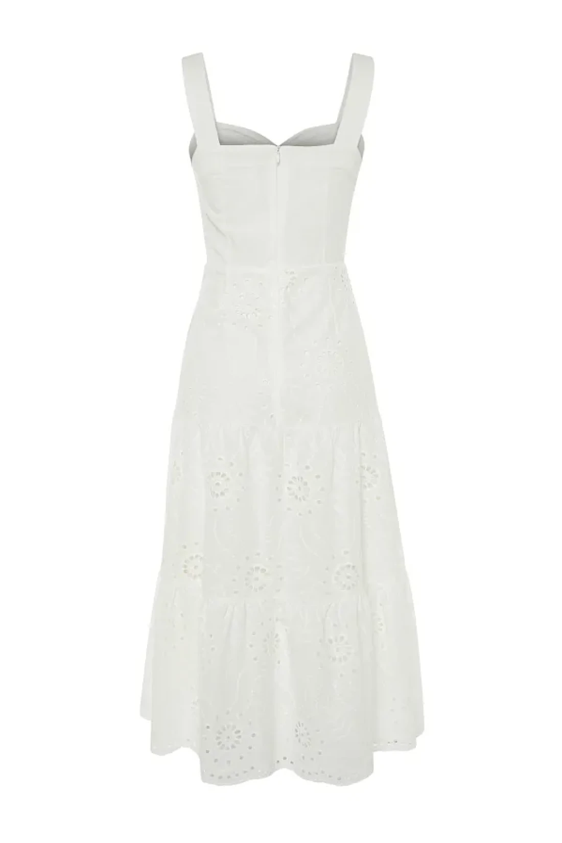 Collection White Waist Opening Midi Lined Embroidery Woven Dress TWOSS23EL00156