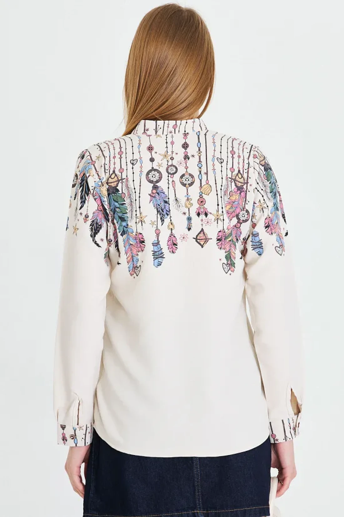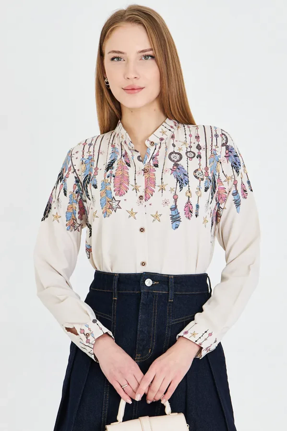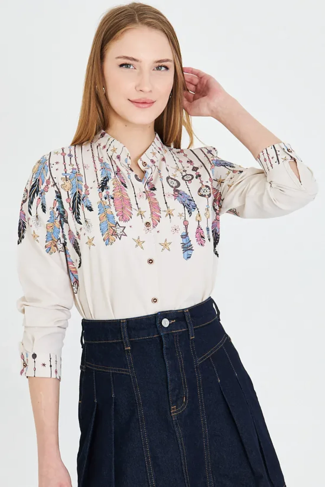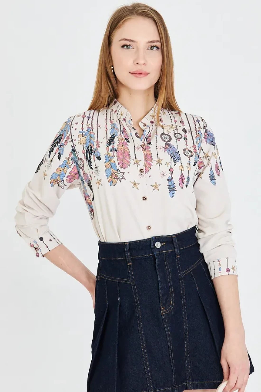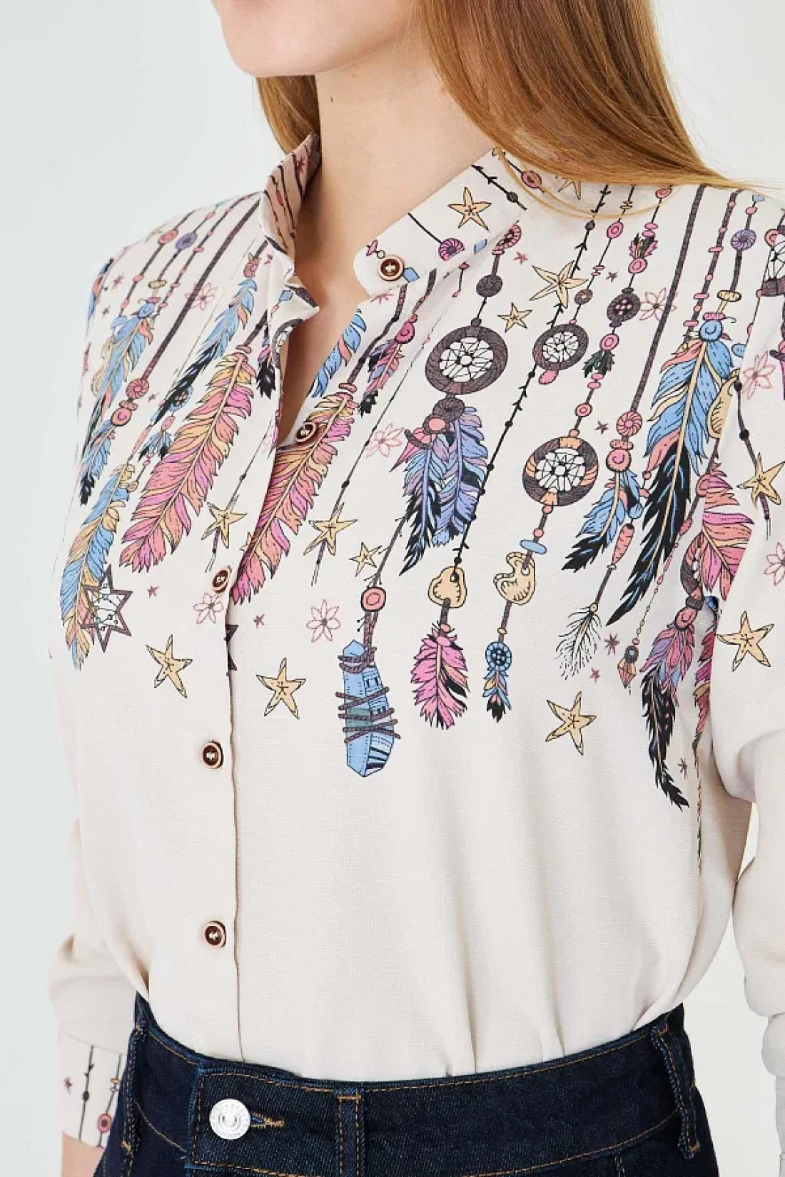 armonika Women's Light Beige Judge Collar Patterned Shirt Arm-25Y 001013