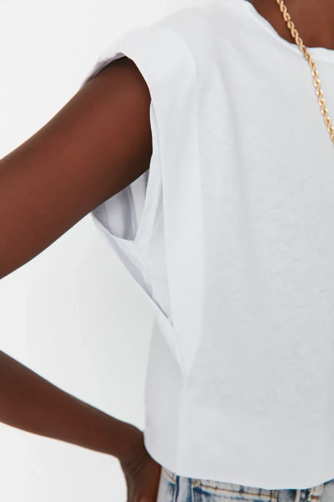 Collection White 100% Cotton Wadding Look Basic Crew Neck Knitted T-Shirt TWOSS20TS0021