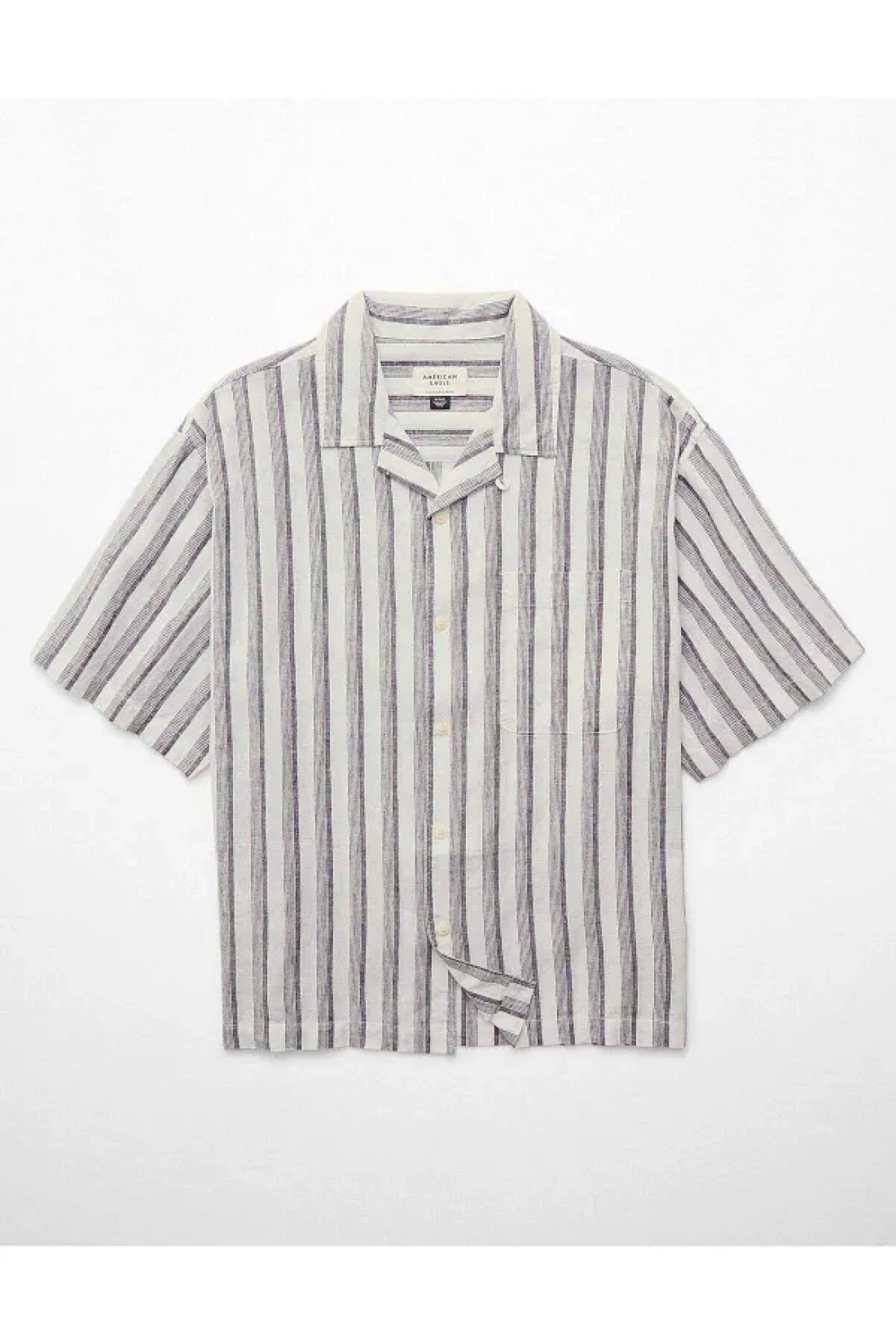 American Eagle AE Poolside Linen-Blend Button-Up Shirt