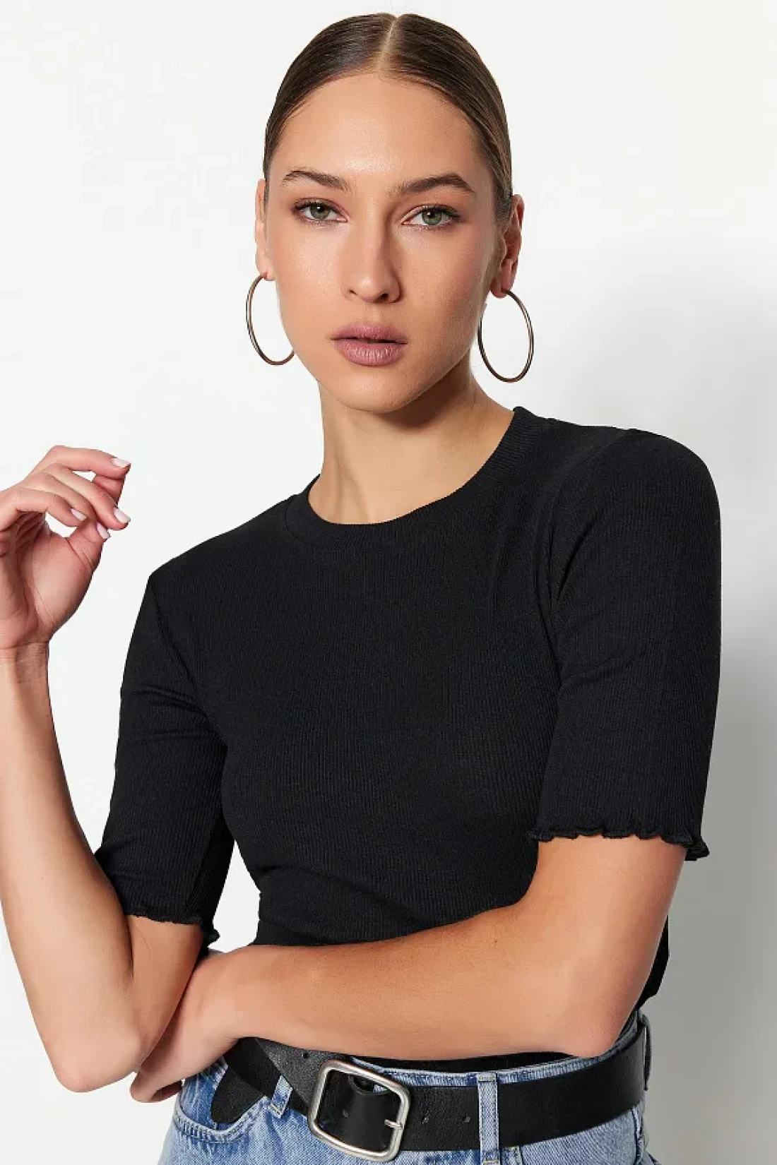 Collection Black Fitted Stretch Knitted Blouse TWOSS23BZ00025