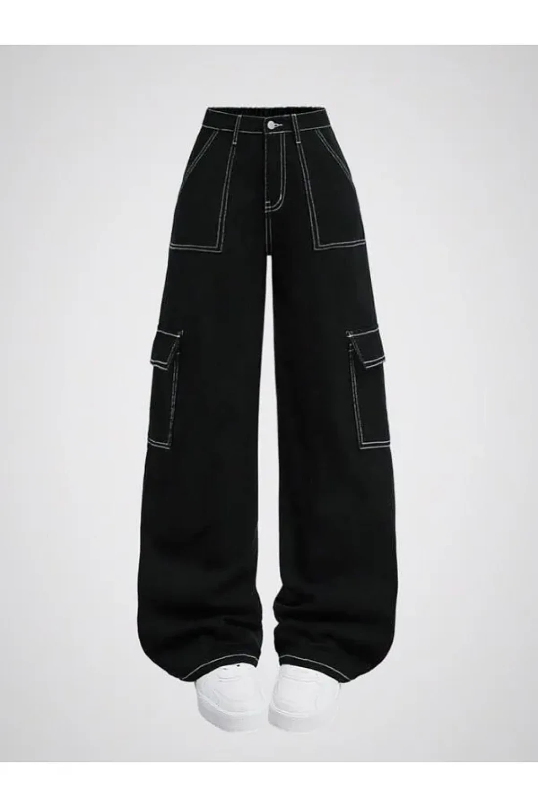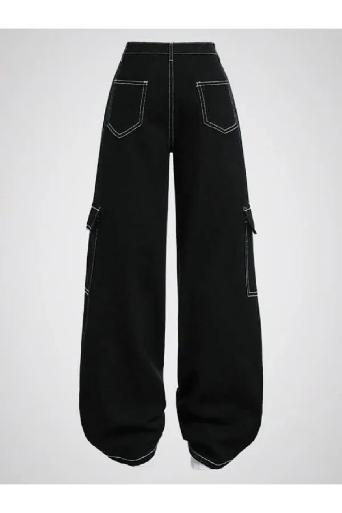 KOTOLOG Unisex Wide Leg White Stitched Cargo Pocket Trousers
