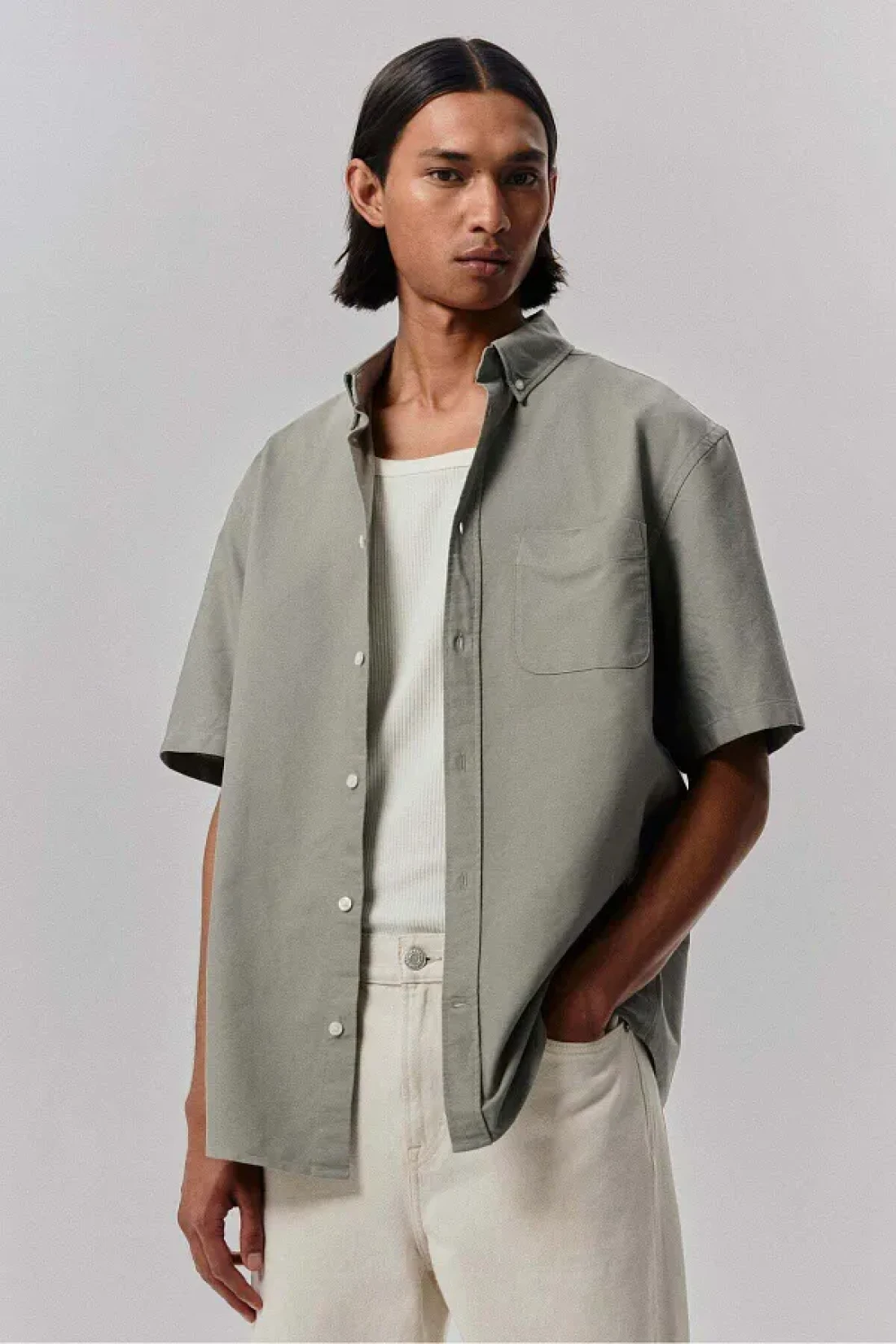 Shirt in Oxford cotton with a button-down collar, classic front, yoke at the back, short sleeves and an open chest pocket.