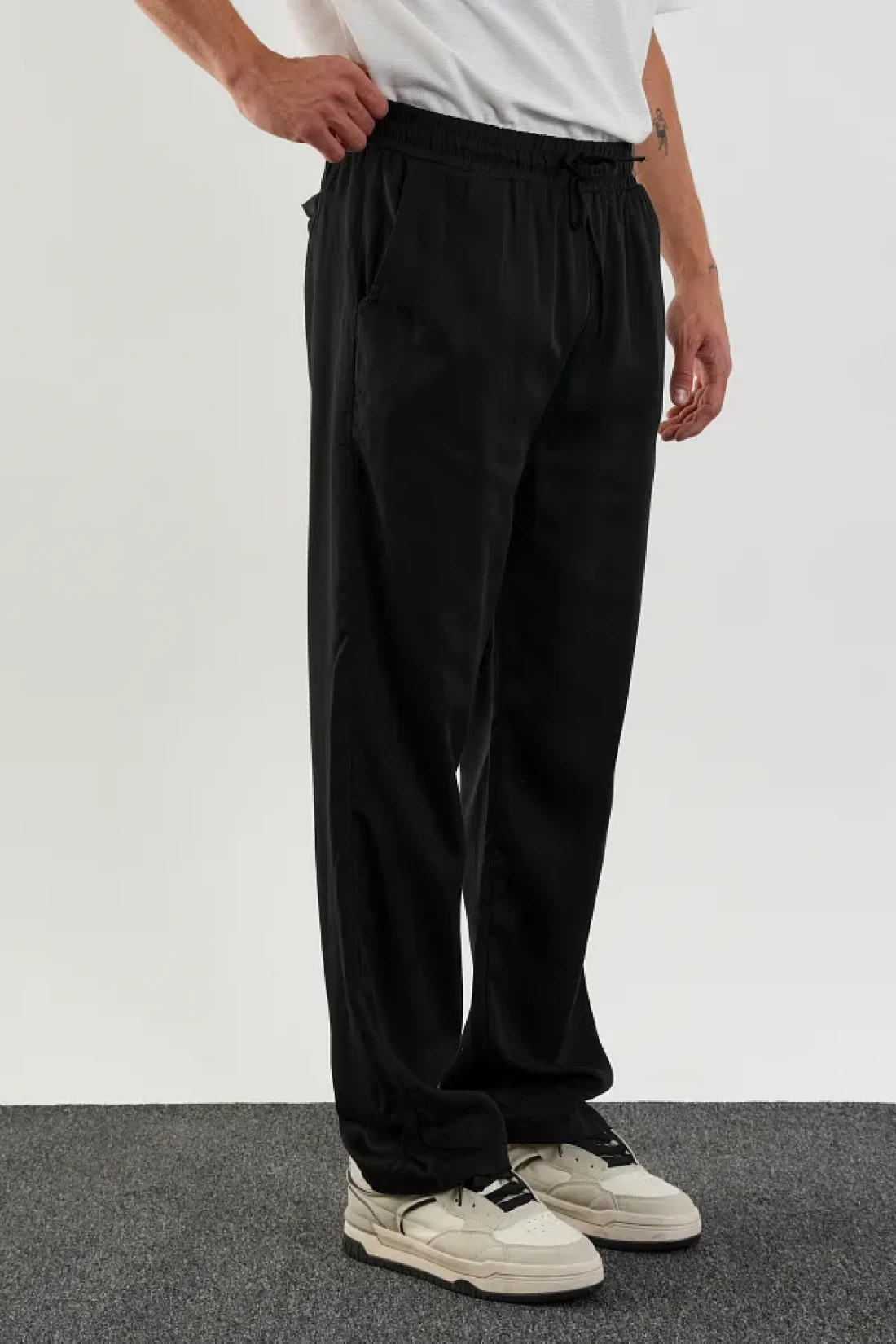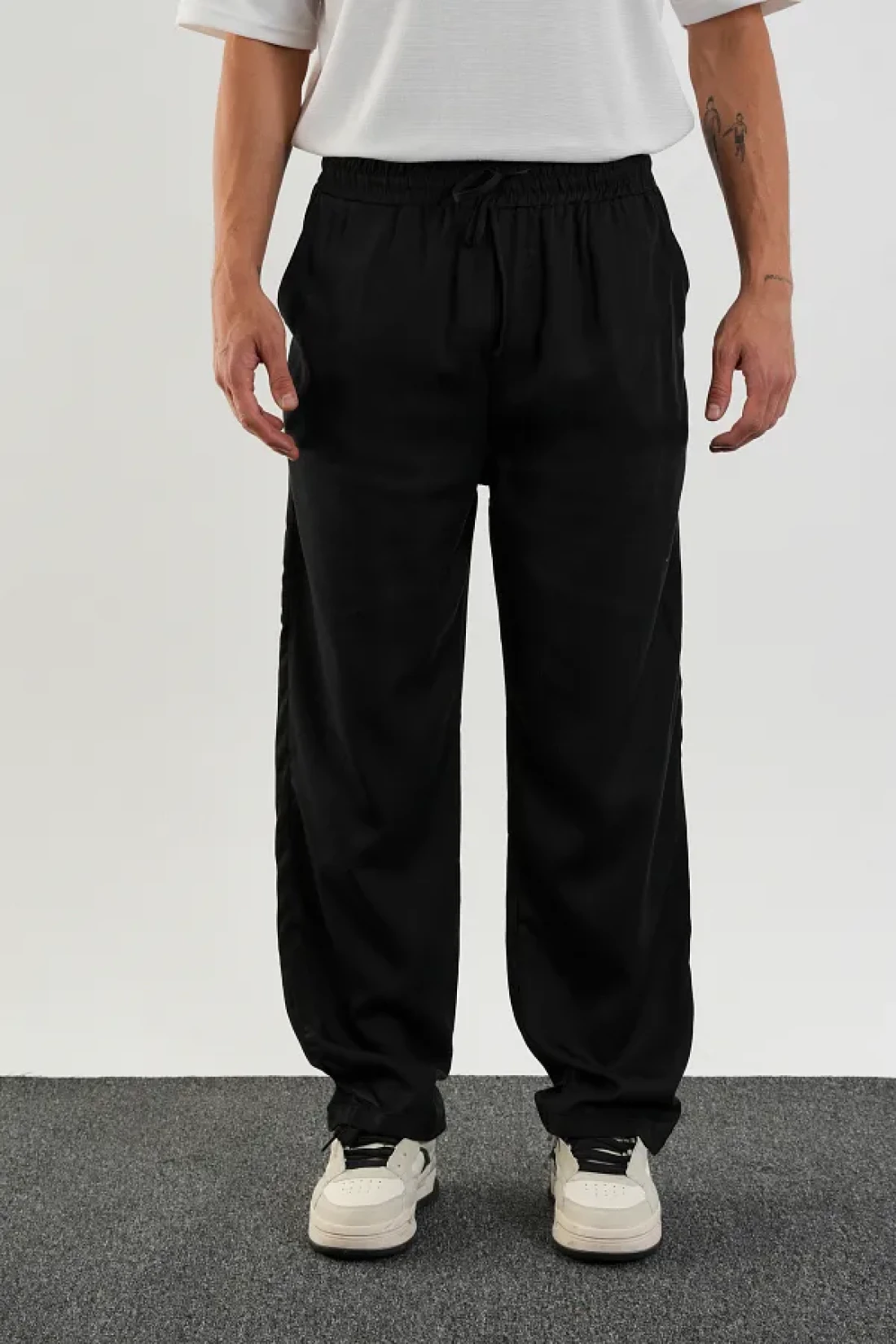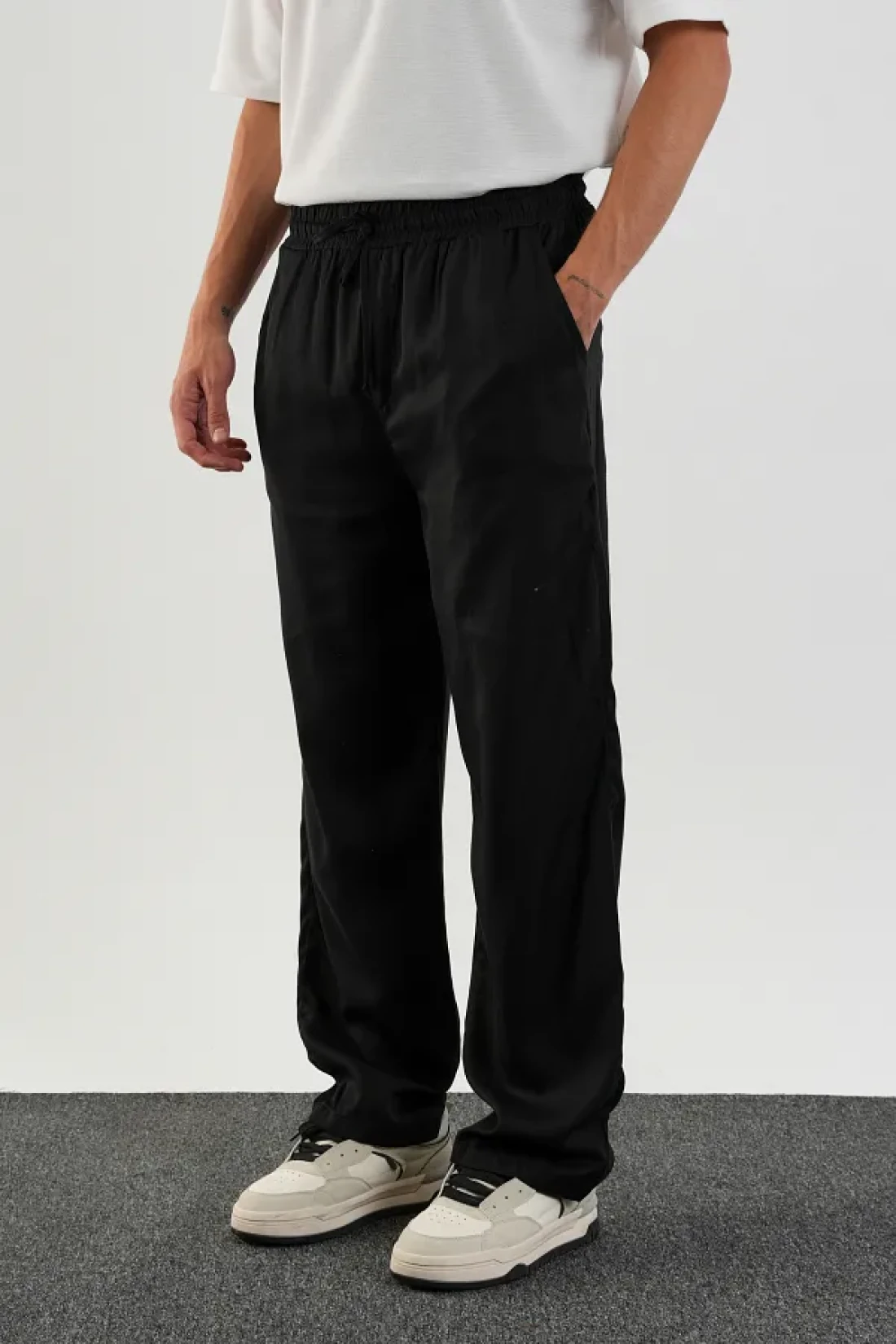 This fate men's baggy fit pants, where elegance and comfort meet, adds freedom to your style at every moment of the day. Thanks to its breathable and natural fate fabric, it offers a soft touch to your skin, while its baggy fit cut allows for comfortable movement.