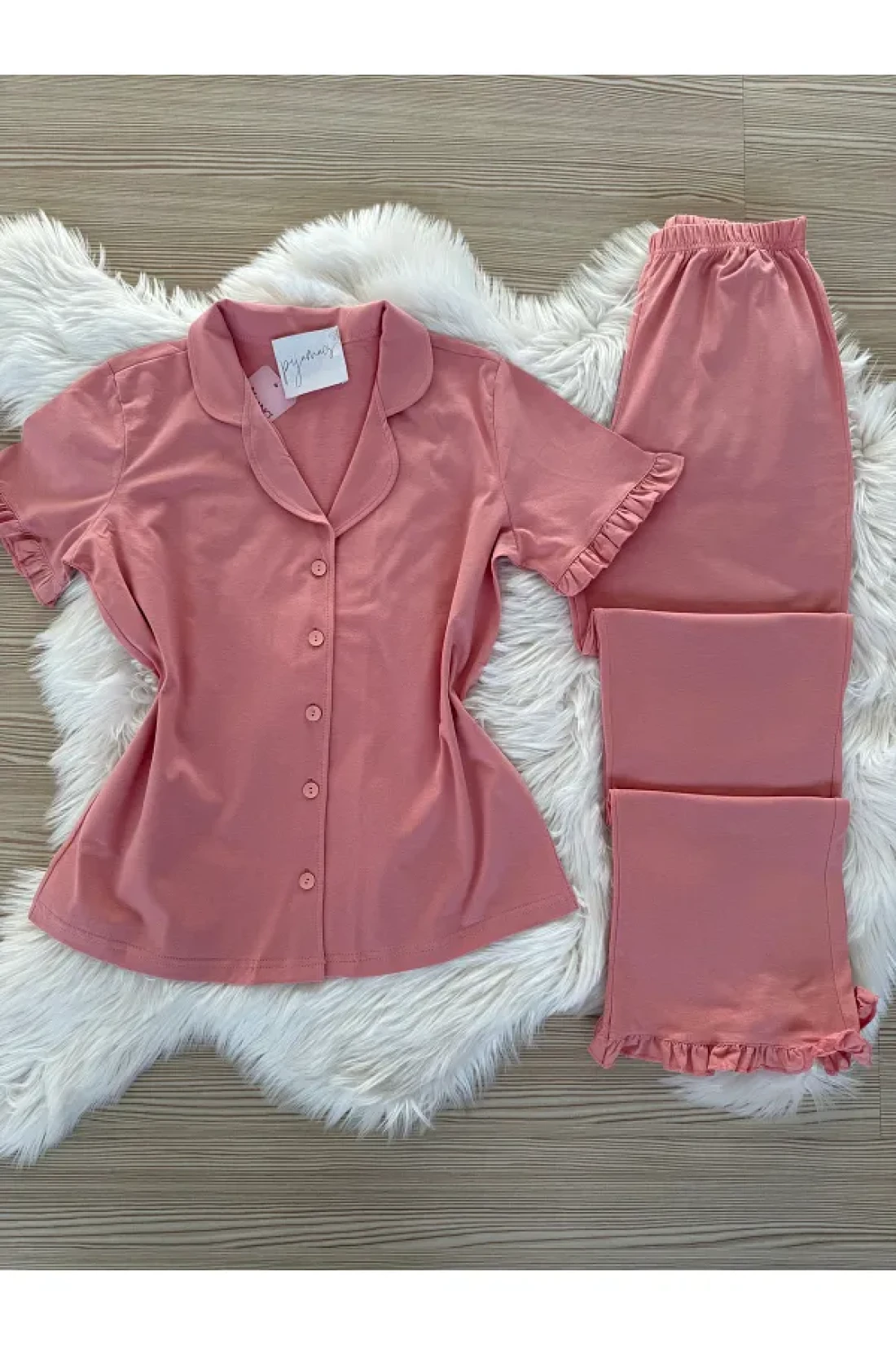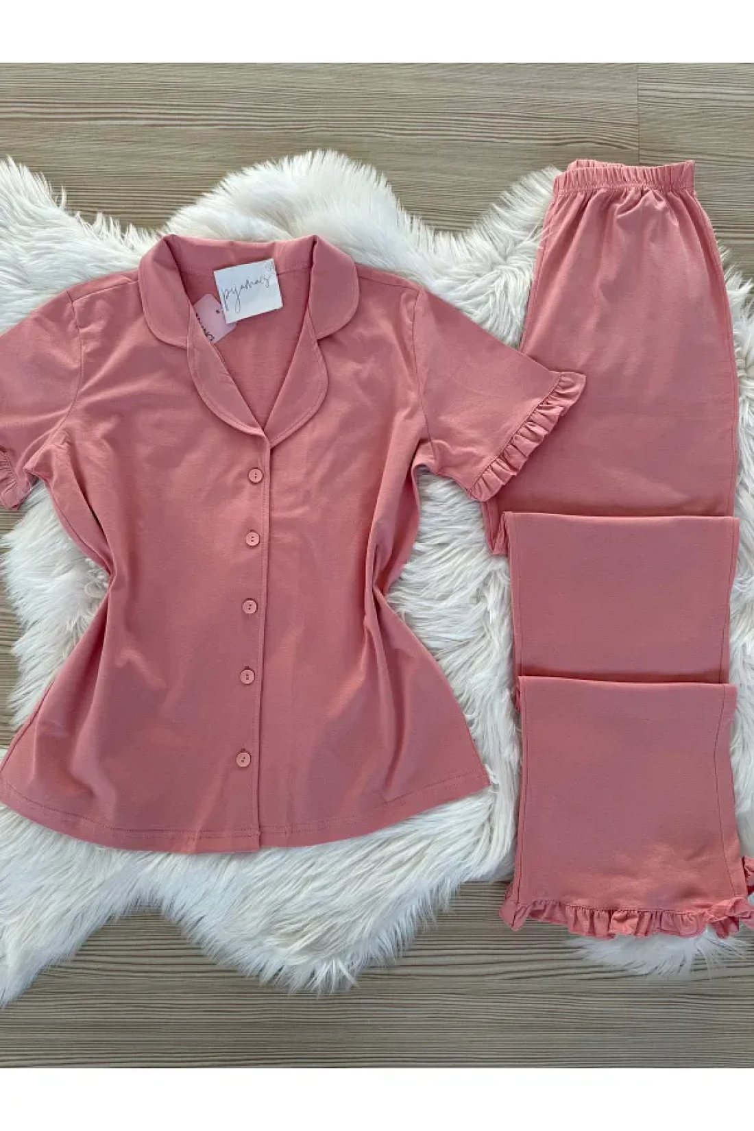 - with rose color option, the pajamas set offers elegance and comfort together, making time spent at home more enjoyable.