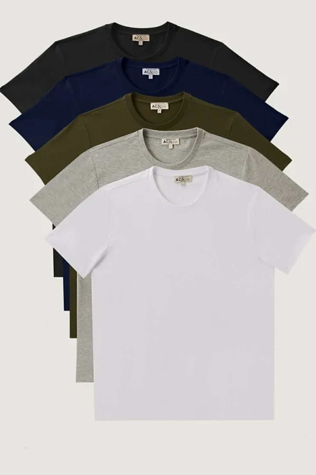 AC&Co / Altınyıldız Classics Men'sSlimFit Crew Neck 5-pieceBasicT-shirt Pack - 100% Cotton White Navy Black Khaki Gray