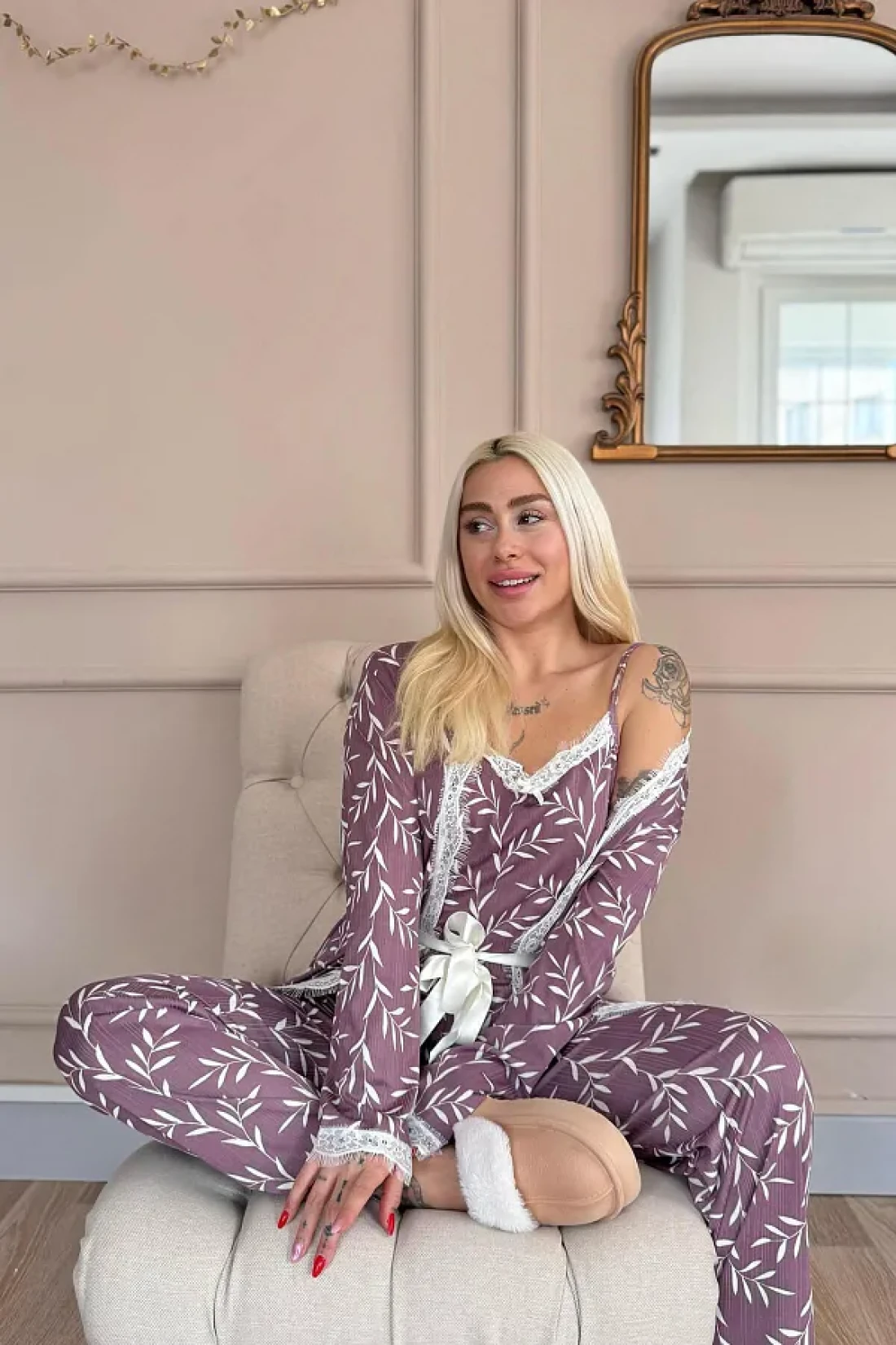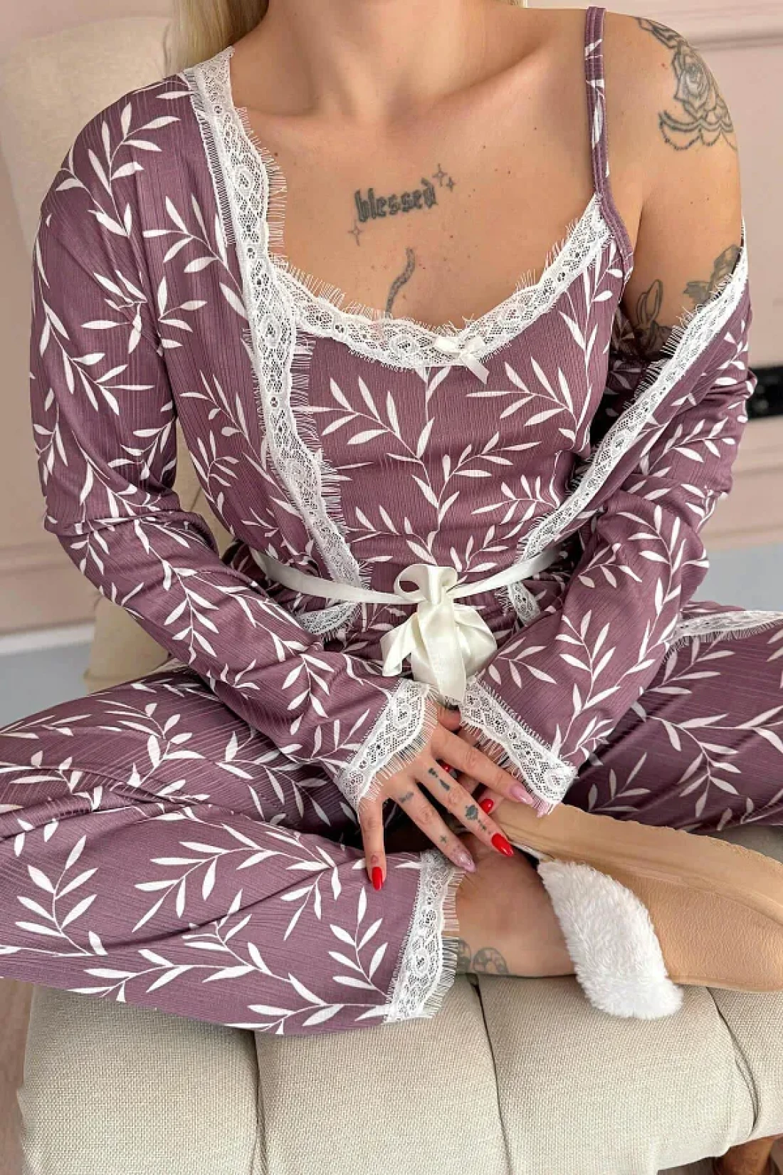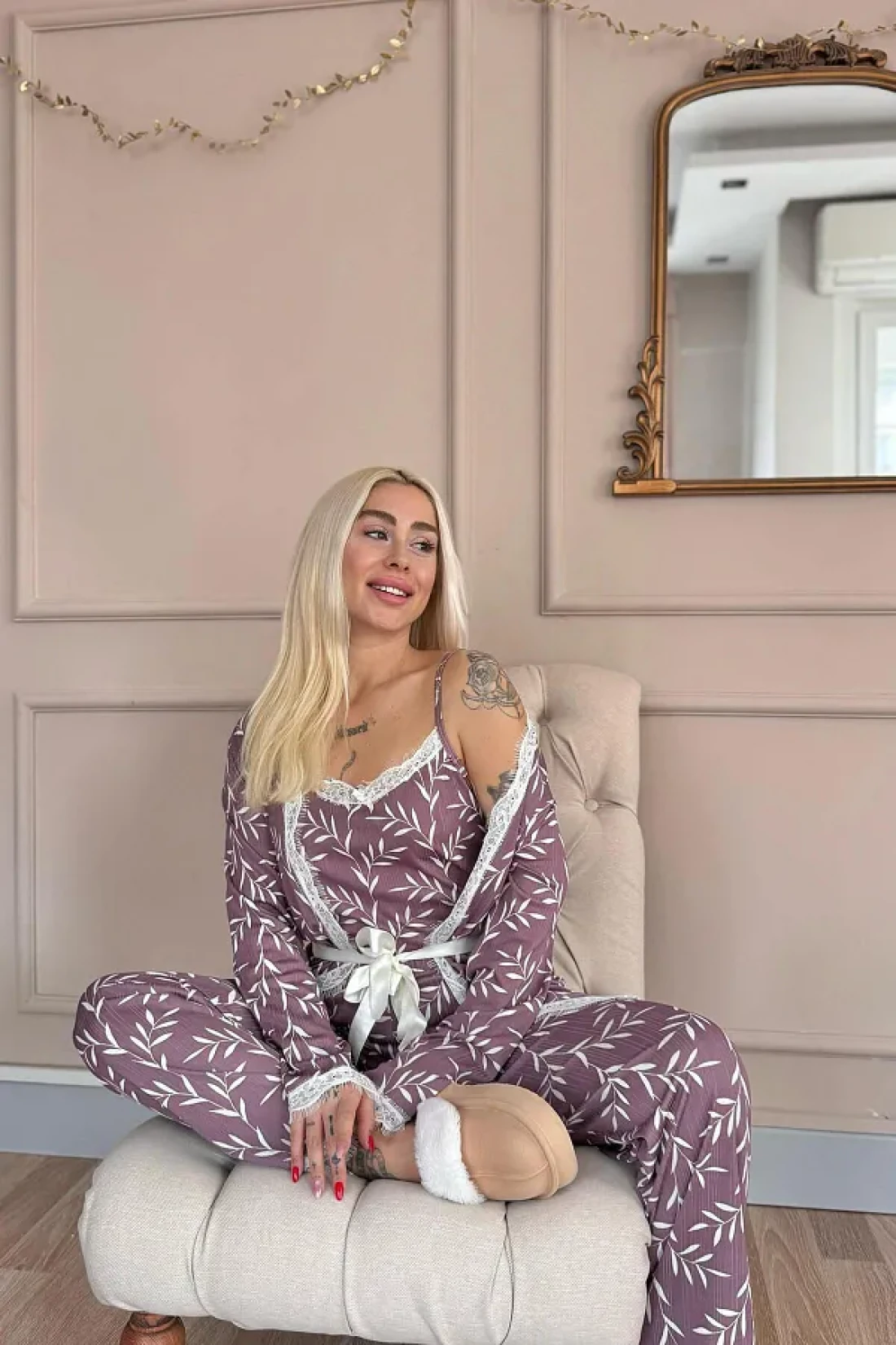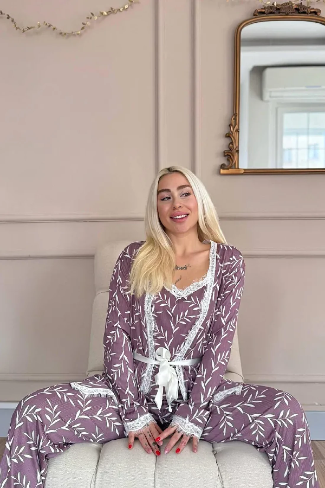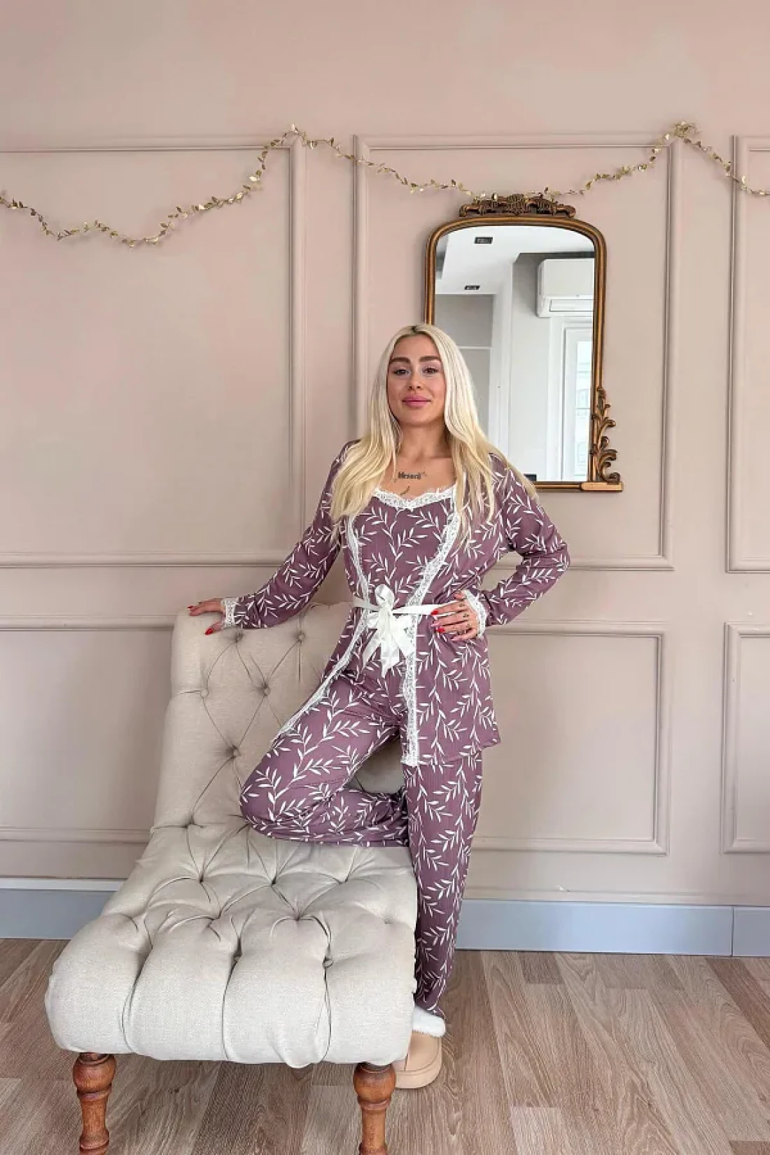 Pijamaevi Purple Olive Branch Patterned Pegasus Pajama Set