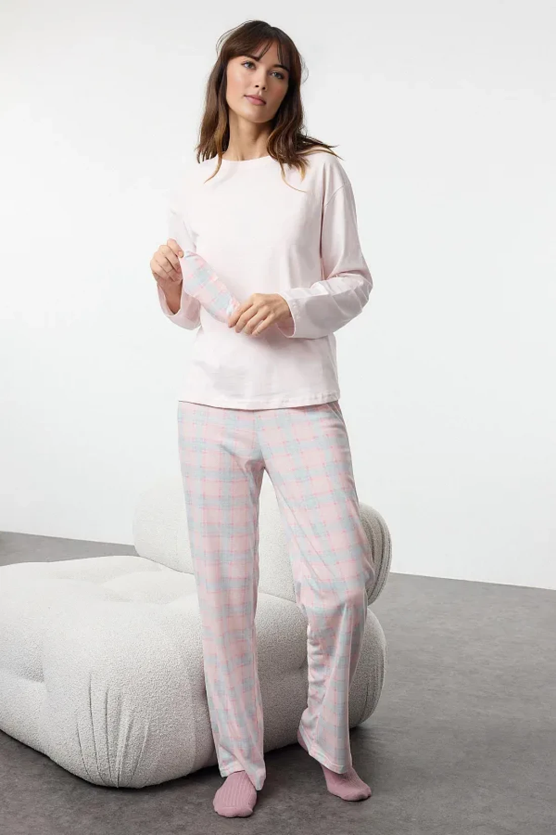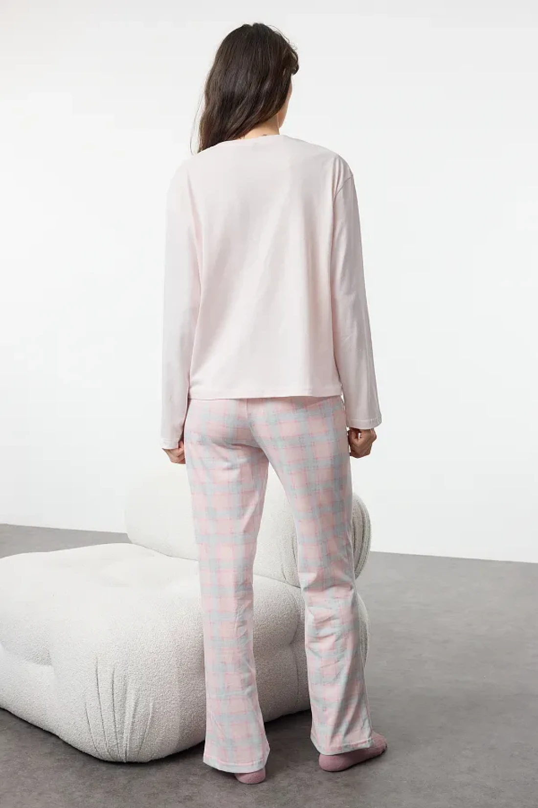 Collection Plaid Pink-Multicolor Knitted Pajamas Set Thmaw25Pt00181