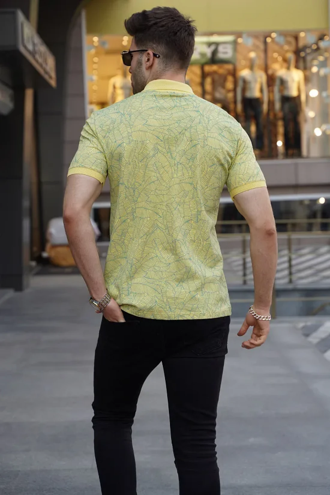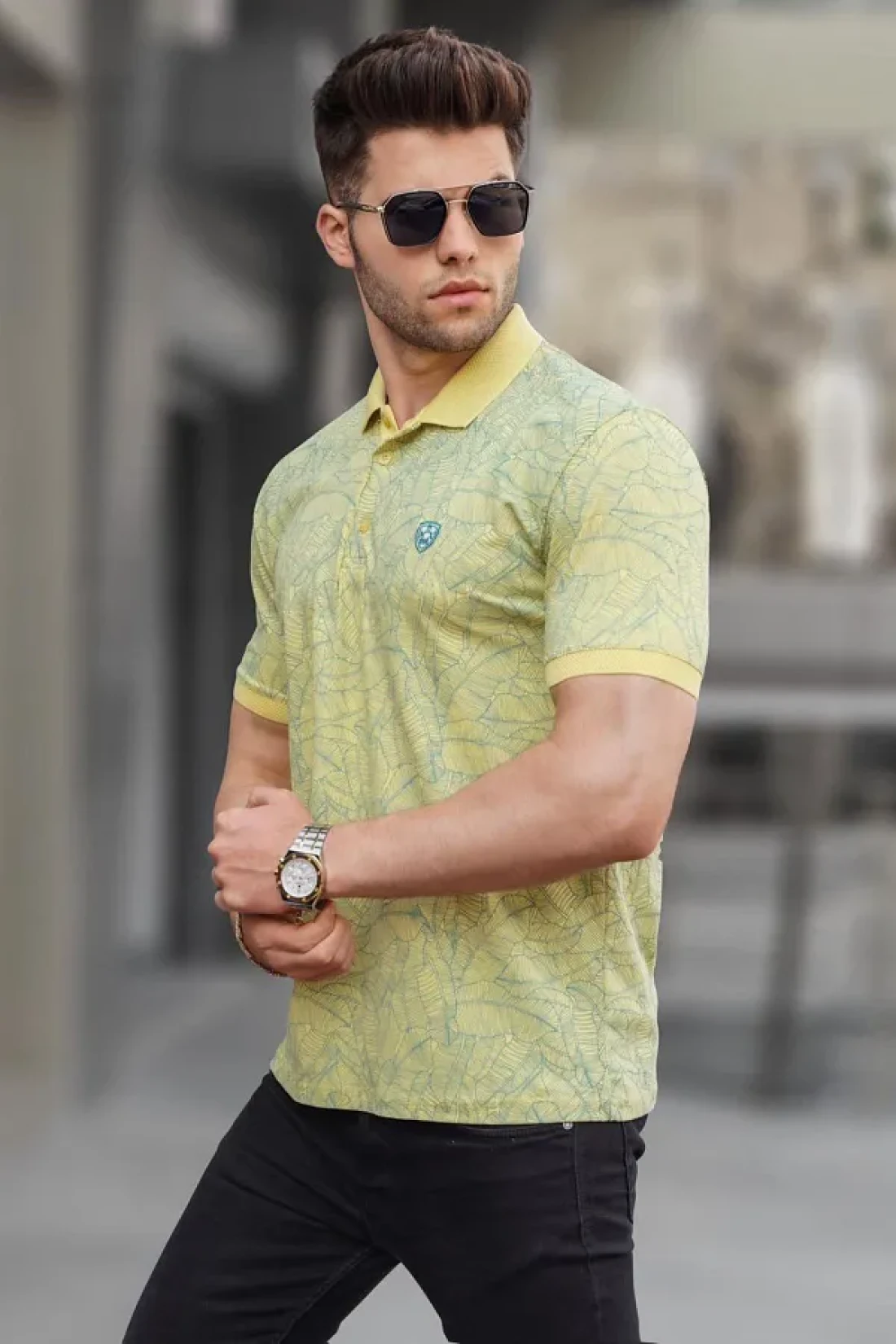 Madmext Yellow Patterned Polo Neck T-Shirt 5876
