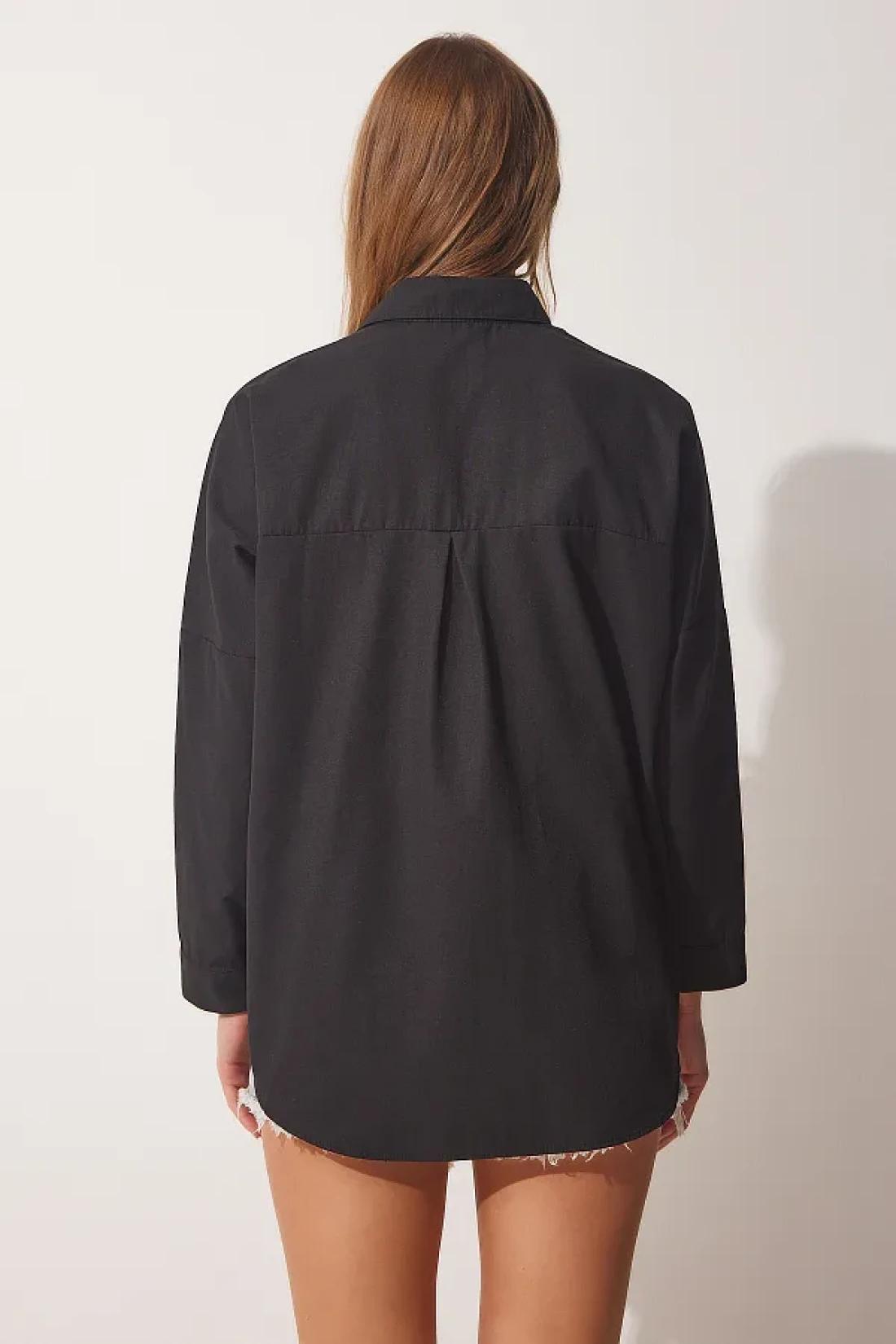 Happiness İstanbul Women's Black Oversize Basic Poplin Shirt BH00420