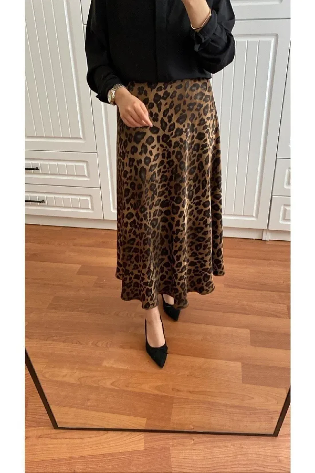 - featuring an elegant leopard print, this satin skirt highlights your elegance. Thanks to its woven fabric, it offers durable and comfortable use. It provides a comfortable fit with its normal waist design