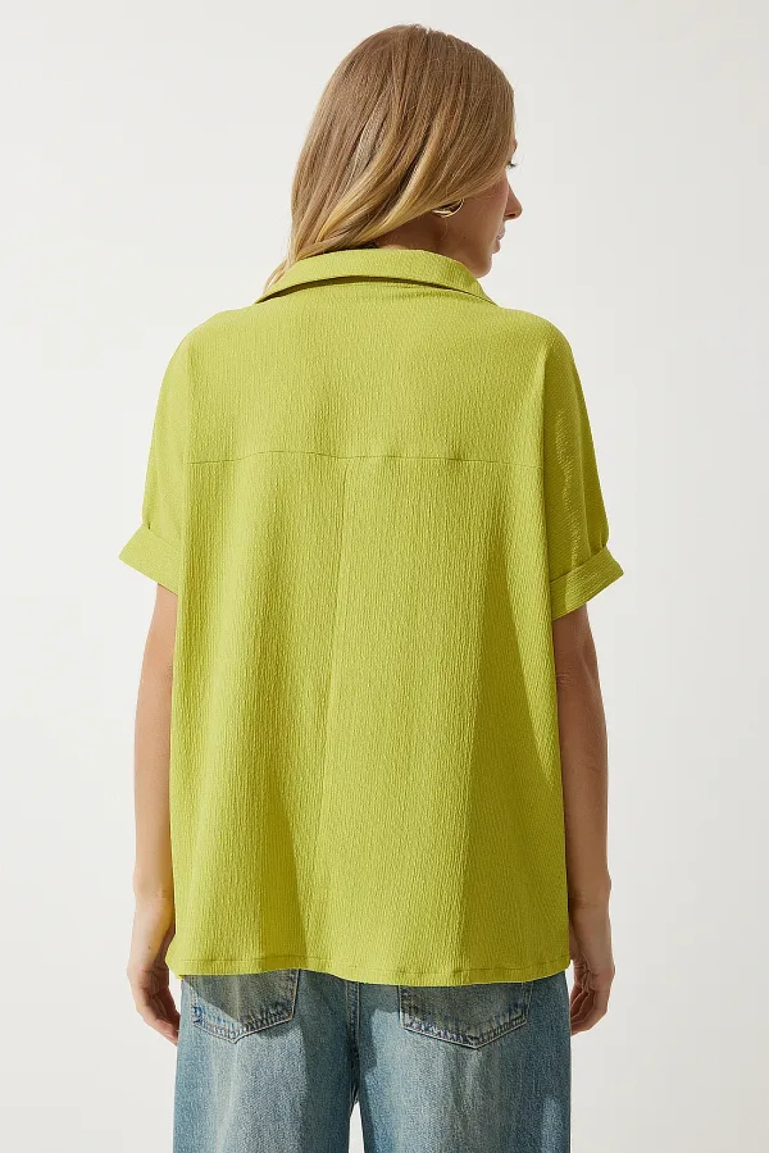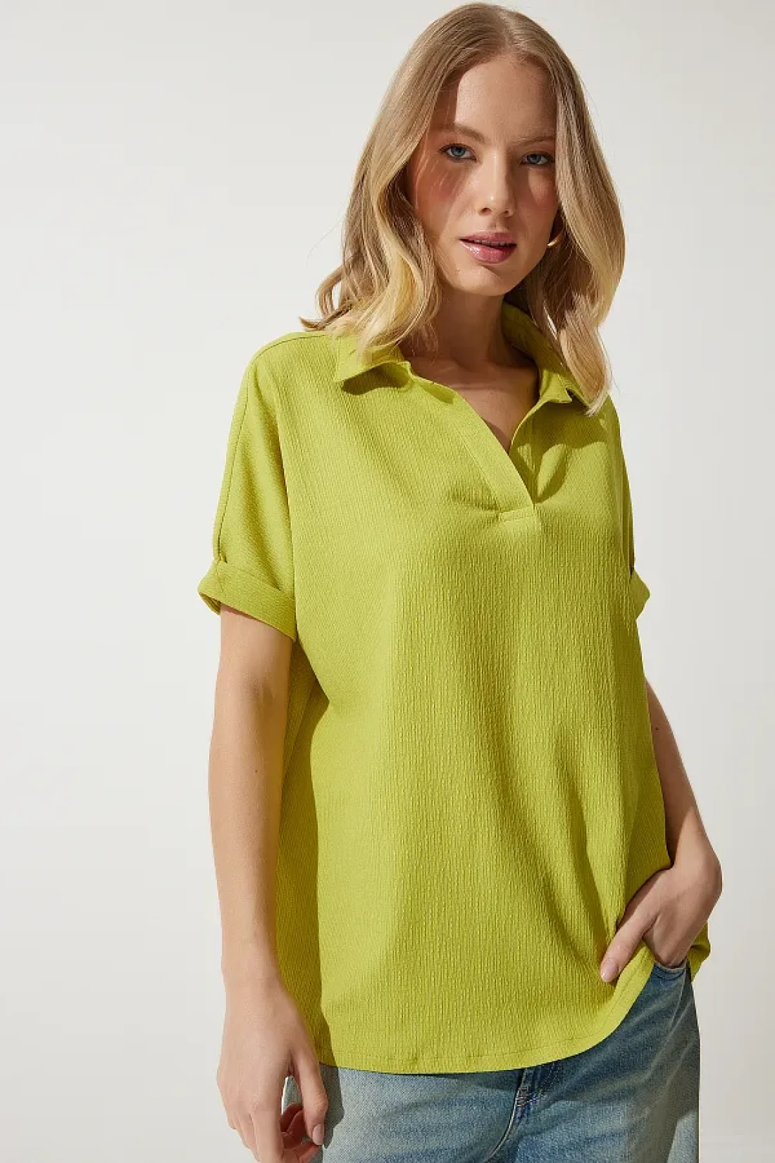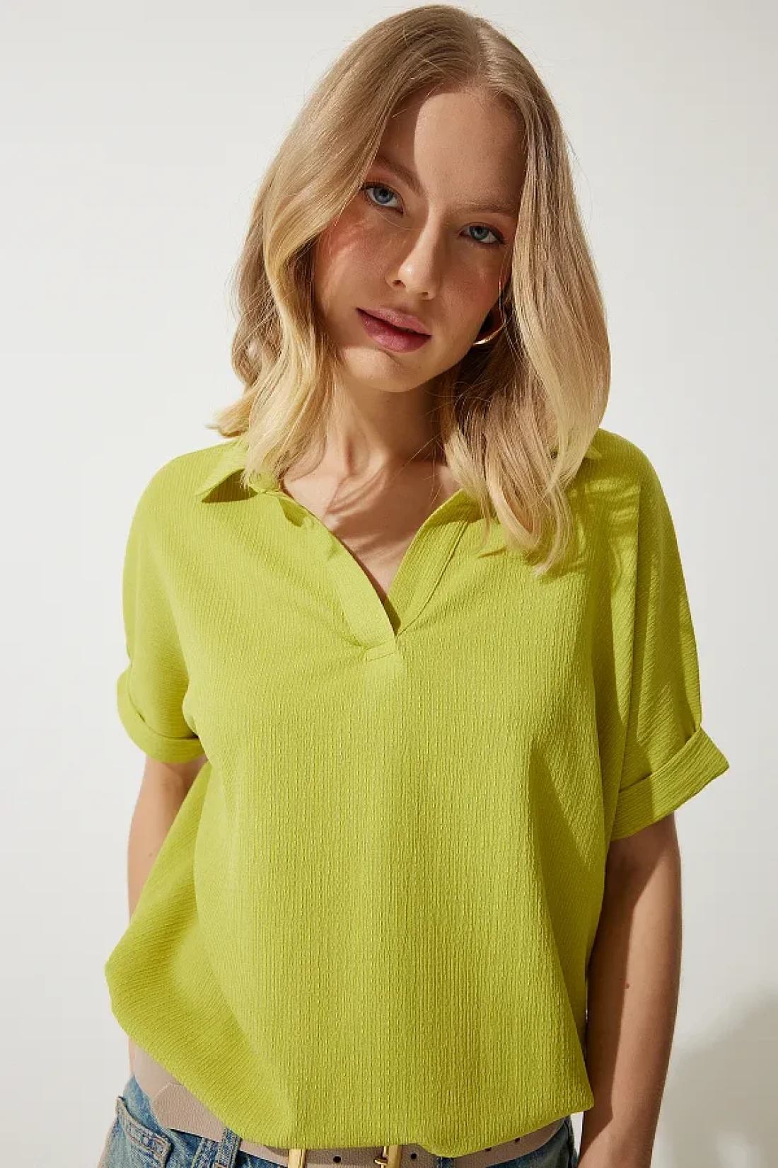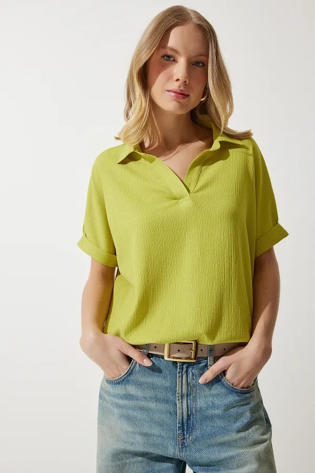 Happiness İstanbul Women's Oil Green Polo Neck Knitted Crinkle Blouse DD01299
