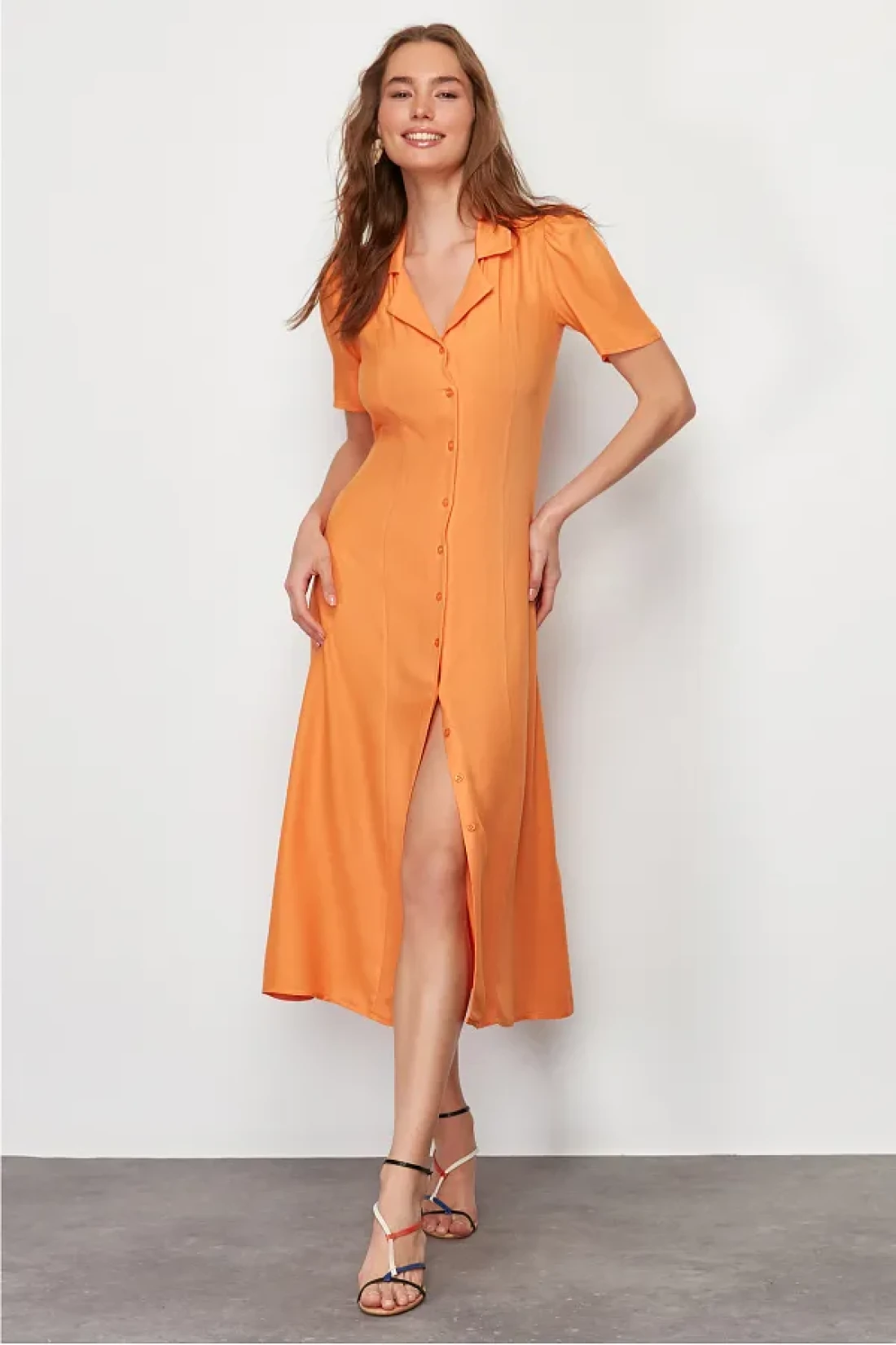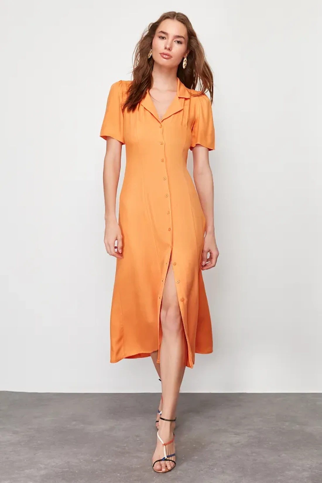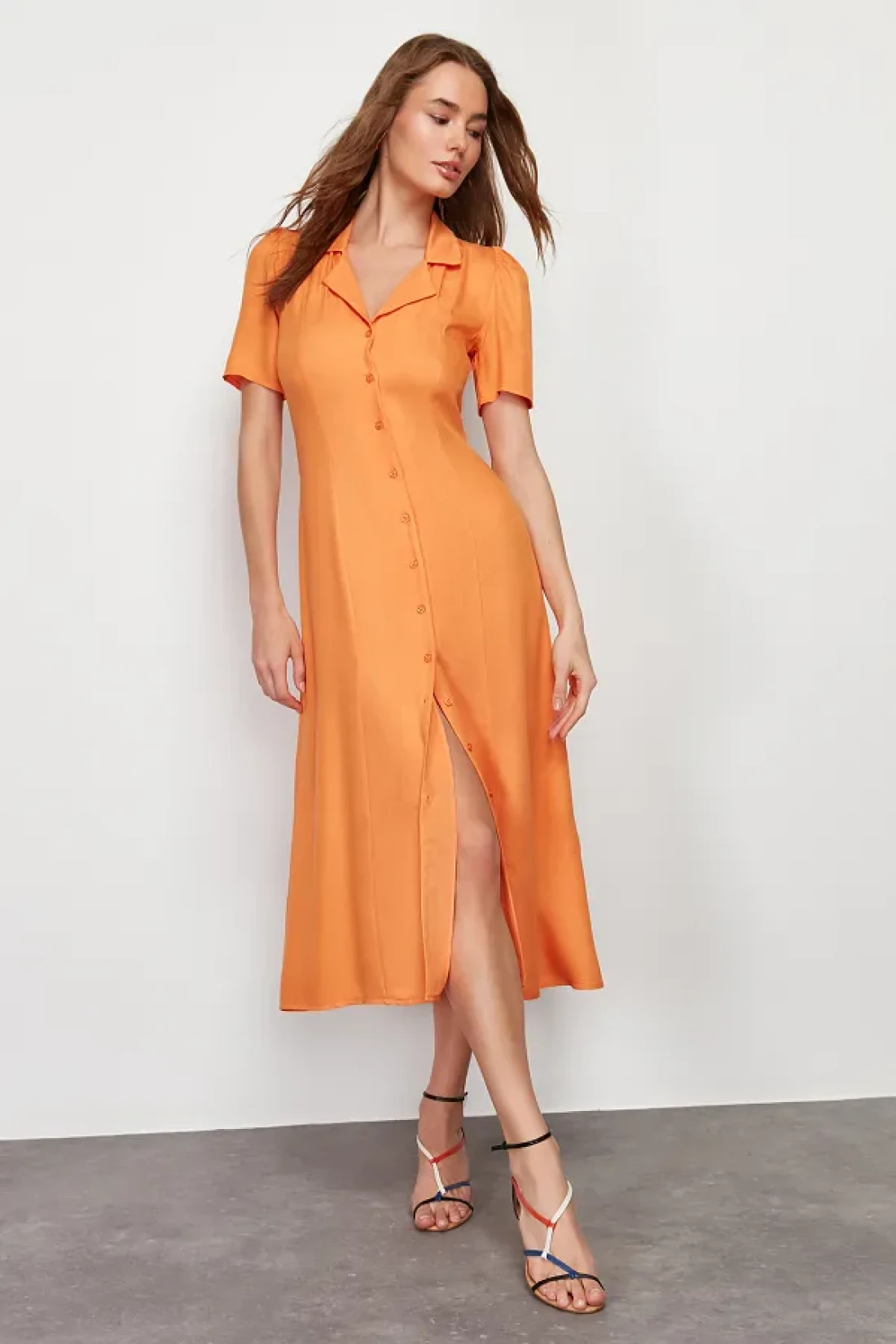 Collection Orange Midi Woven Shirt Dress TWOSS24EL00448
