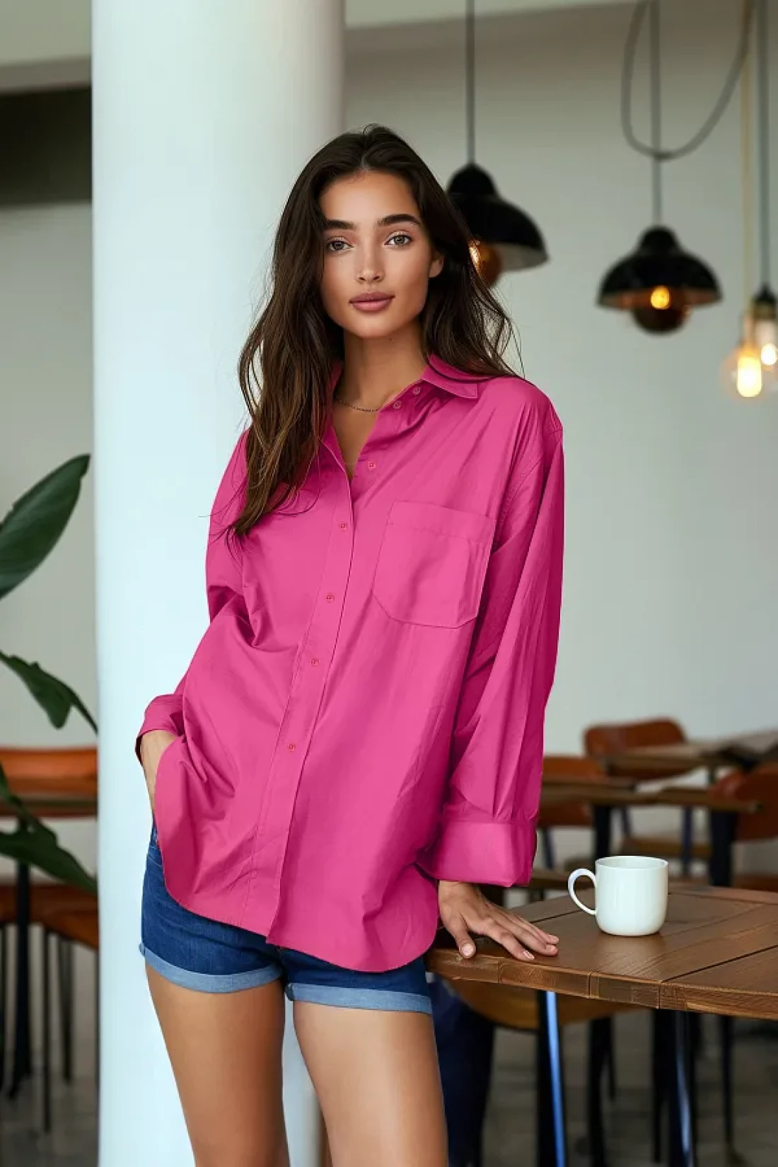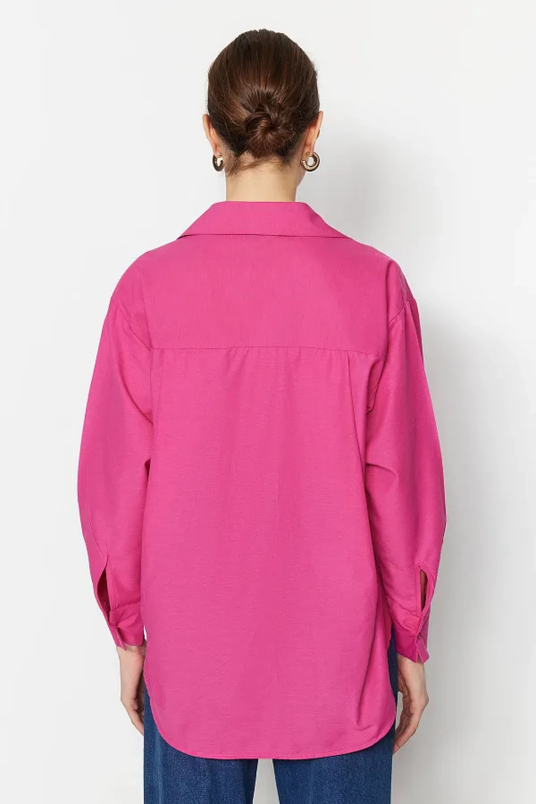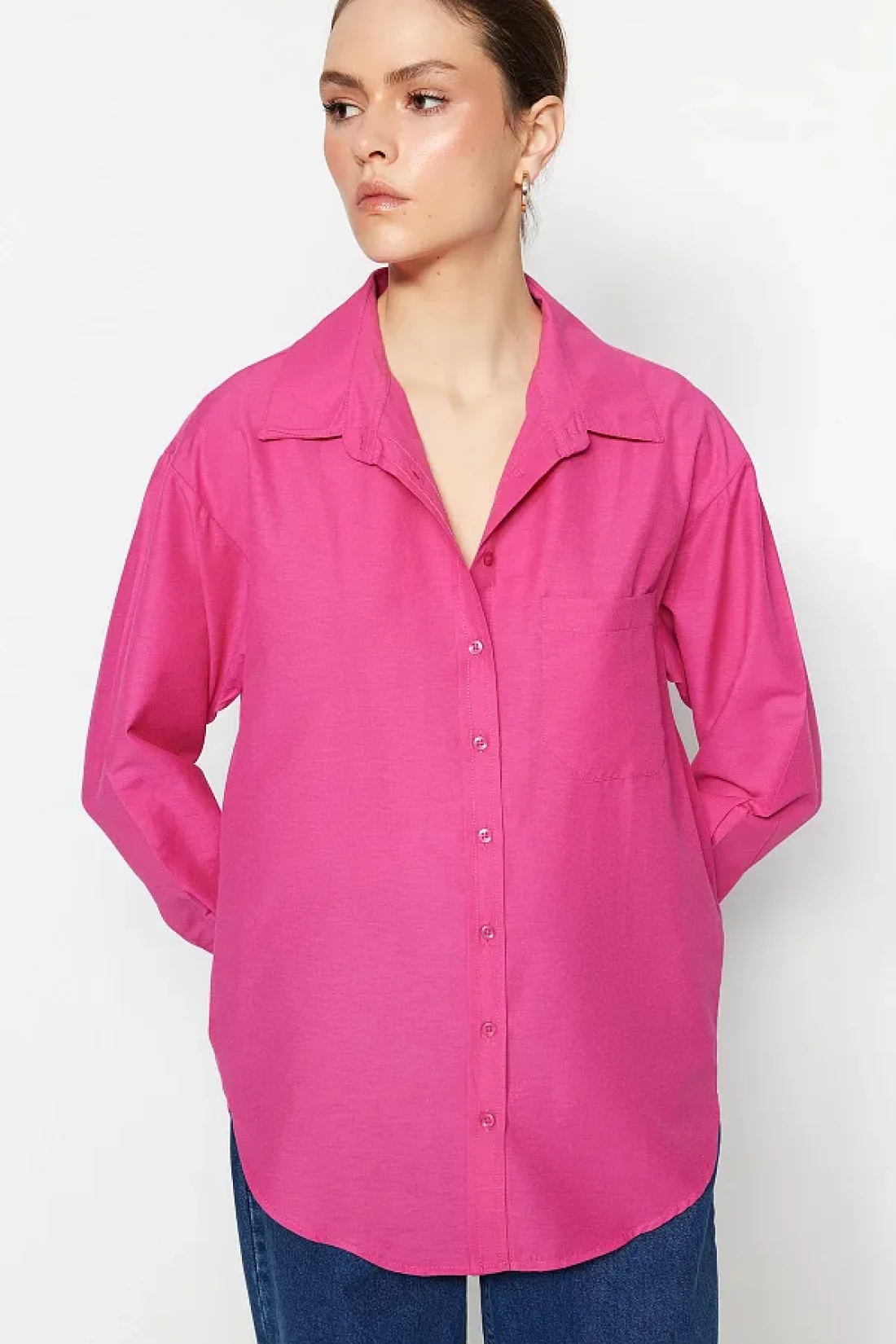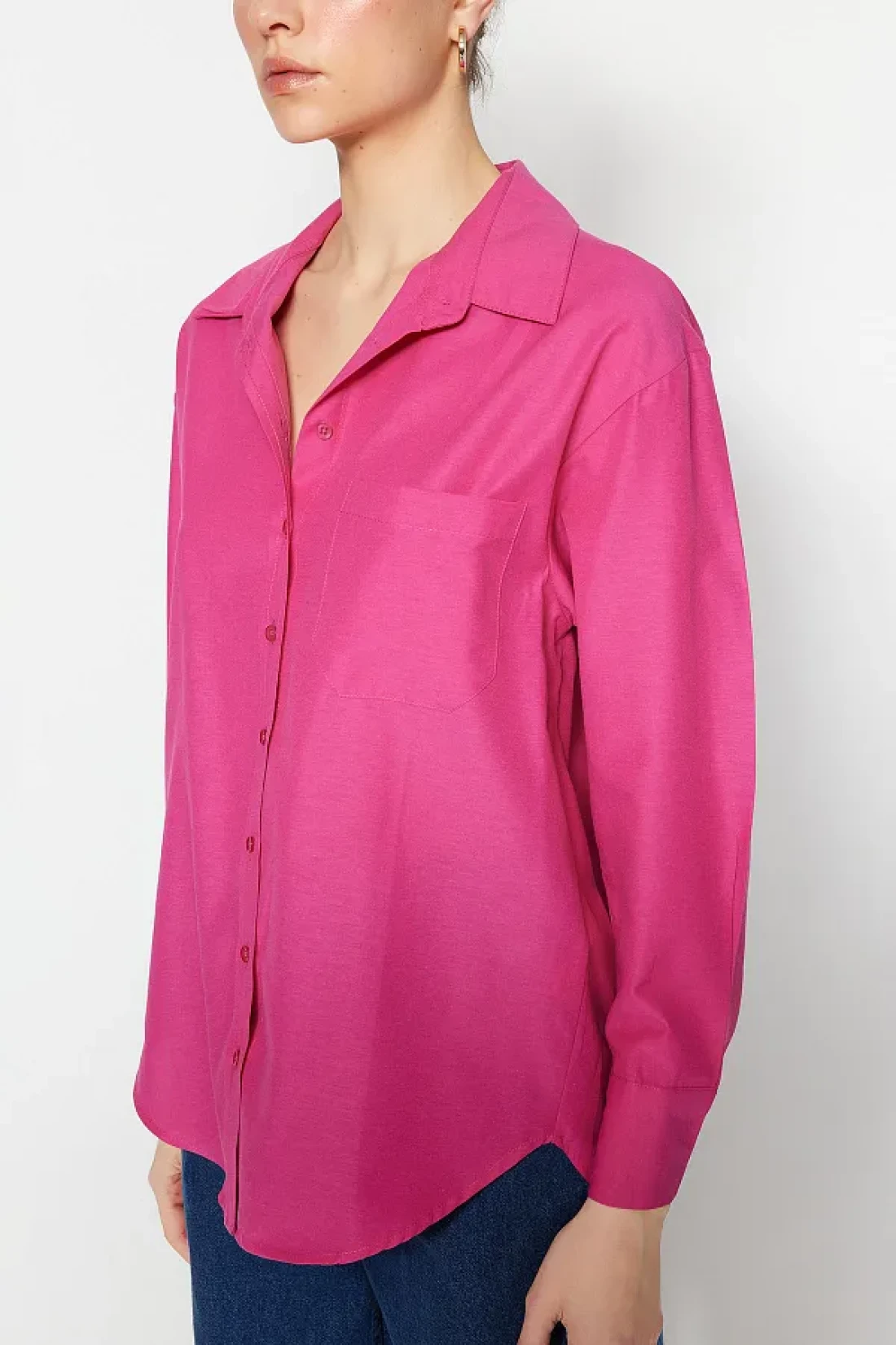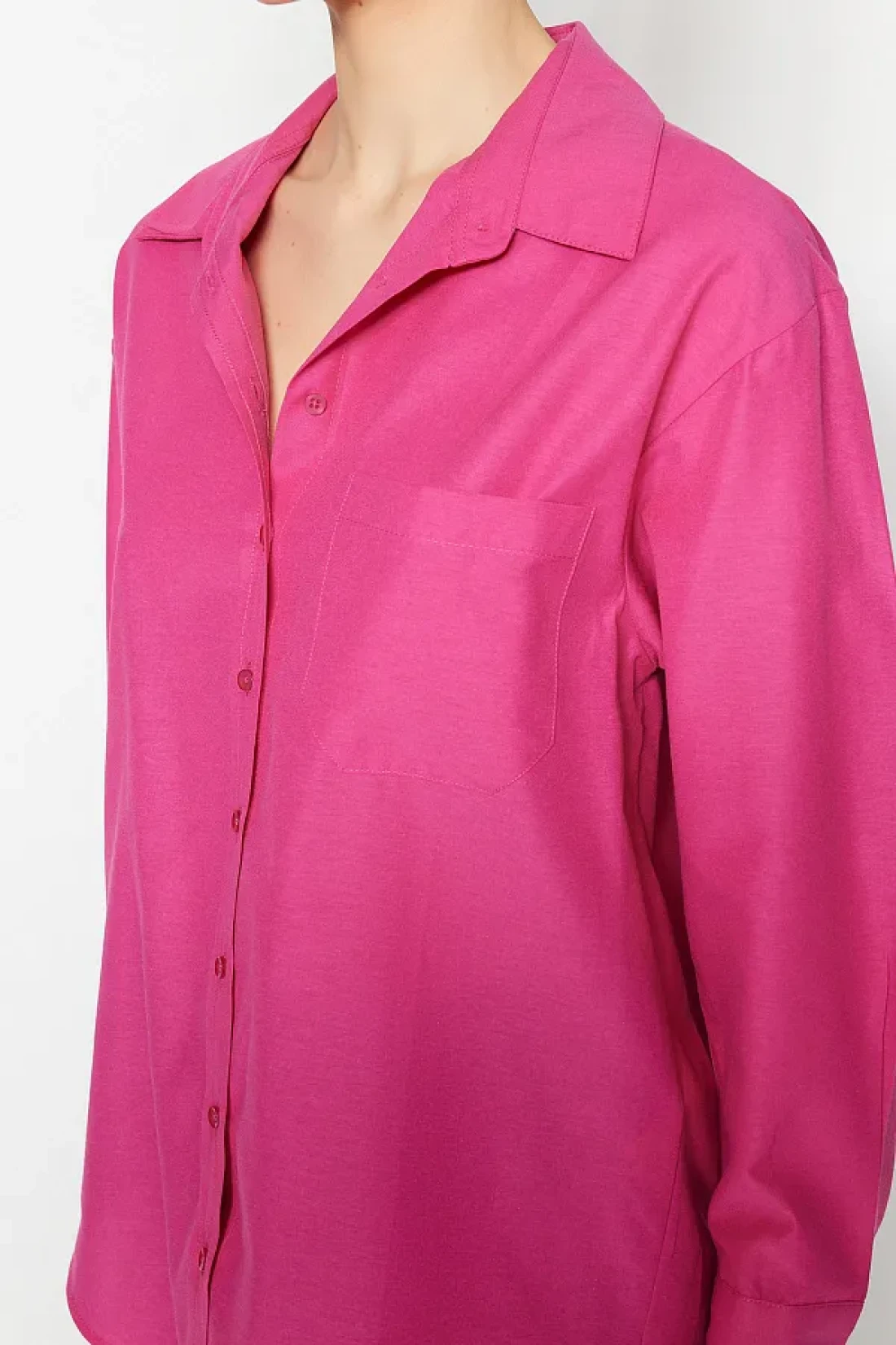 Collection Fuchsia Single Pocket Boyfriend/Wide Fit Cotton Woven Shirt TWOAW20GO0115