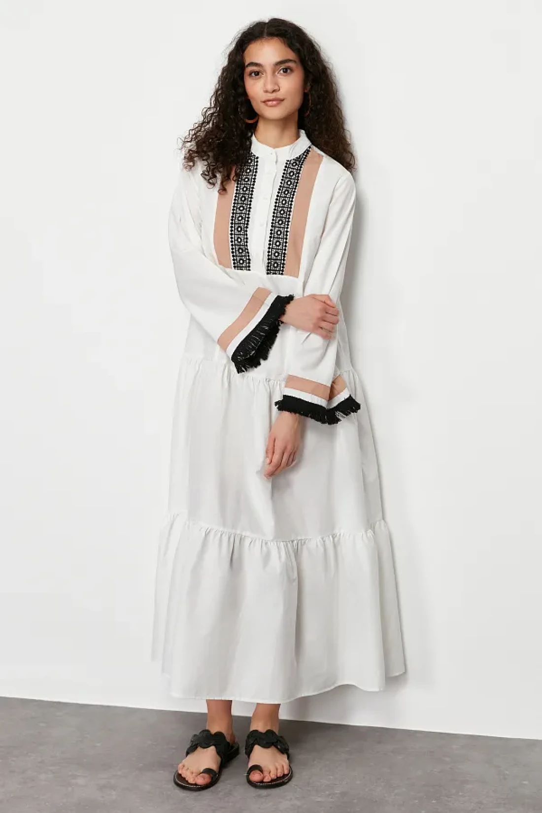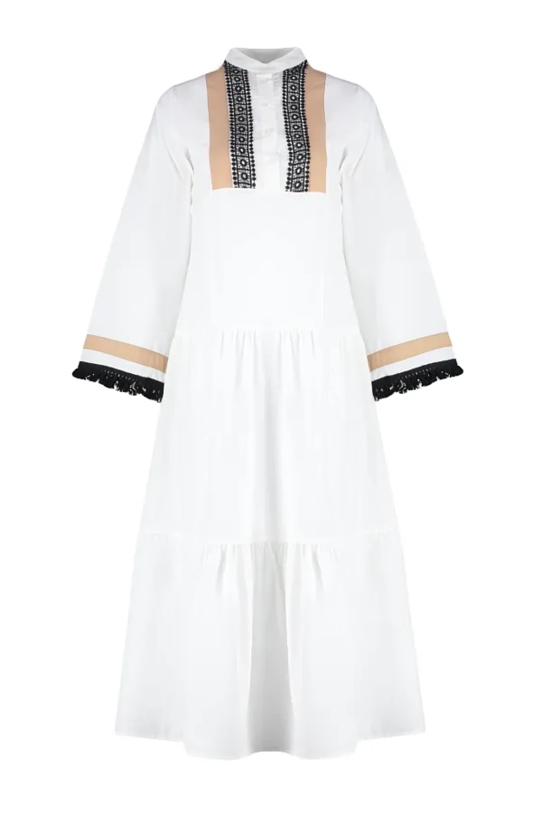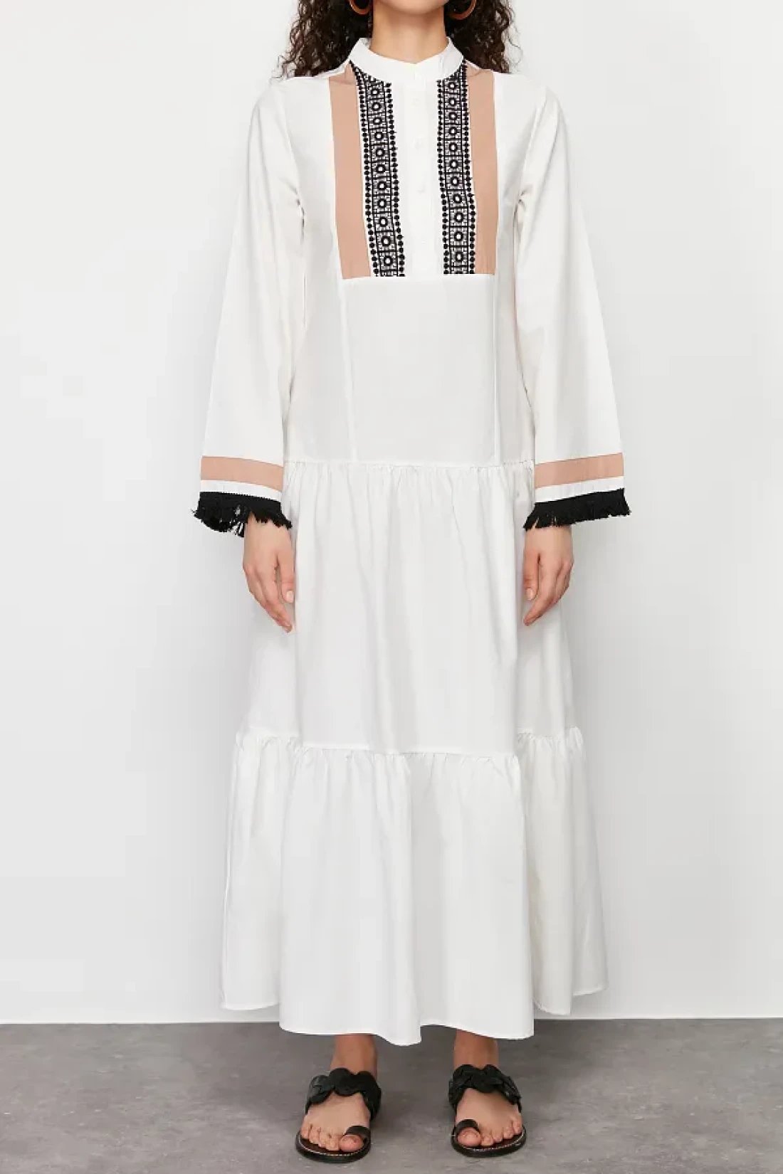 Modest Ecru Embroidery and Tassel Detailed Woven Dress TCTSS24EB00134