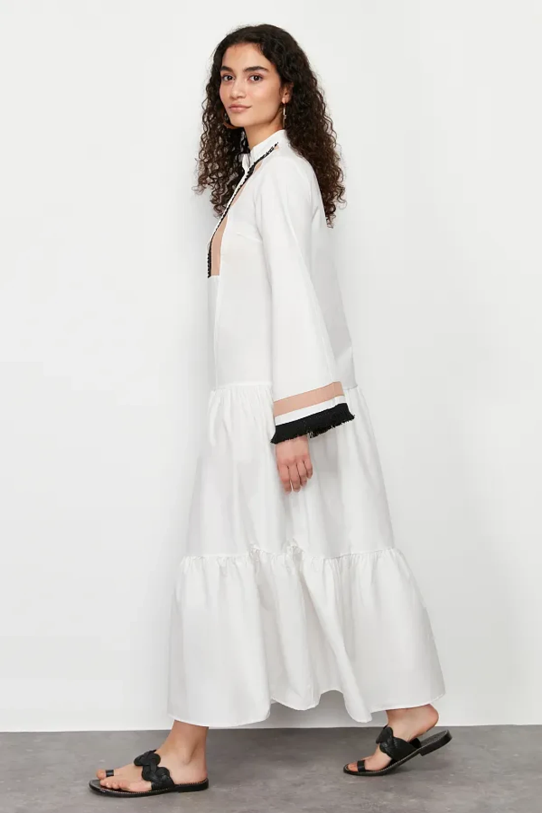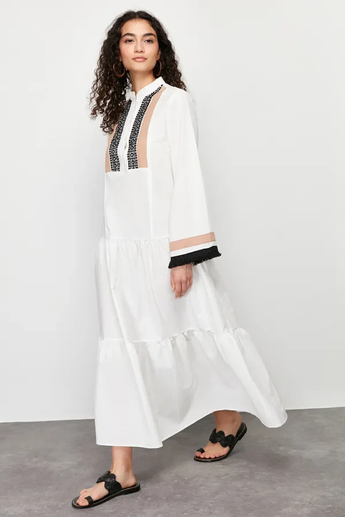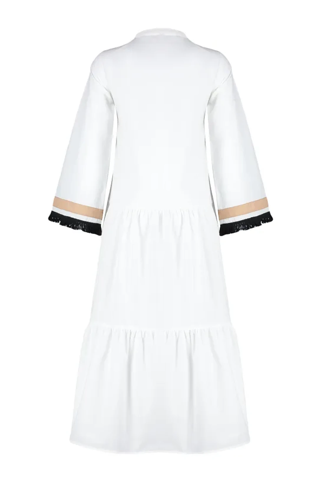 Modest Ecru Embroidery and Tassel Detailed Woven Dress TCTSS24EB00134
