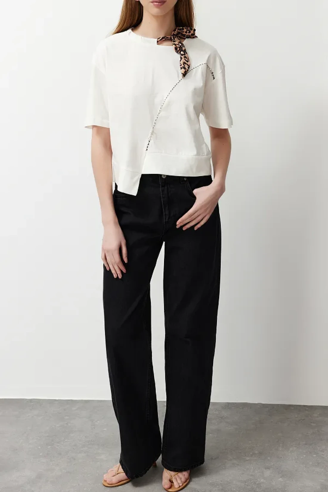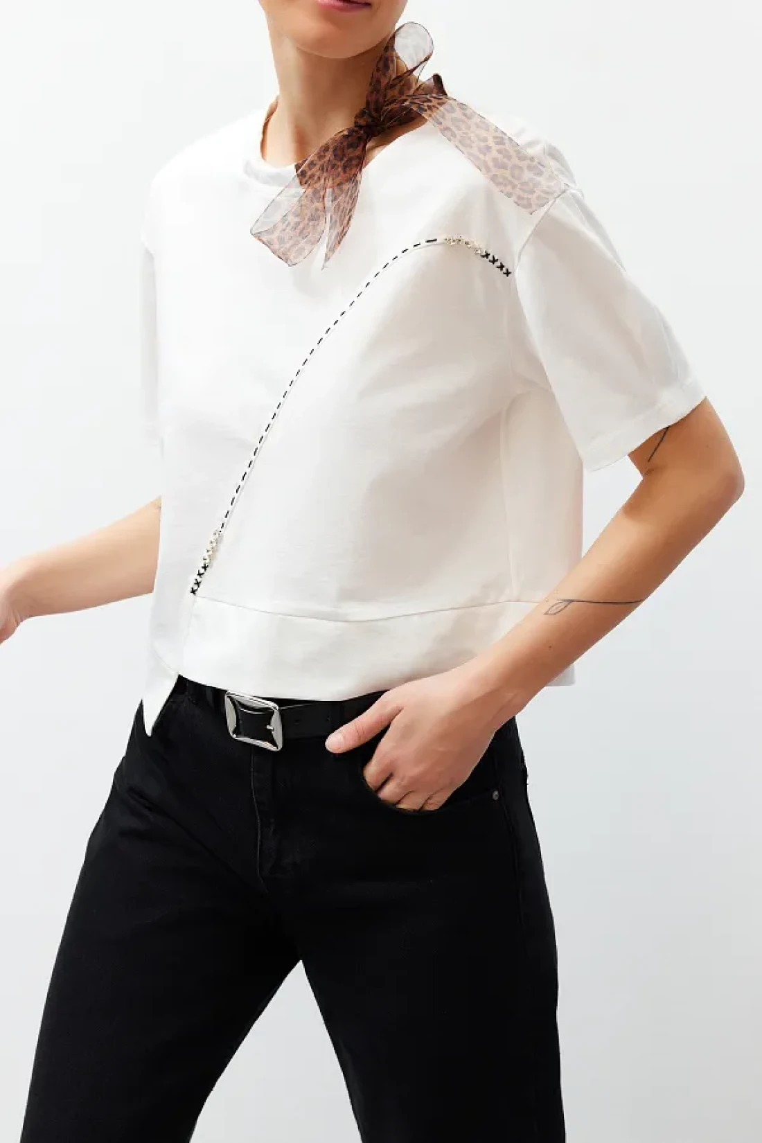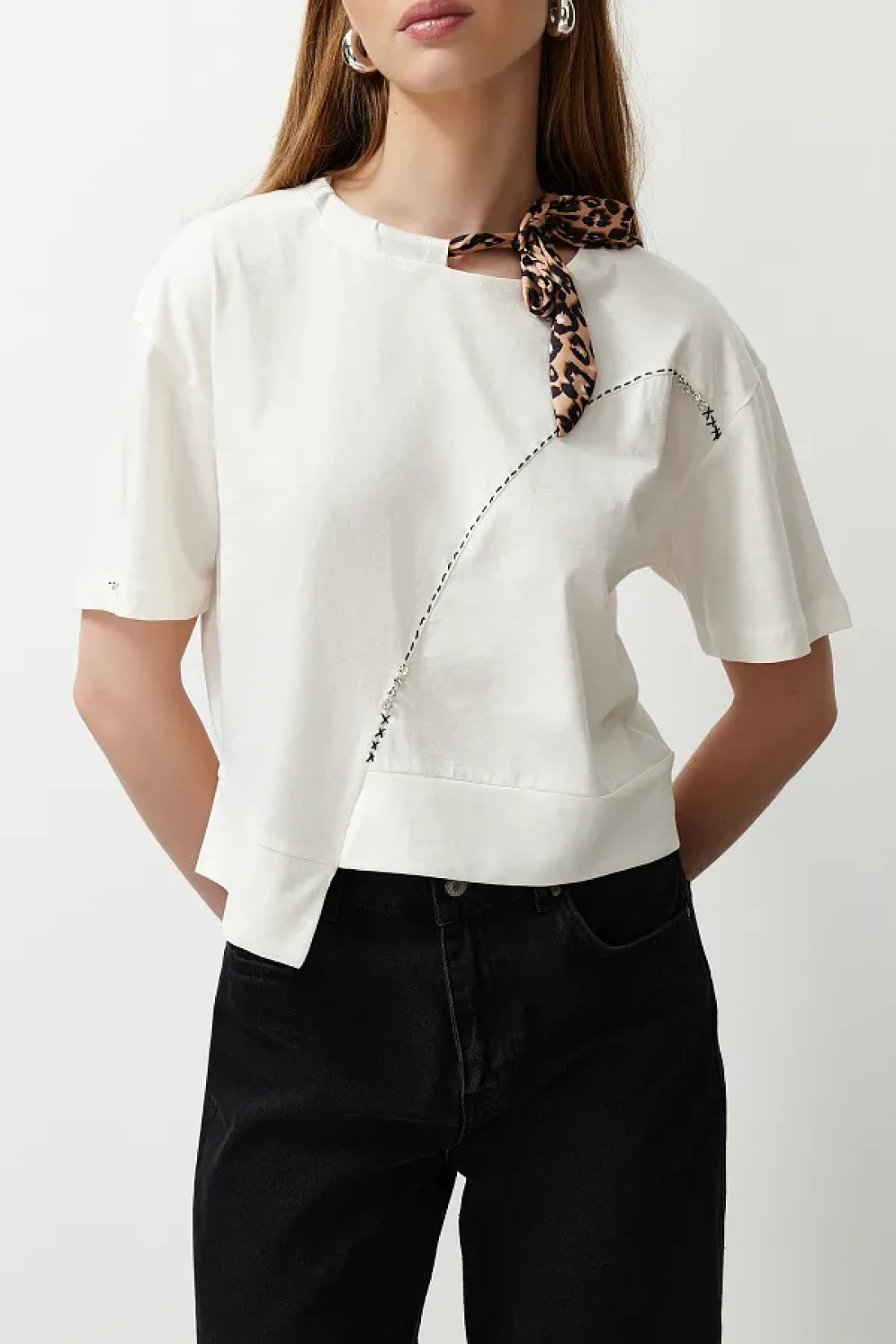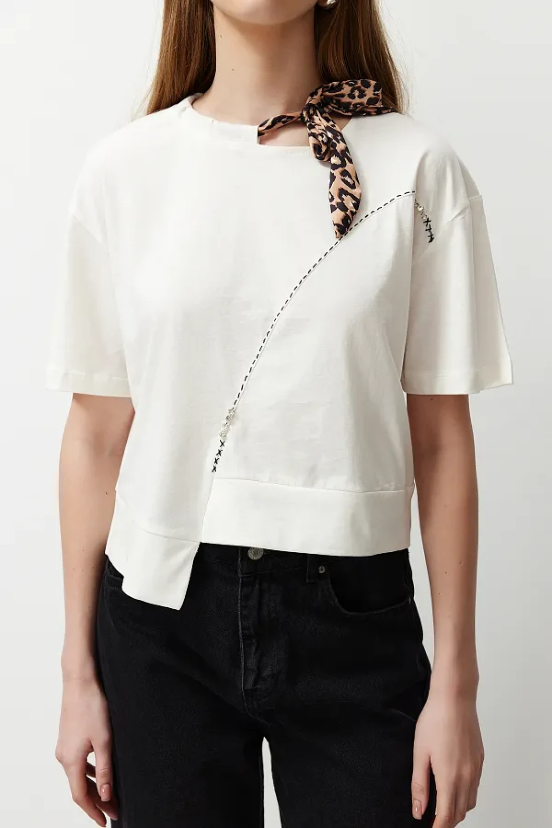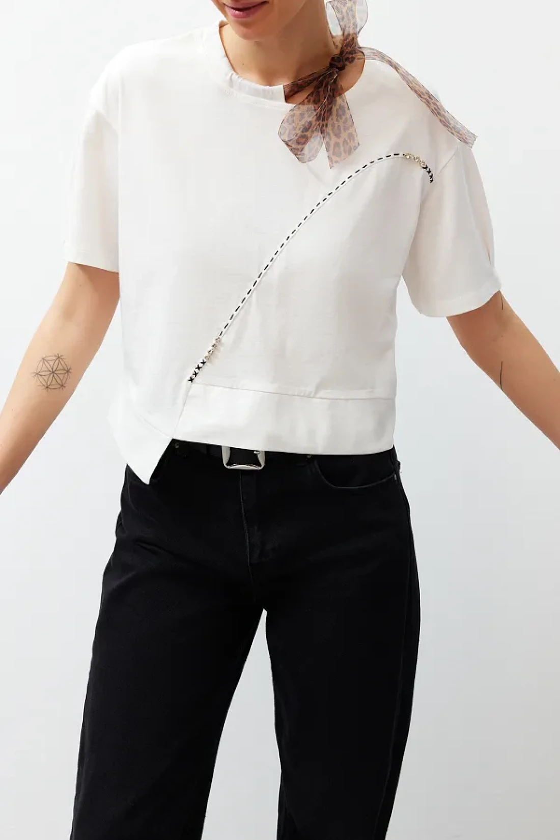 Edit by White Leopard Halter Detailed Knitted T-Shirt TEDSS24TS00001