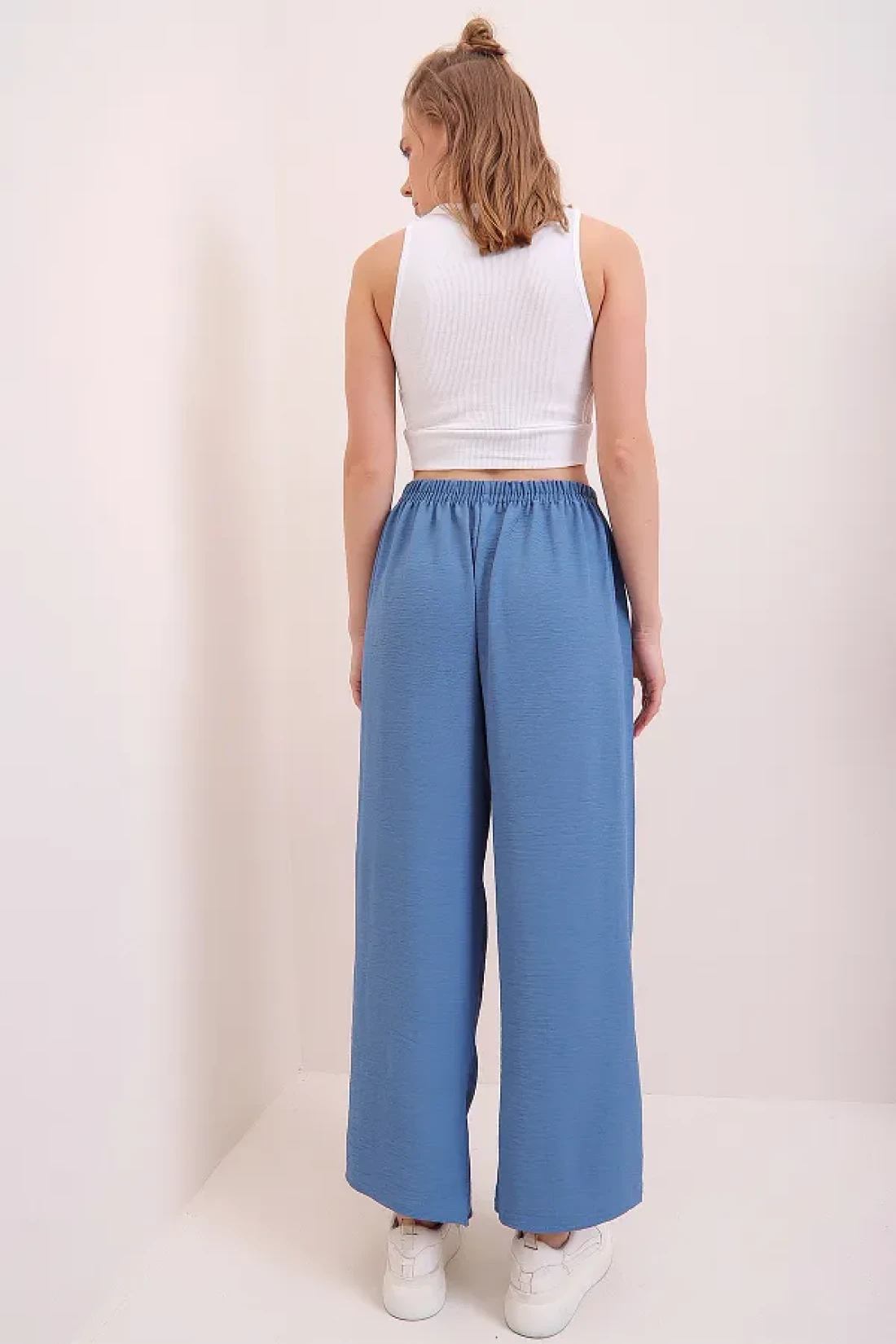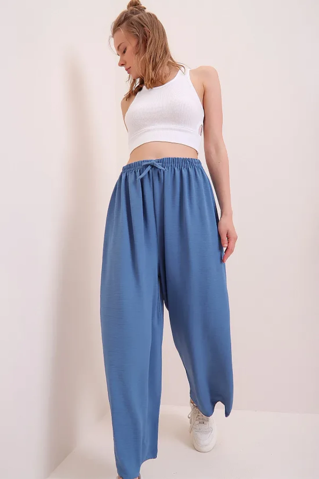 Trend Alaçatı Stili Women's Indigo Elastic Waist Relaxed Cut Aerobin Trousers