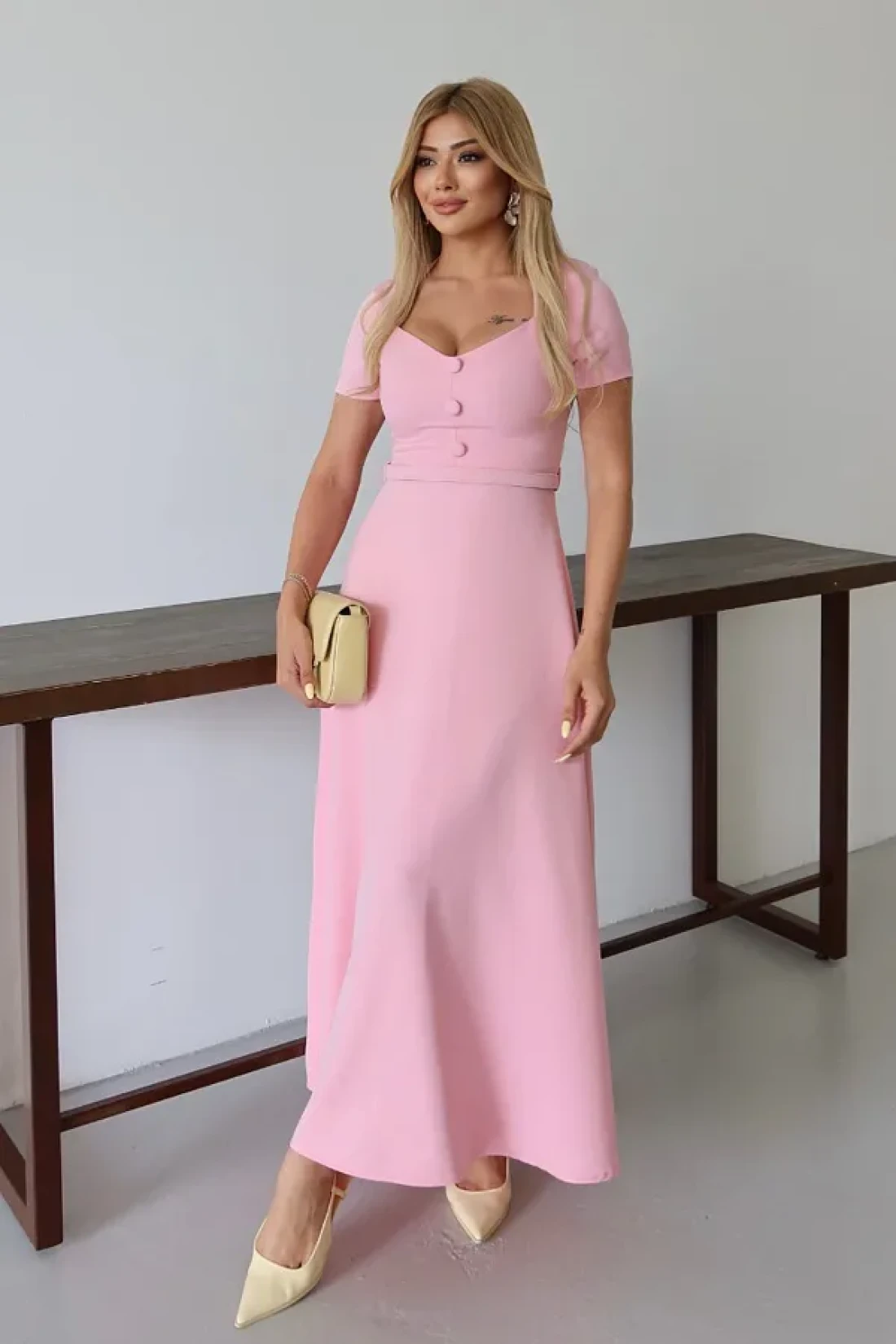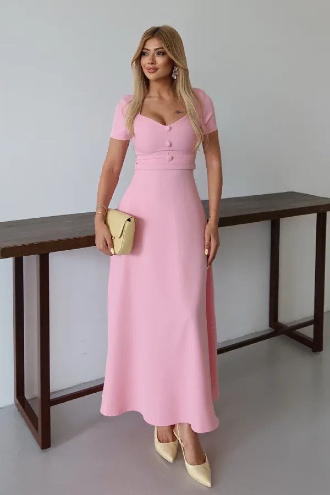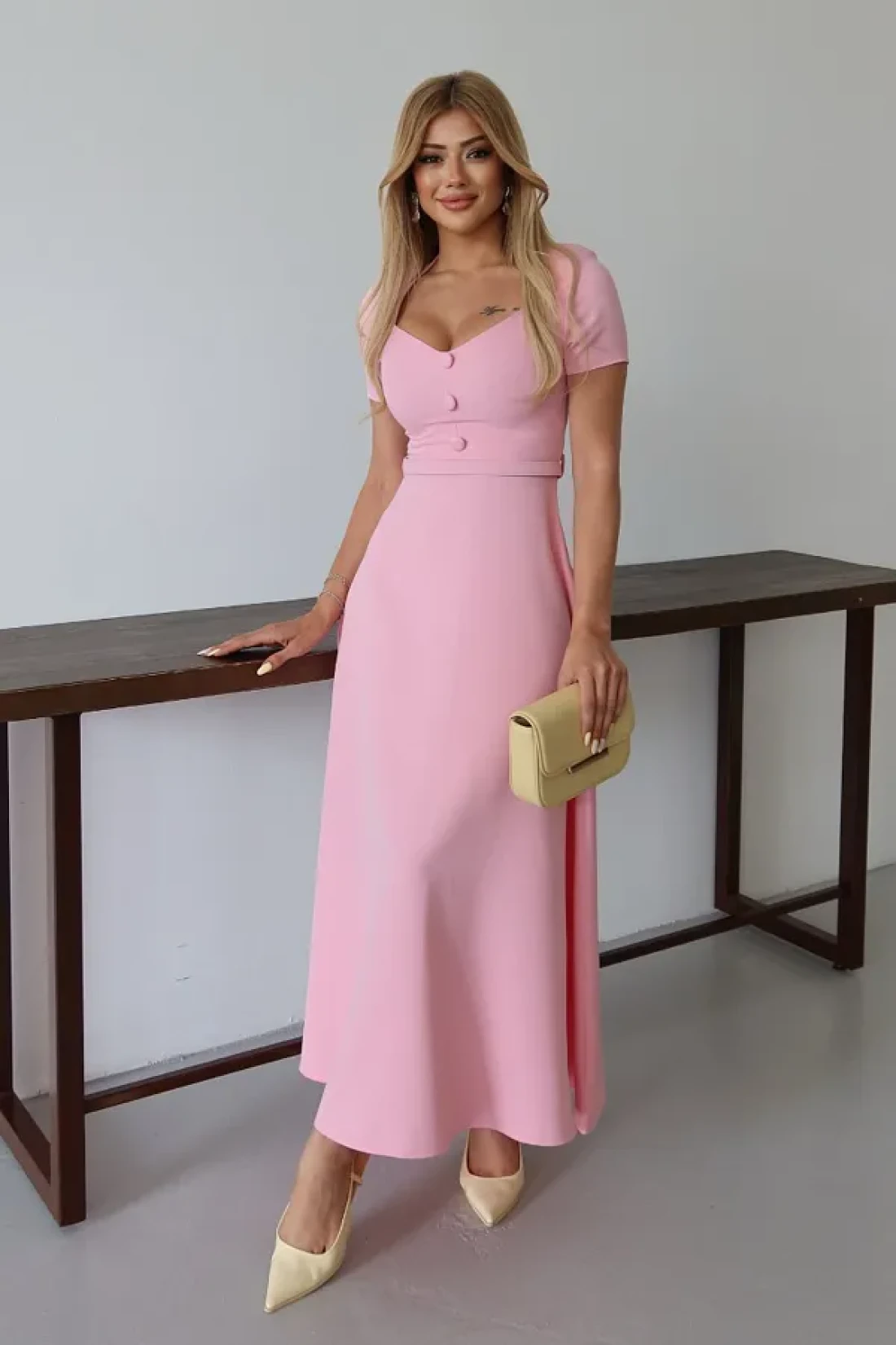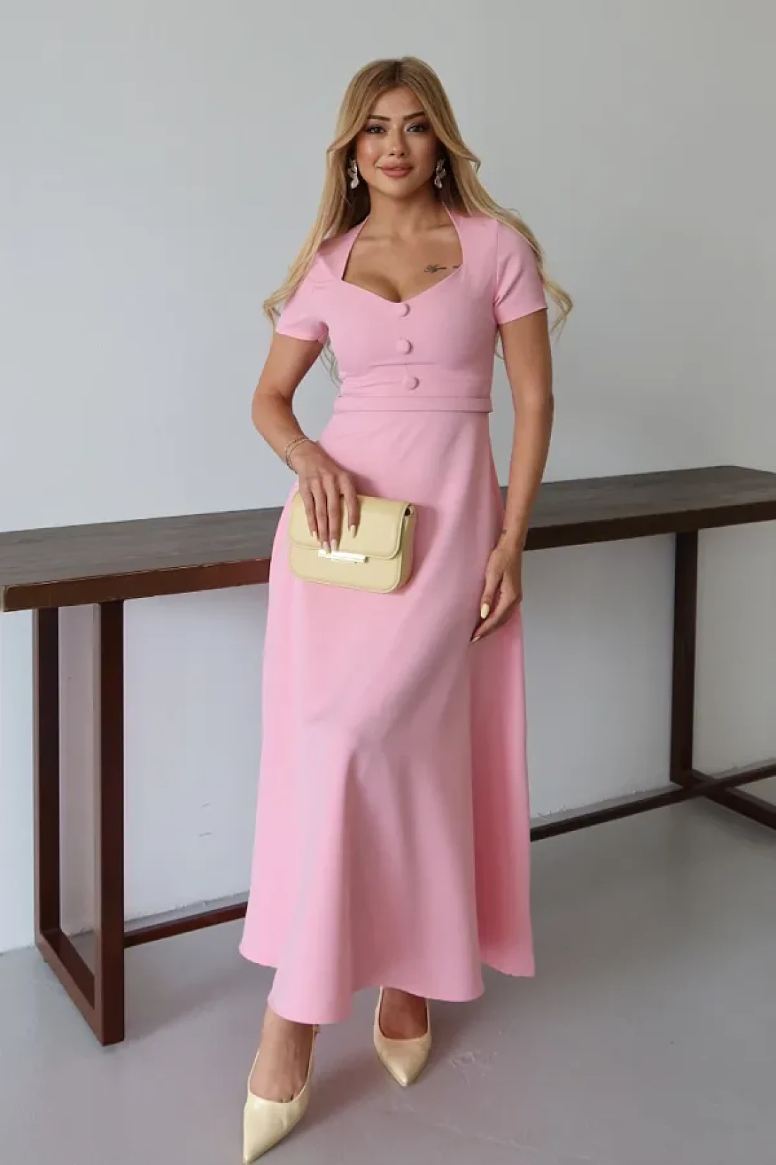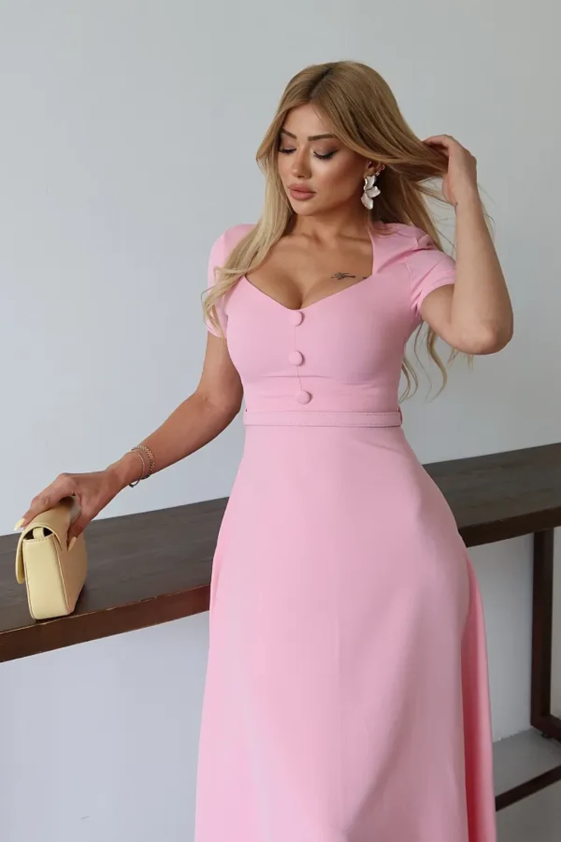 MILANOFOX Square Neck Belted Button Detailed Flared Double Dress – Stylish Comfortable Casual and Special Occasion Dress