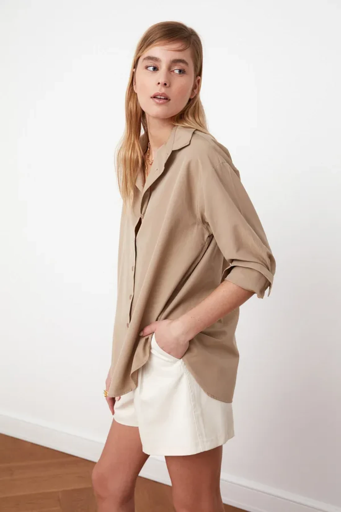 Collection Mink Loose Fit Cotton Woven Shirt TWOAW20GO0107