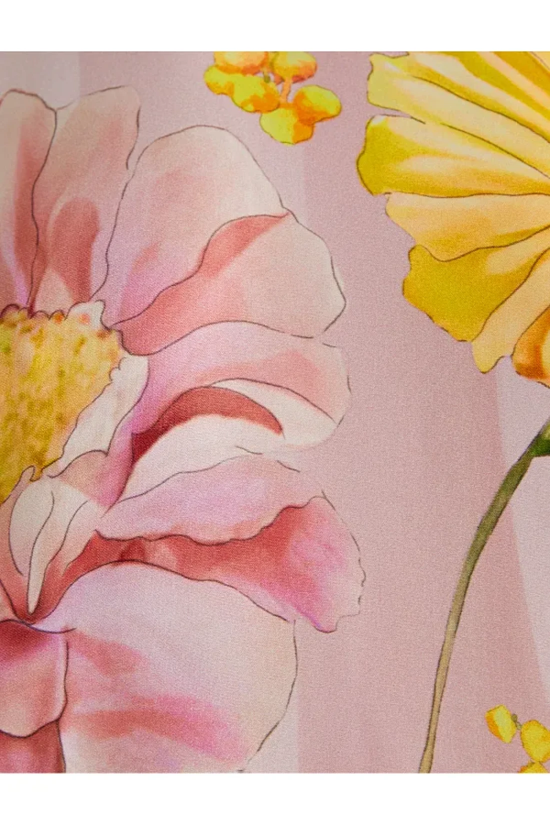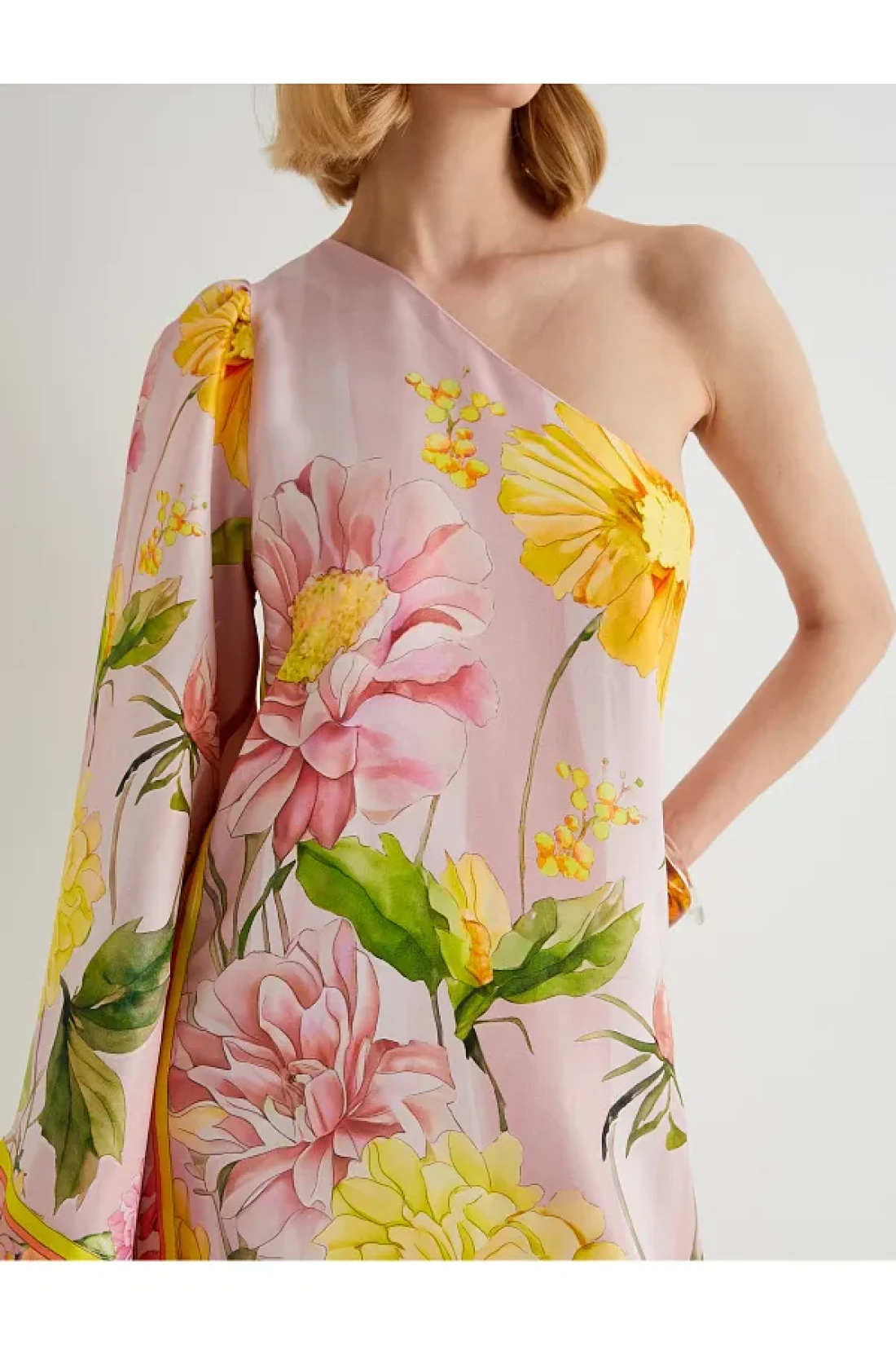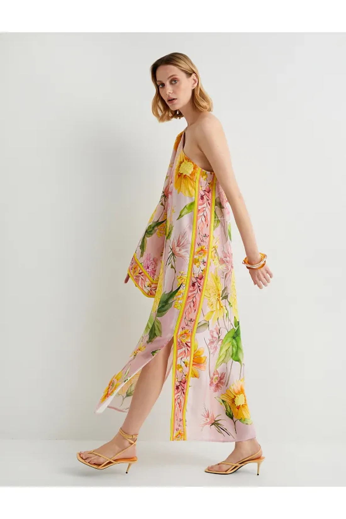 Koton x tuba Ünsal | One-shoulder, floral, slit detailed, midi length, viscose dress.