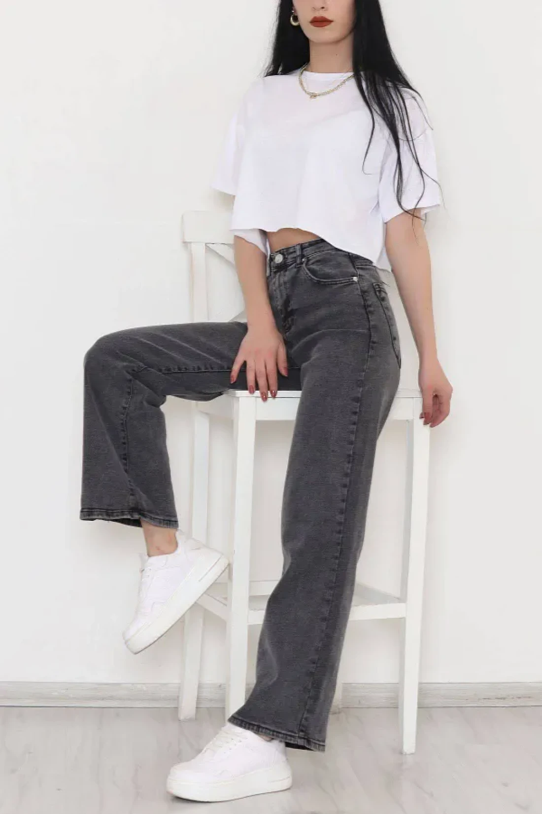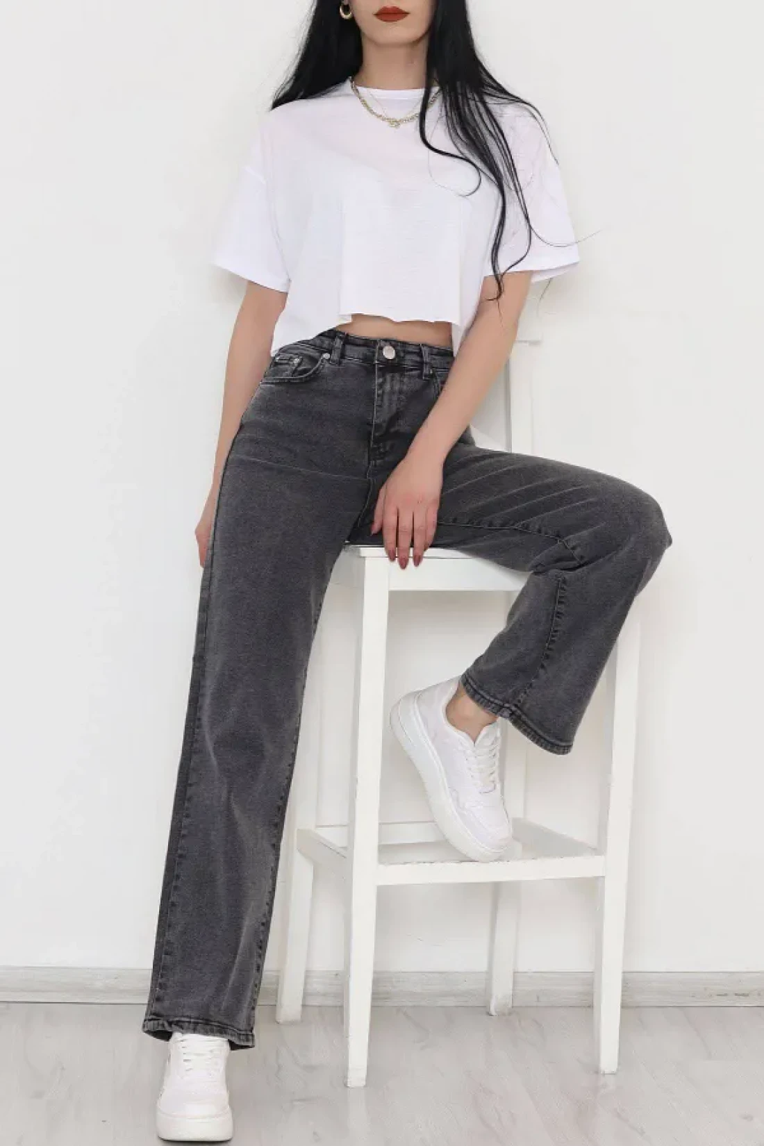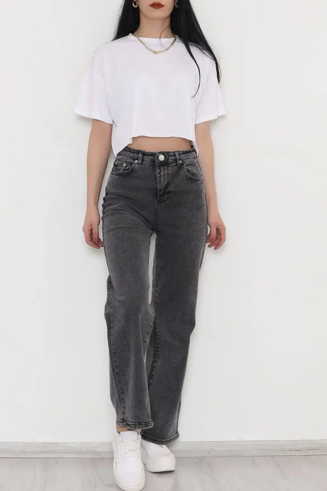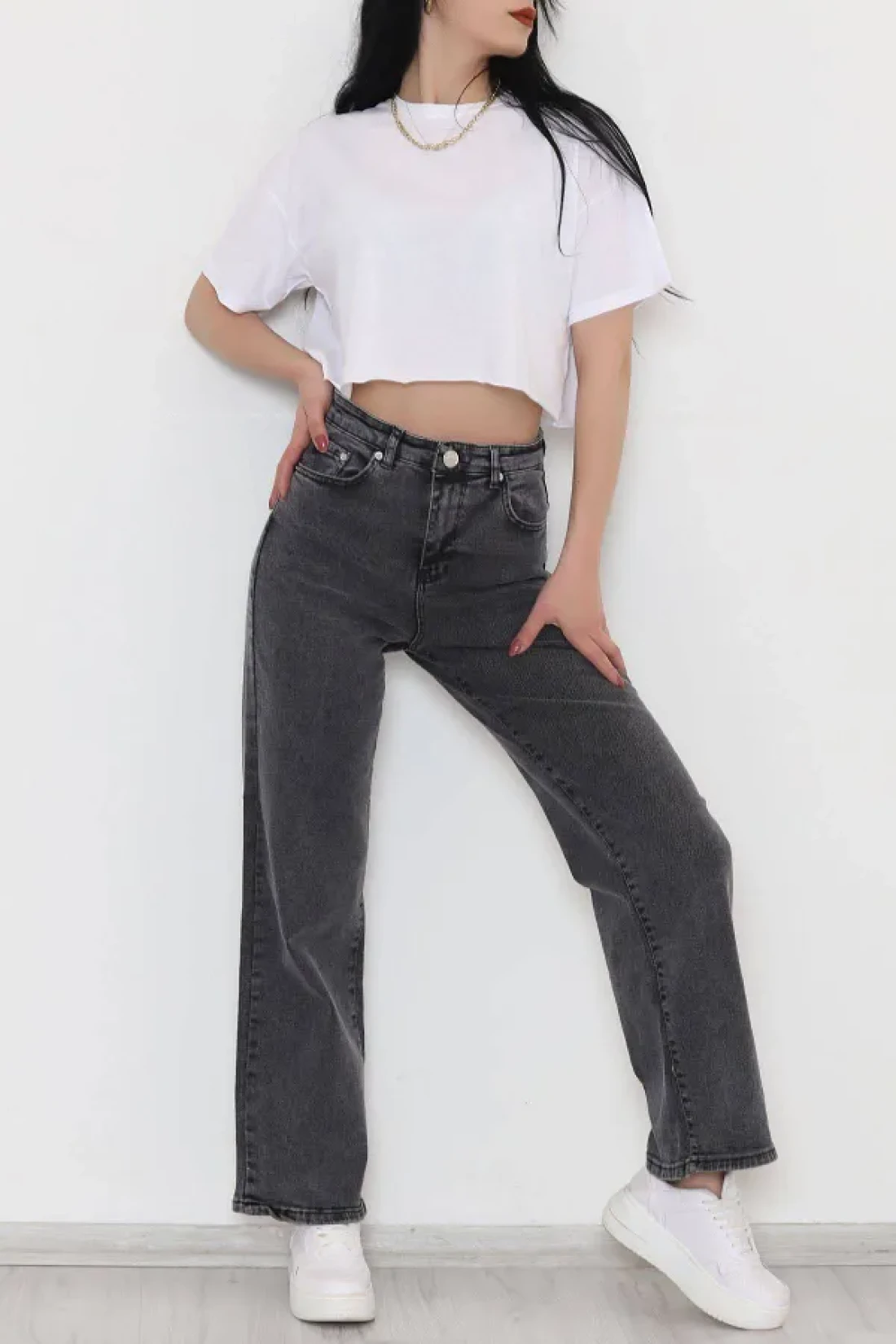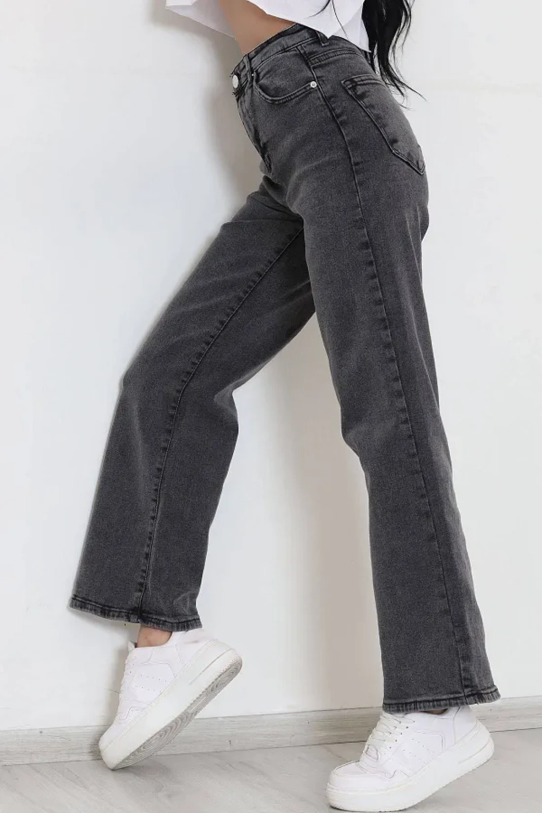 It offers practicality and functionality for daily use with its five-pocket design. It provides freedom of movement comfortably thanks to its wide leg cut. The medium-thickness denim fabric offers ideal comfort during seasonal transitions. With its high waist design, it gives a modern and stylish look, while elegantly wrapping the body lines