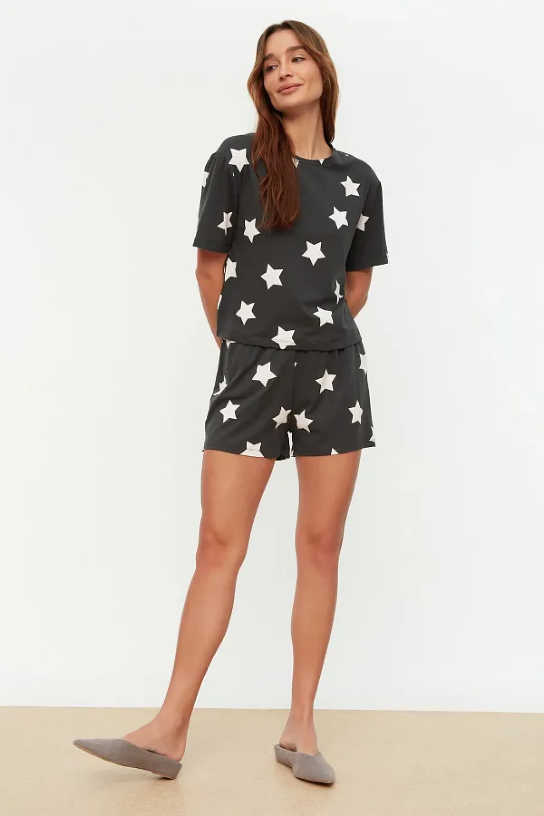Collection Multicolor 100% Cotton Star Pattern Shorts Knitted Pajamas Set Thmss22Pt0501