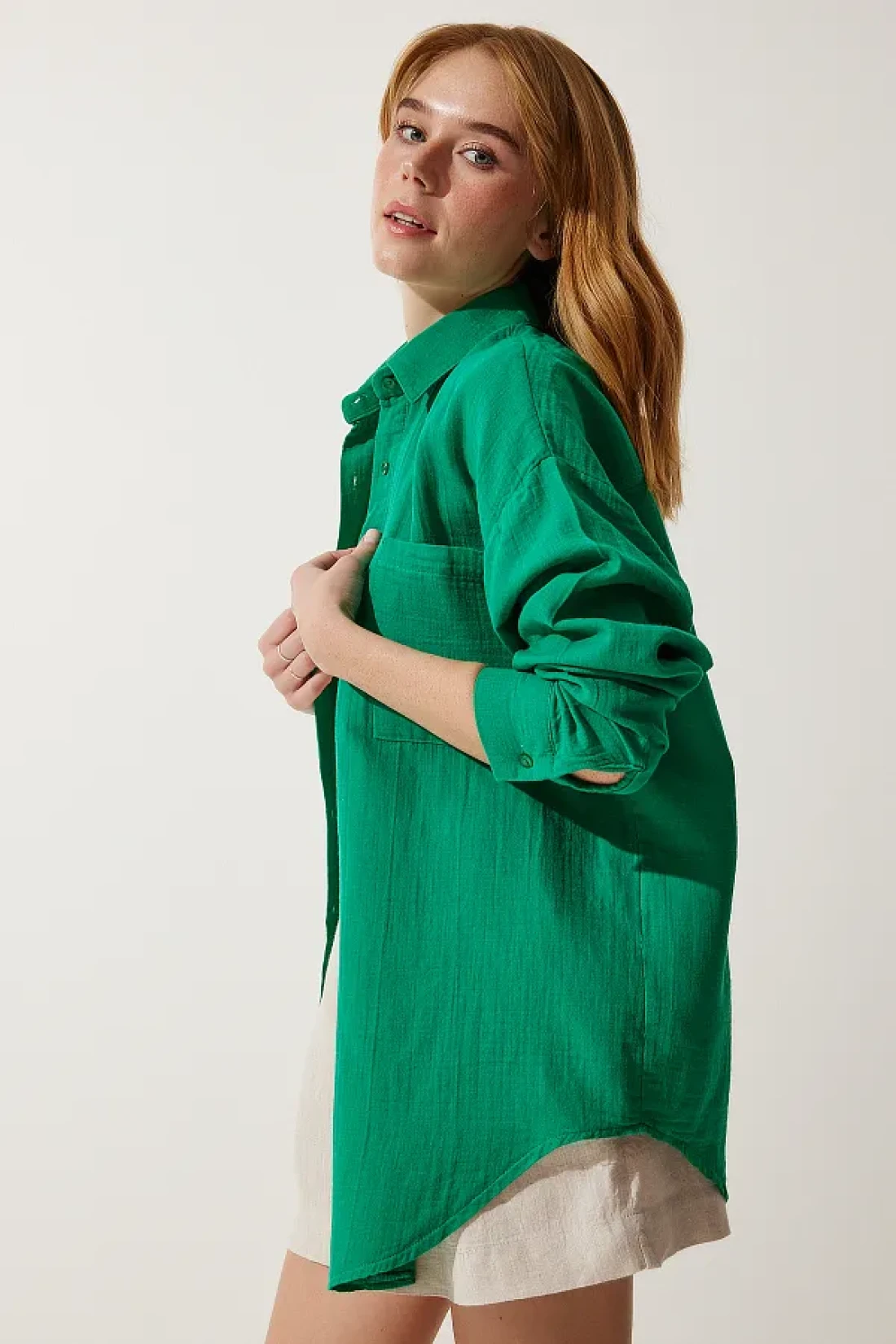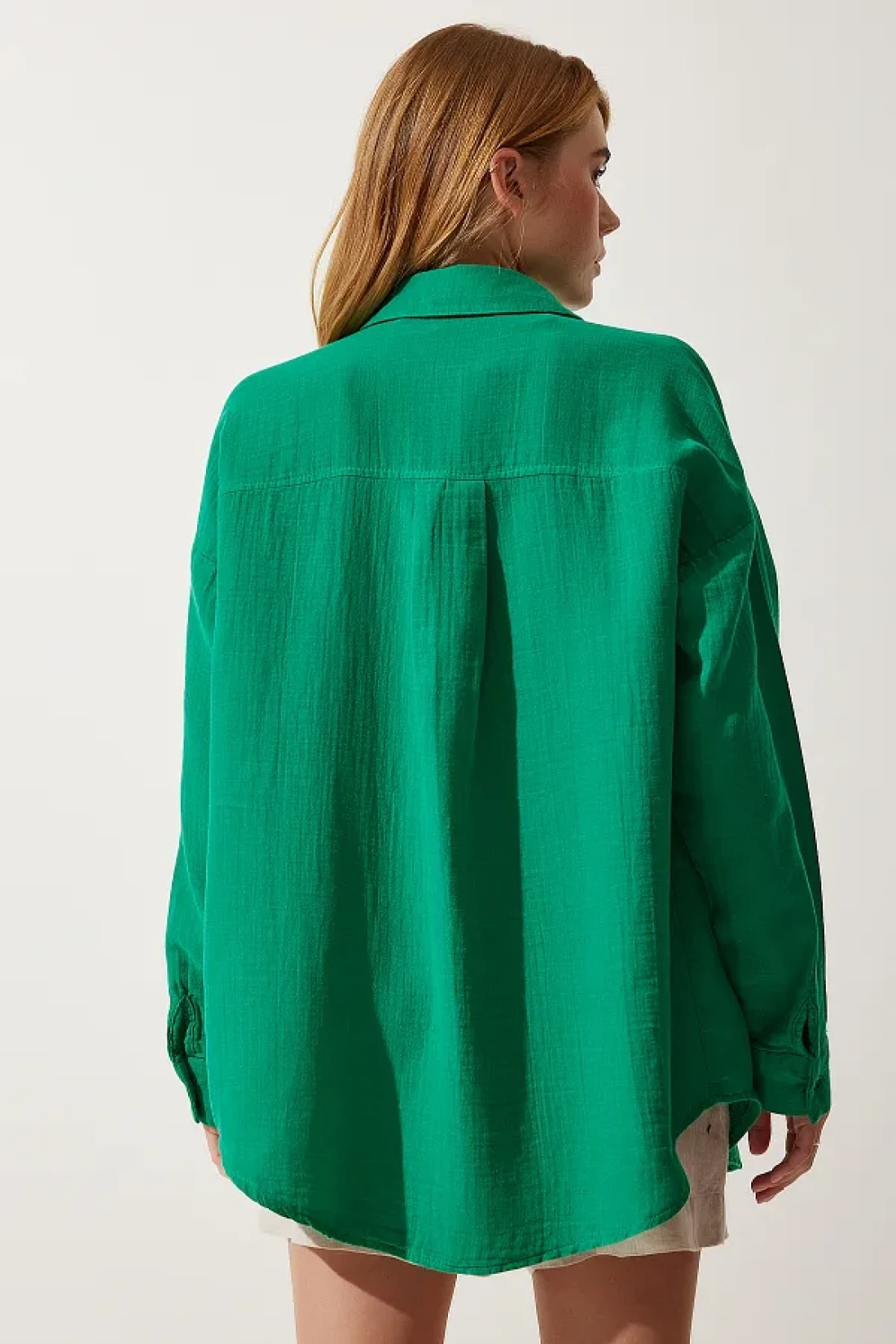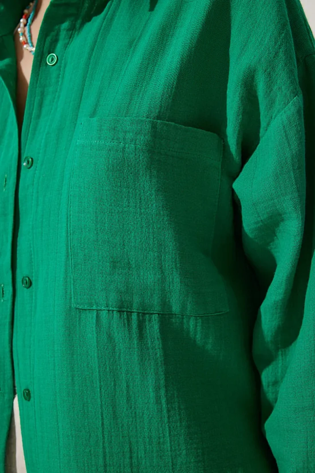 Happiness İstanbul Women's Green Pocket Oversize Muslin Shirt MX00150