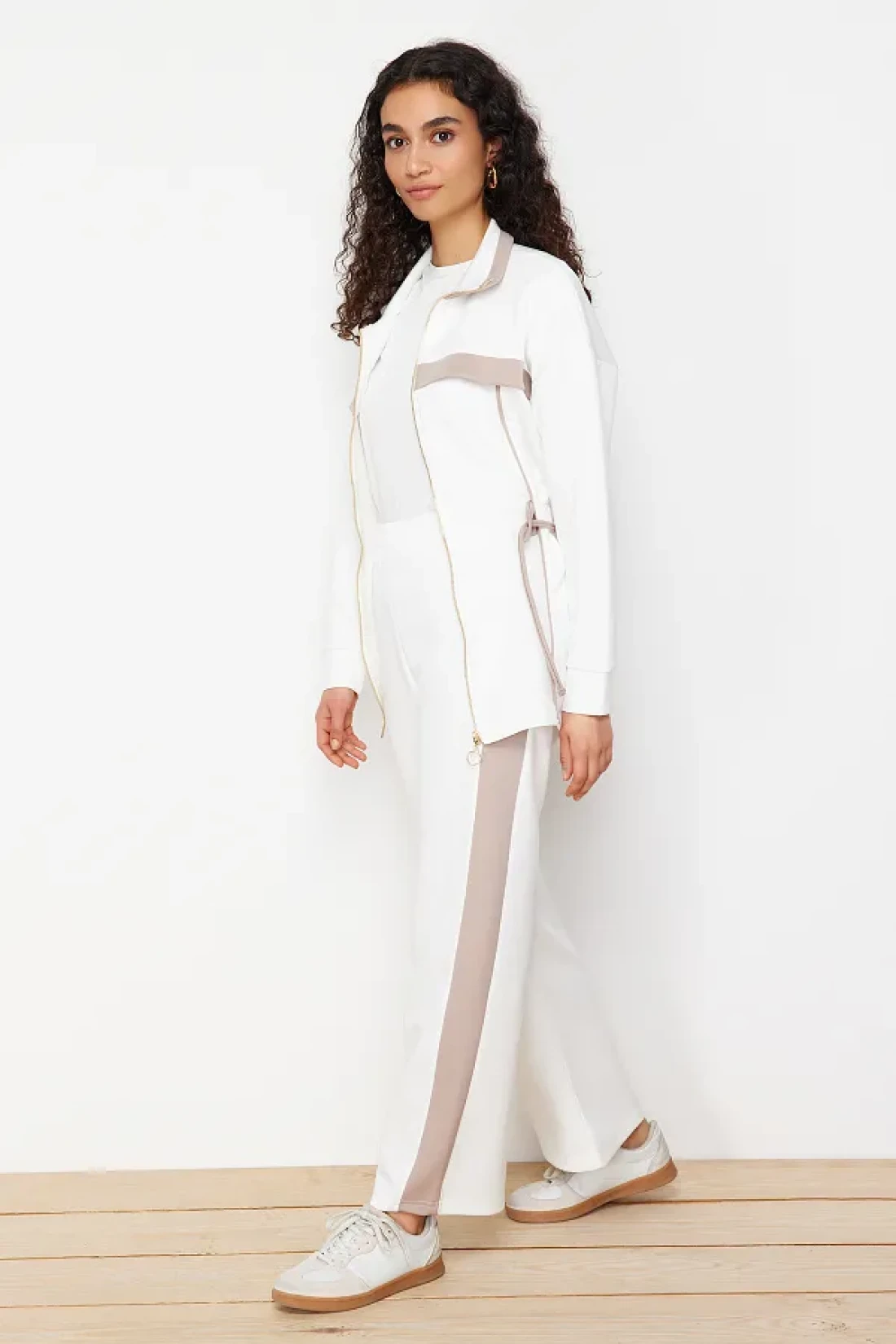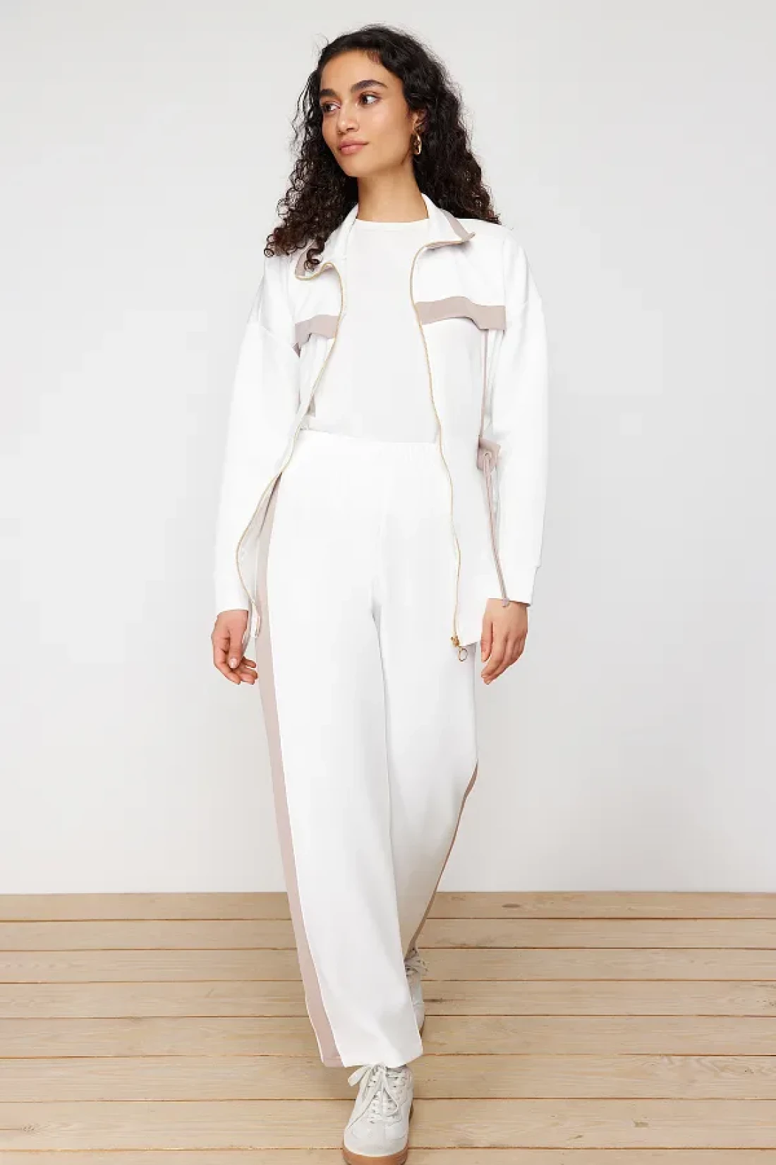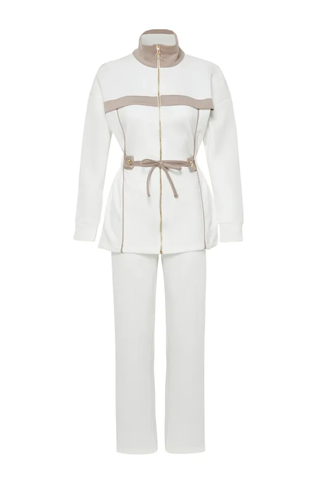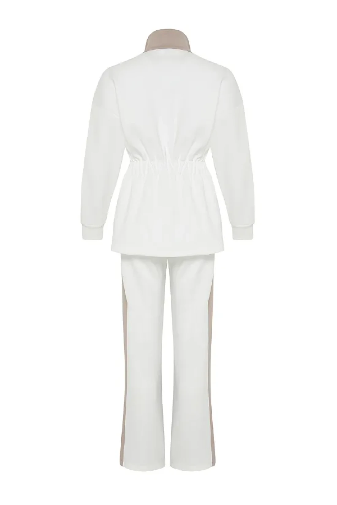 Modest Ecru Scuba Fabric Bottom-Top Set - Piping Knitted Diver TCTAW24US00071