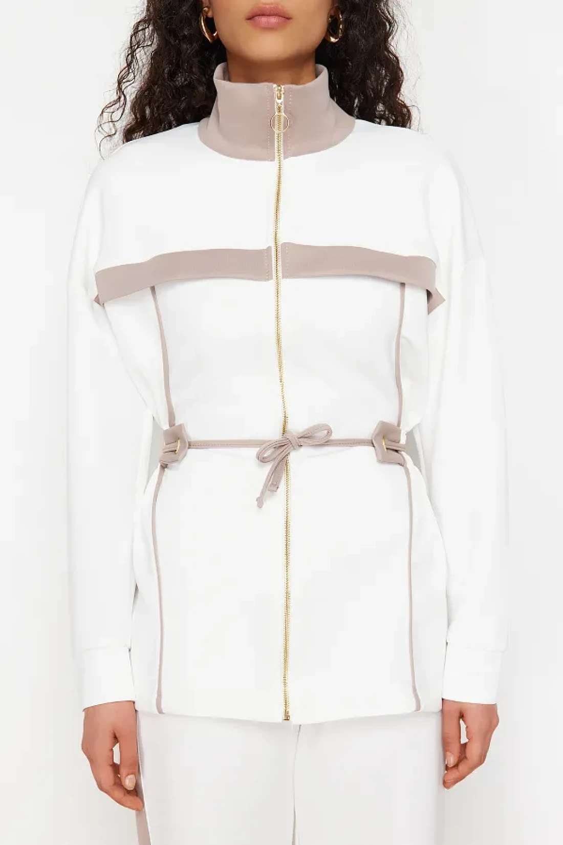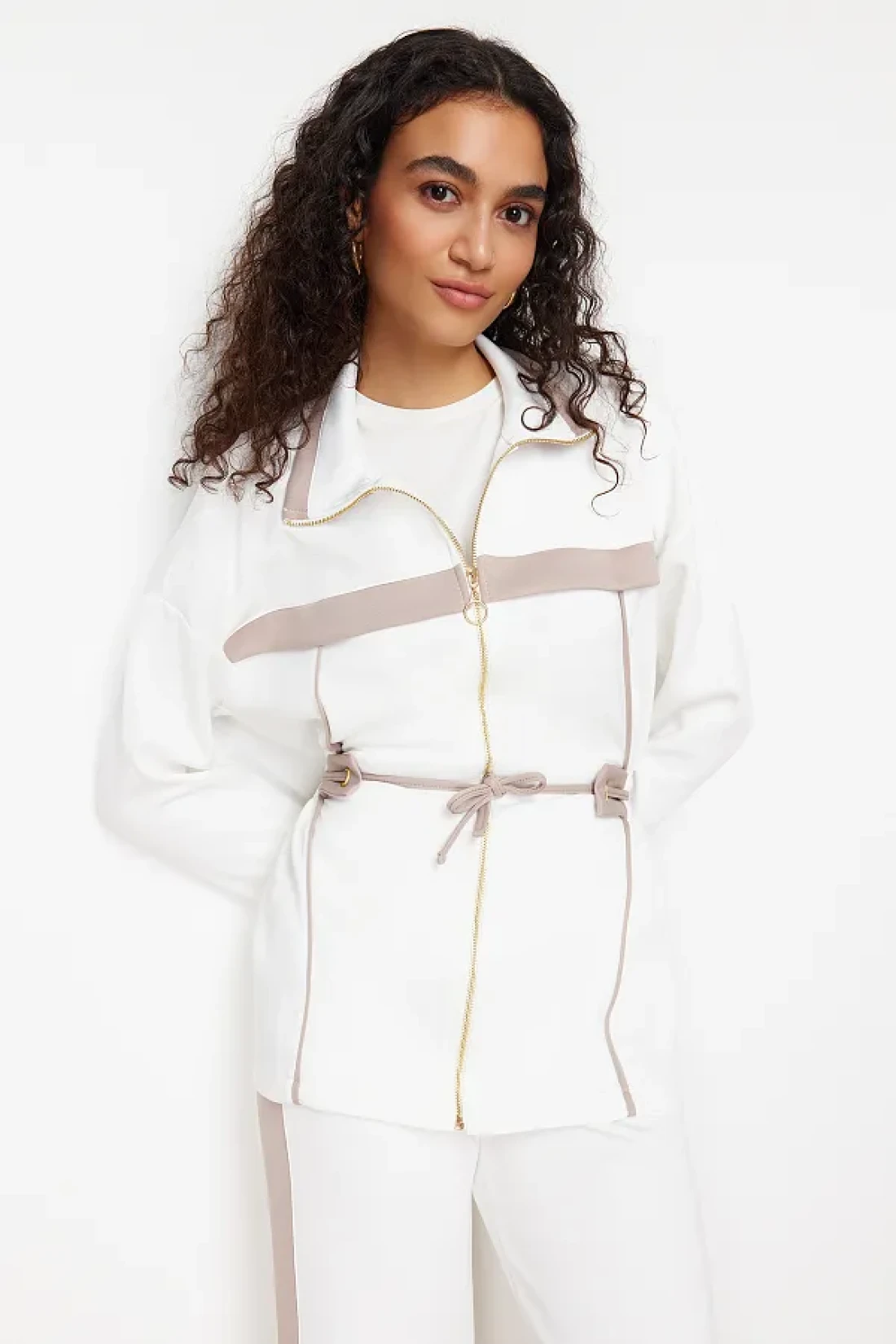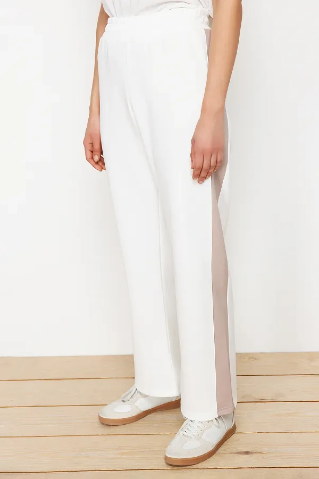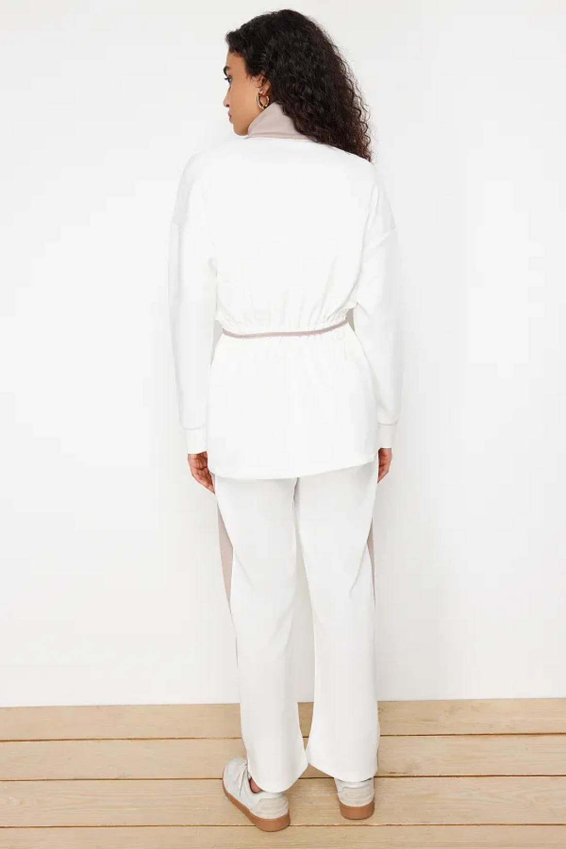 Modest Ecru Scuba Fabric Bottom-Top Set - Piping Knitted Diver TCTAW24US00071