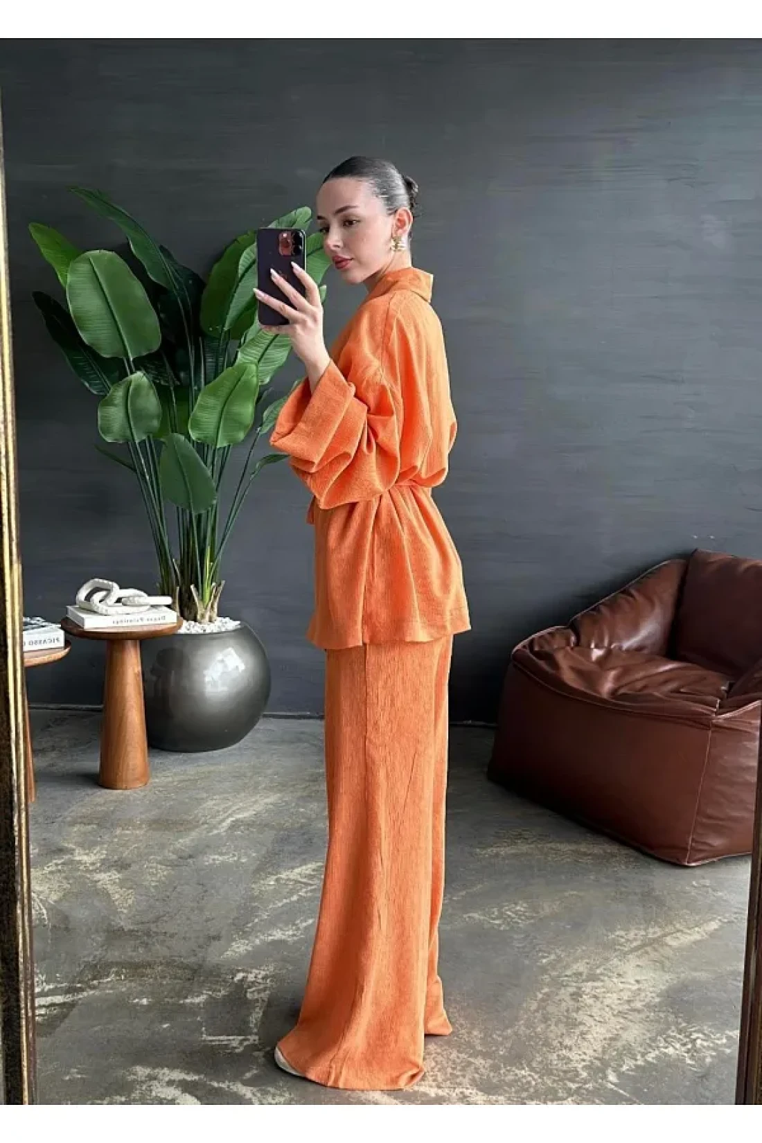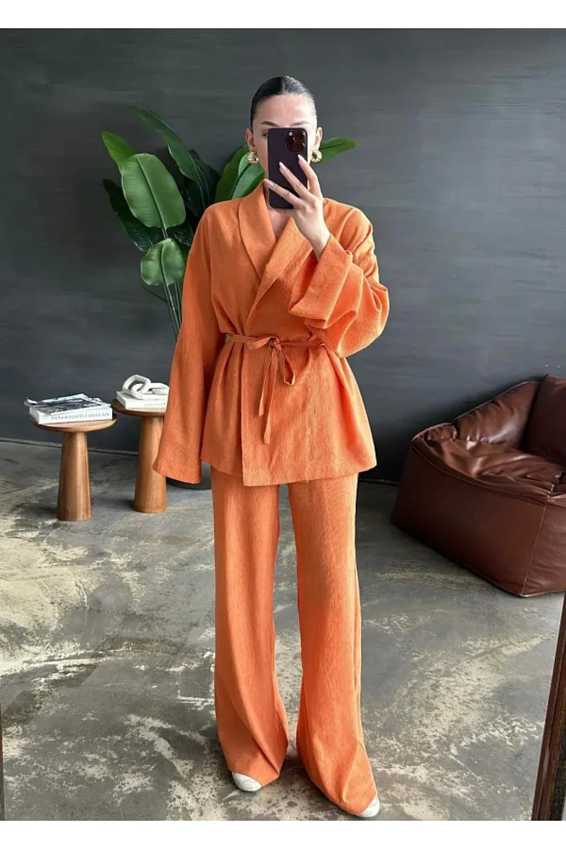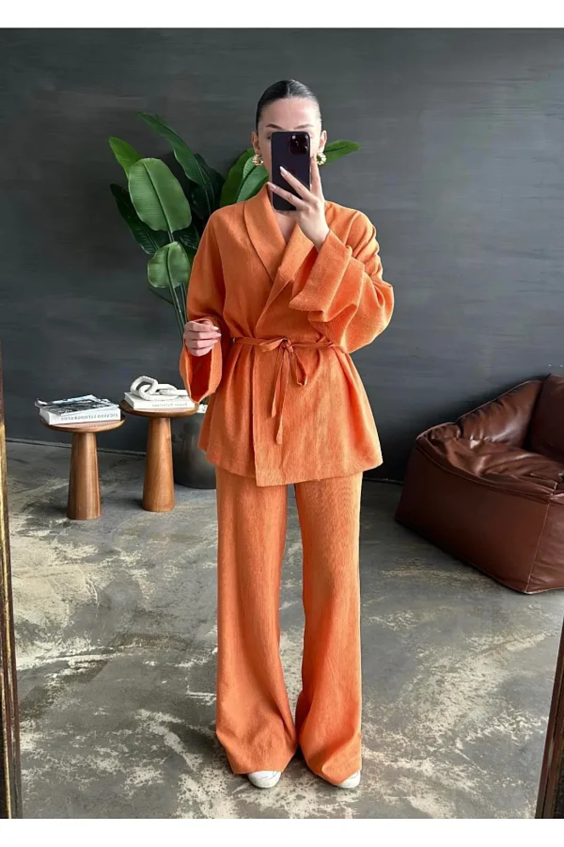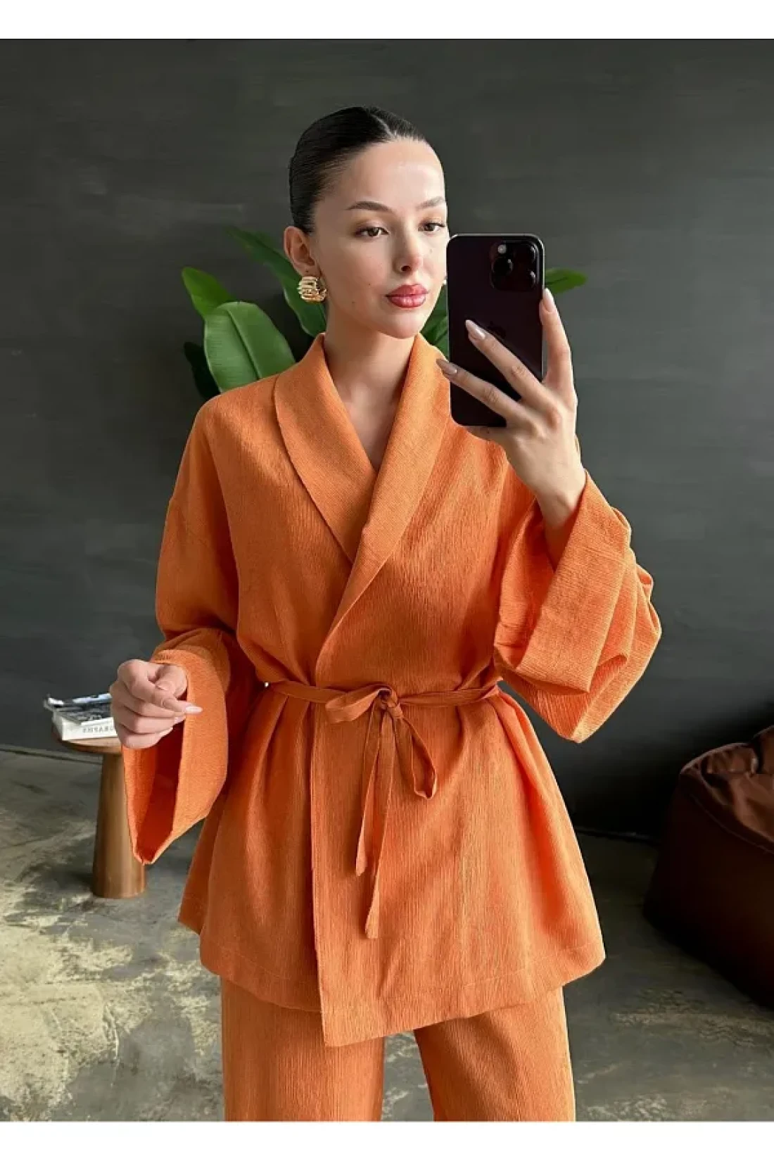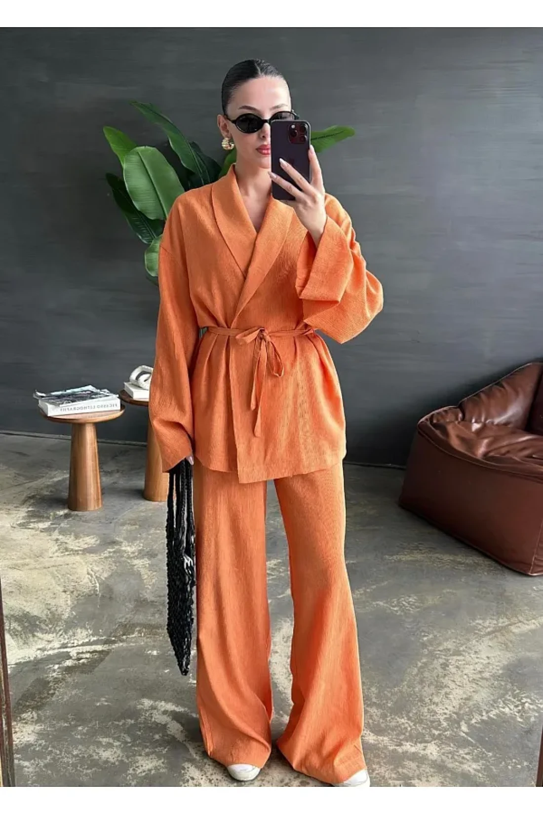 My Blog Orange Shawl Collar Kimono Pants Set - 98655