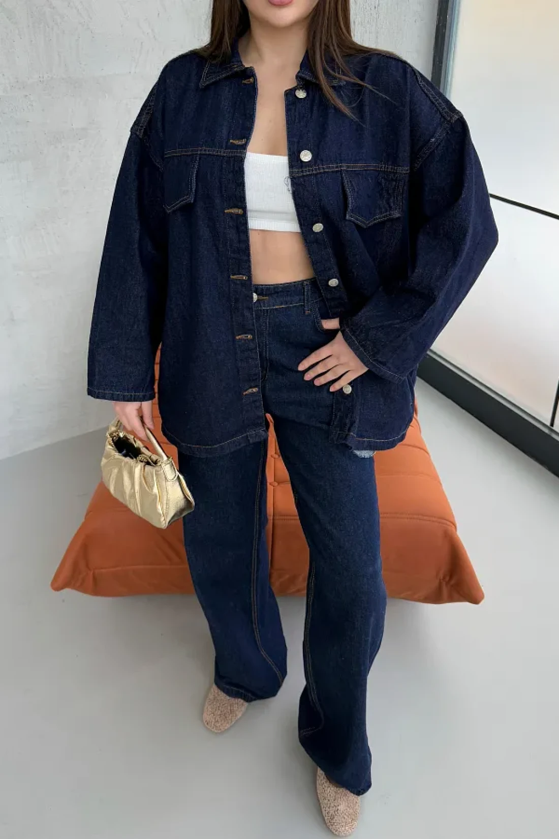 - standing out with its modern and stylish design, this denim jacket pants set can be comfortably chosen for any occasion, from everyday wear to special occasions. While it offers a classic look with its shirt collar, its double pocket structure provides practical use. Thanks to its full button closure feature, it can be easily put on and taken off, providing a comfortable experience without compromising your elegance.