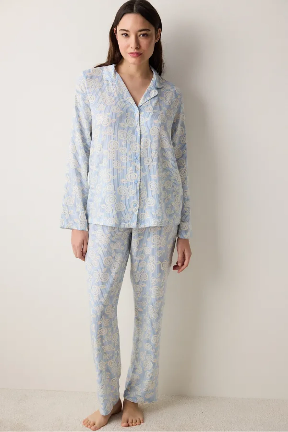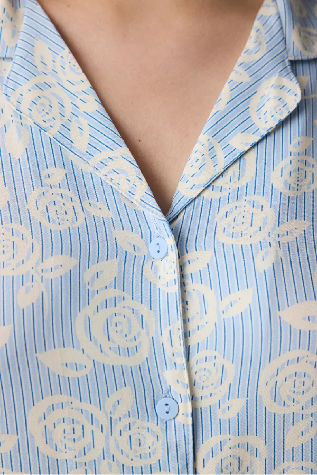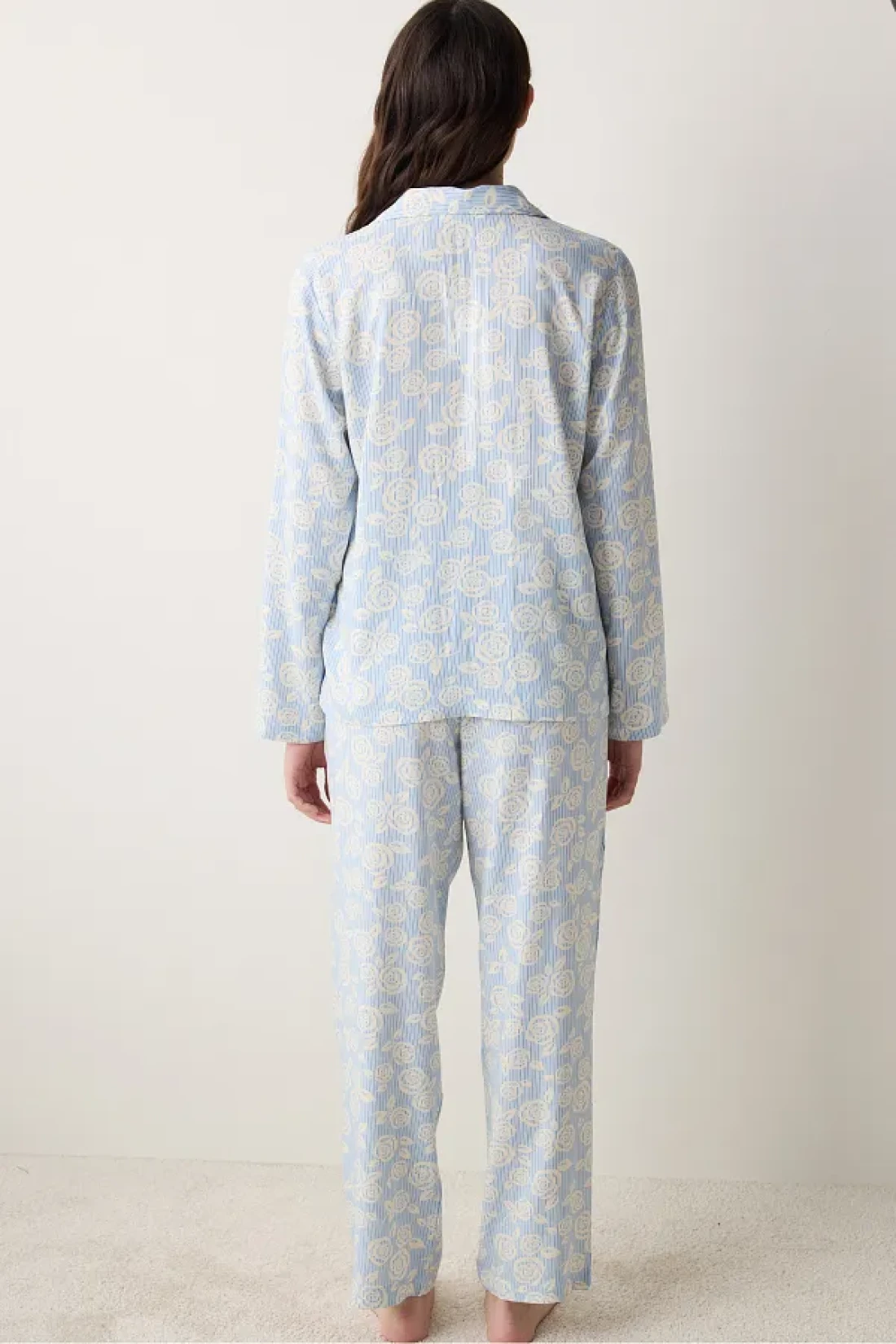 Penti Roses Shirt Pants Light Blue Pajama Set