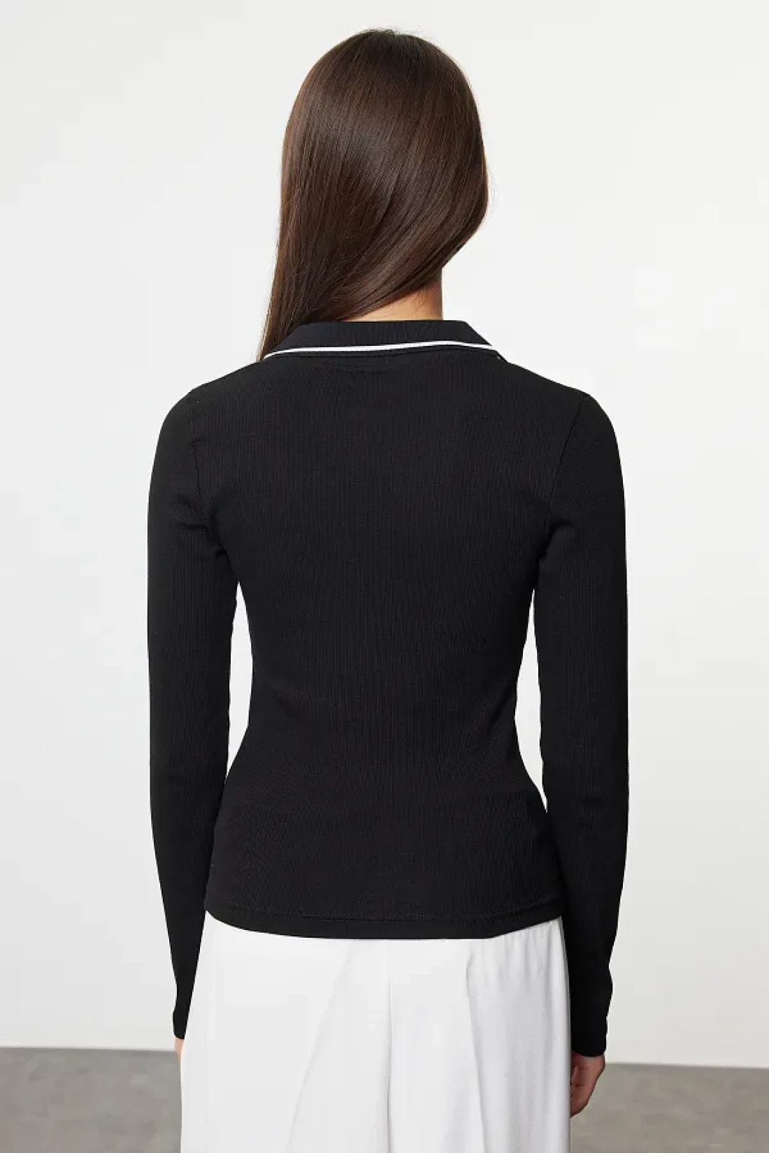 Collection Stretchy Corded Black Knitted Blouse - Knitwear Collar Detail, Fitted TWOAW25BZ00121