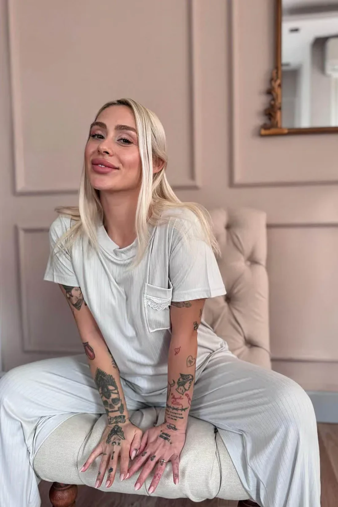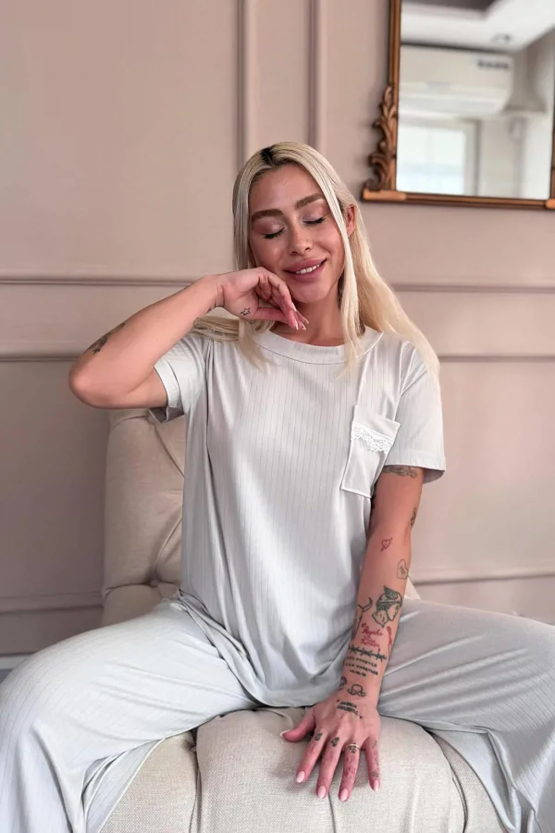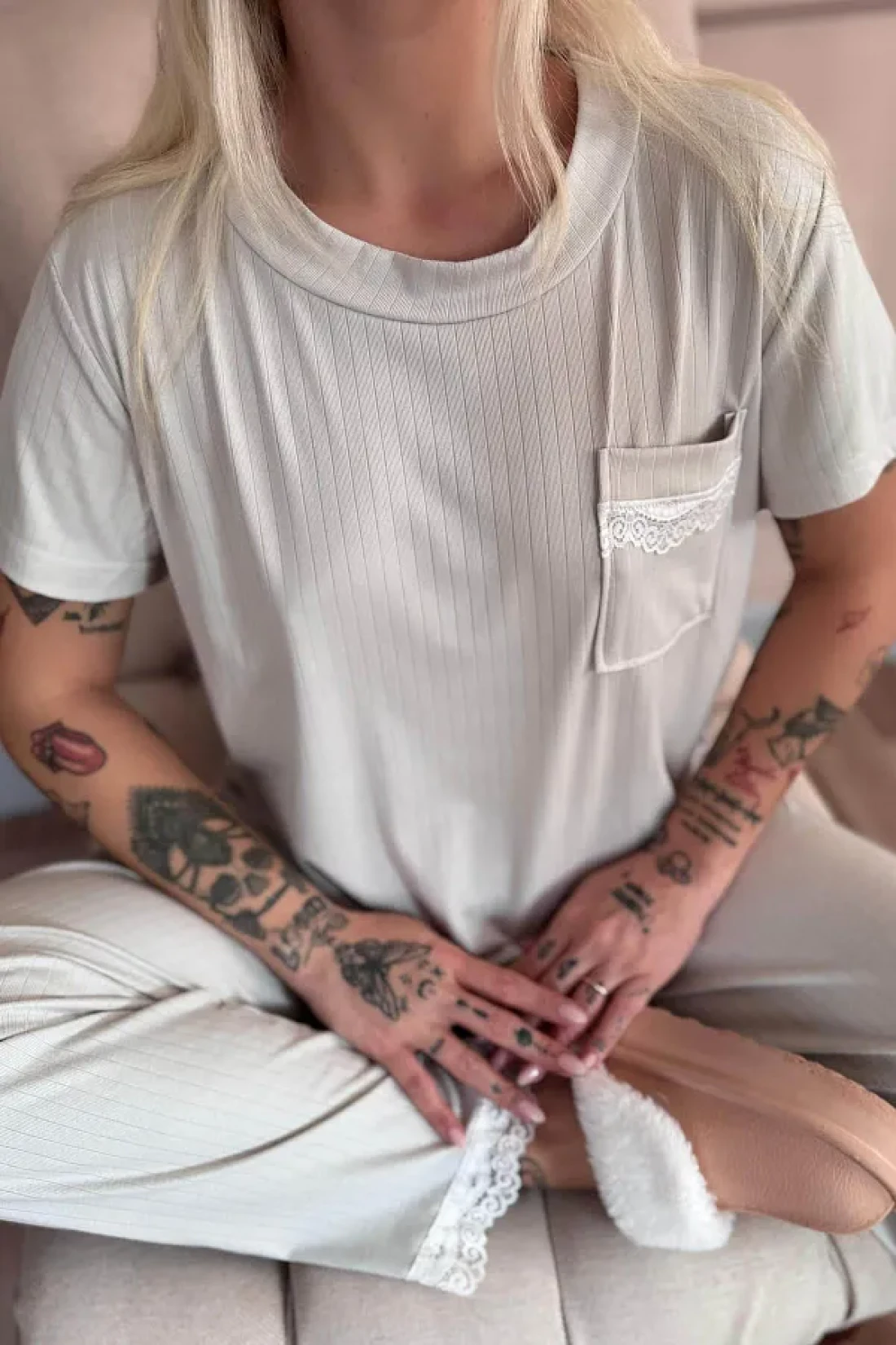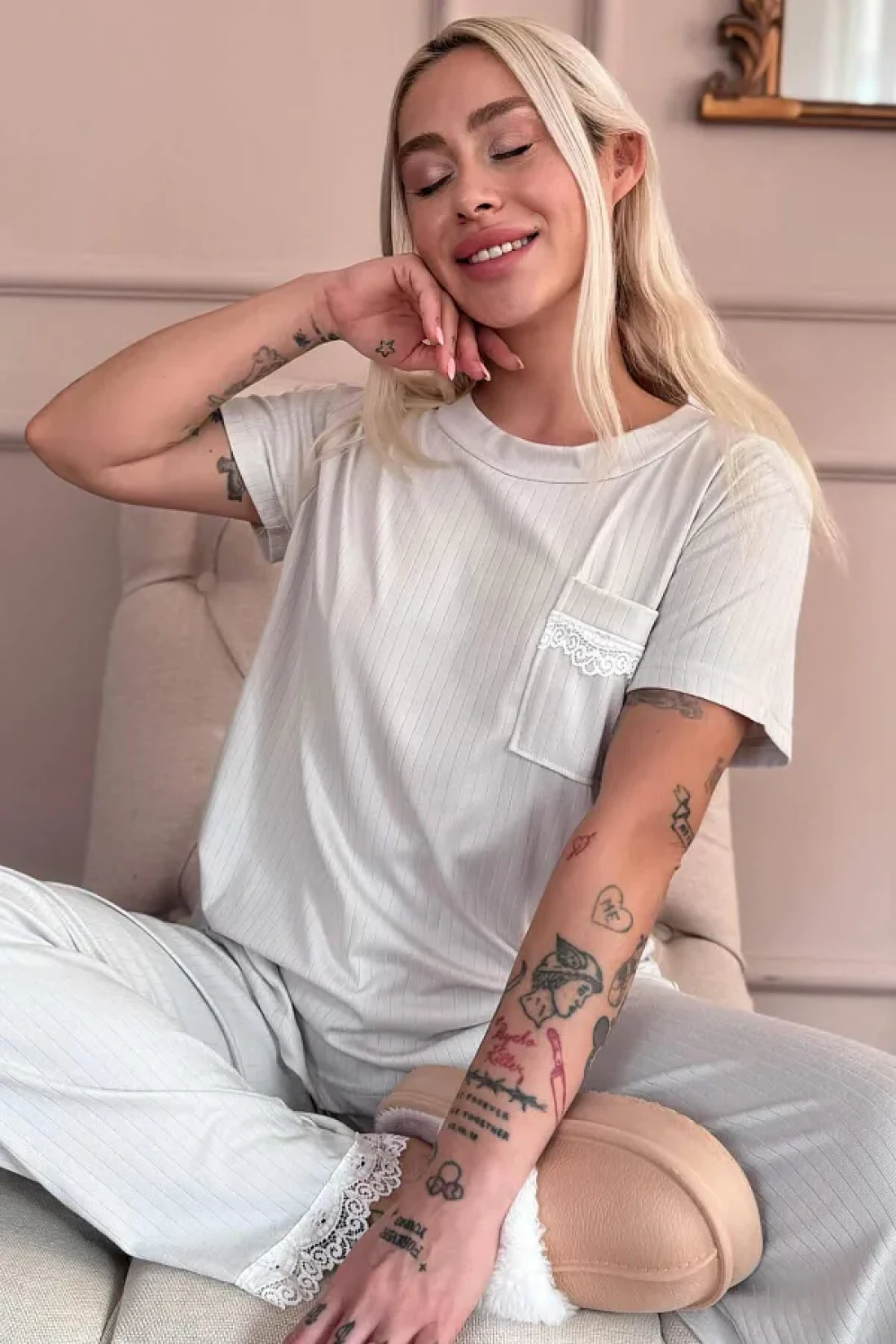 Pijamaevi Gray Dublin Short Sleeve Lace Women's Pajamas Set