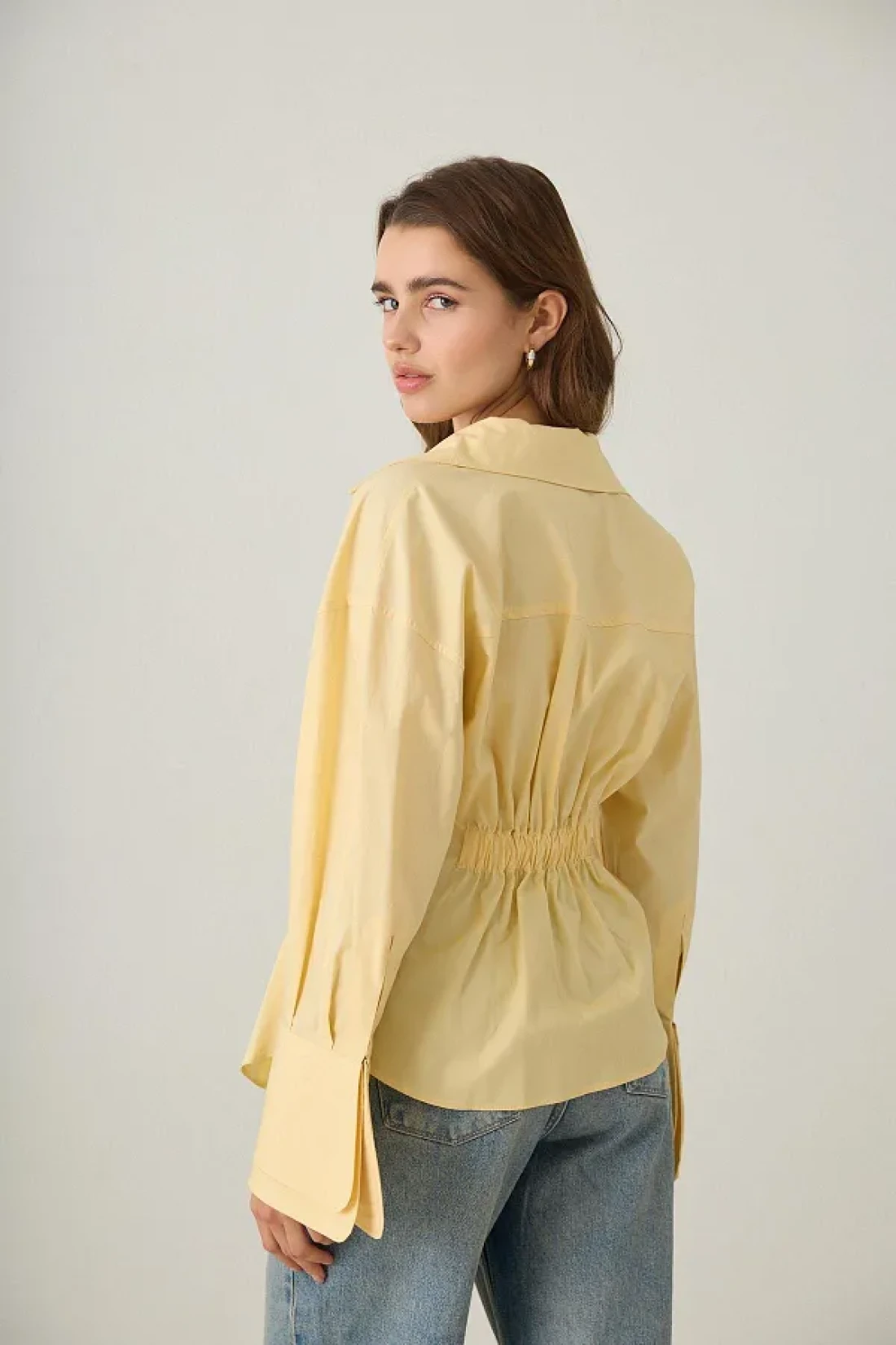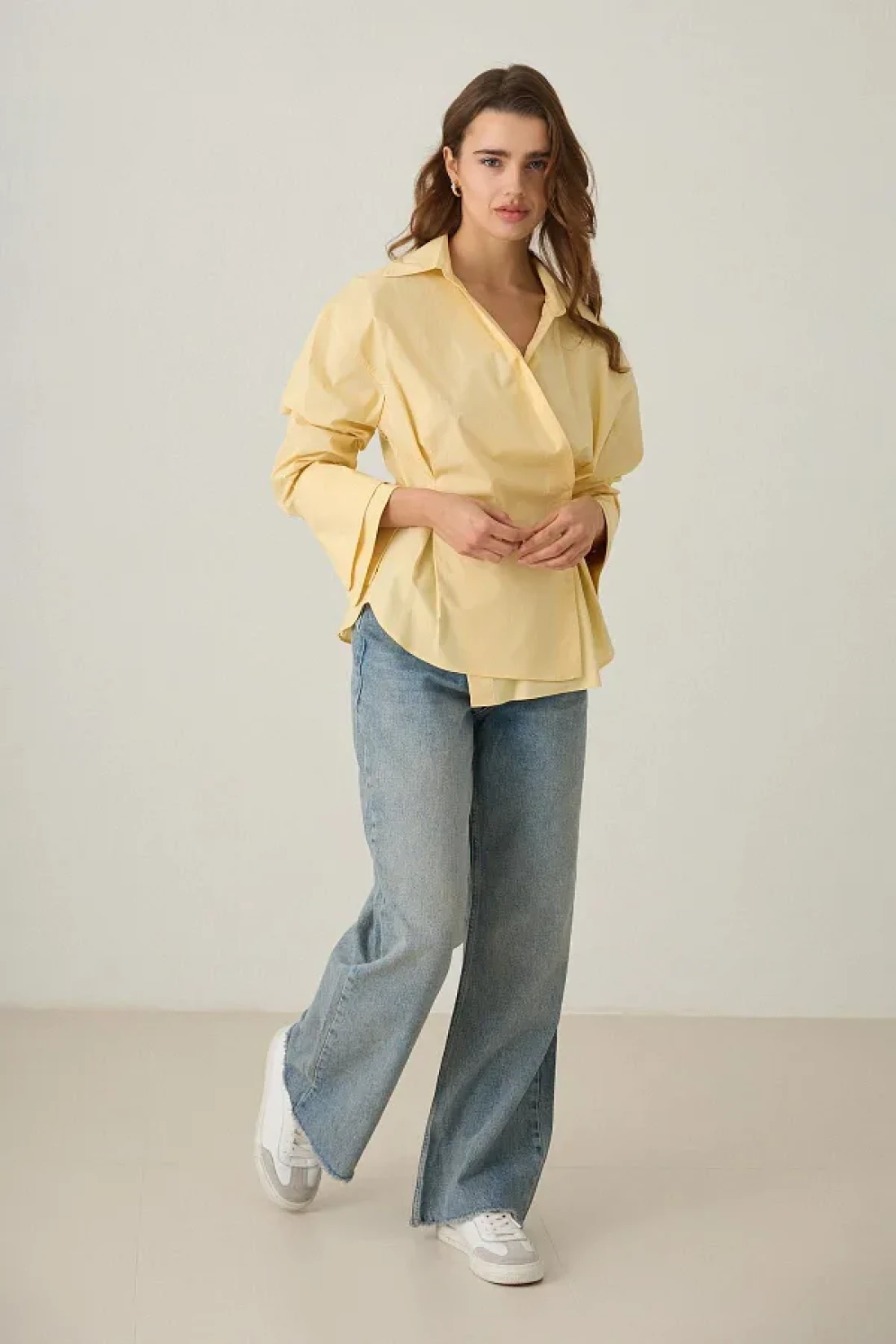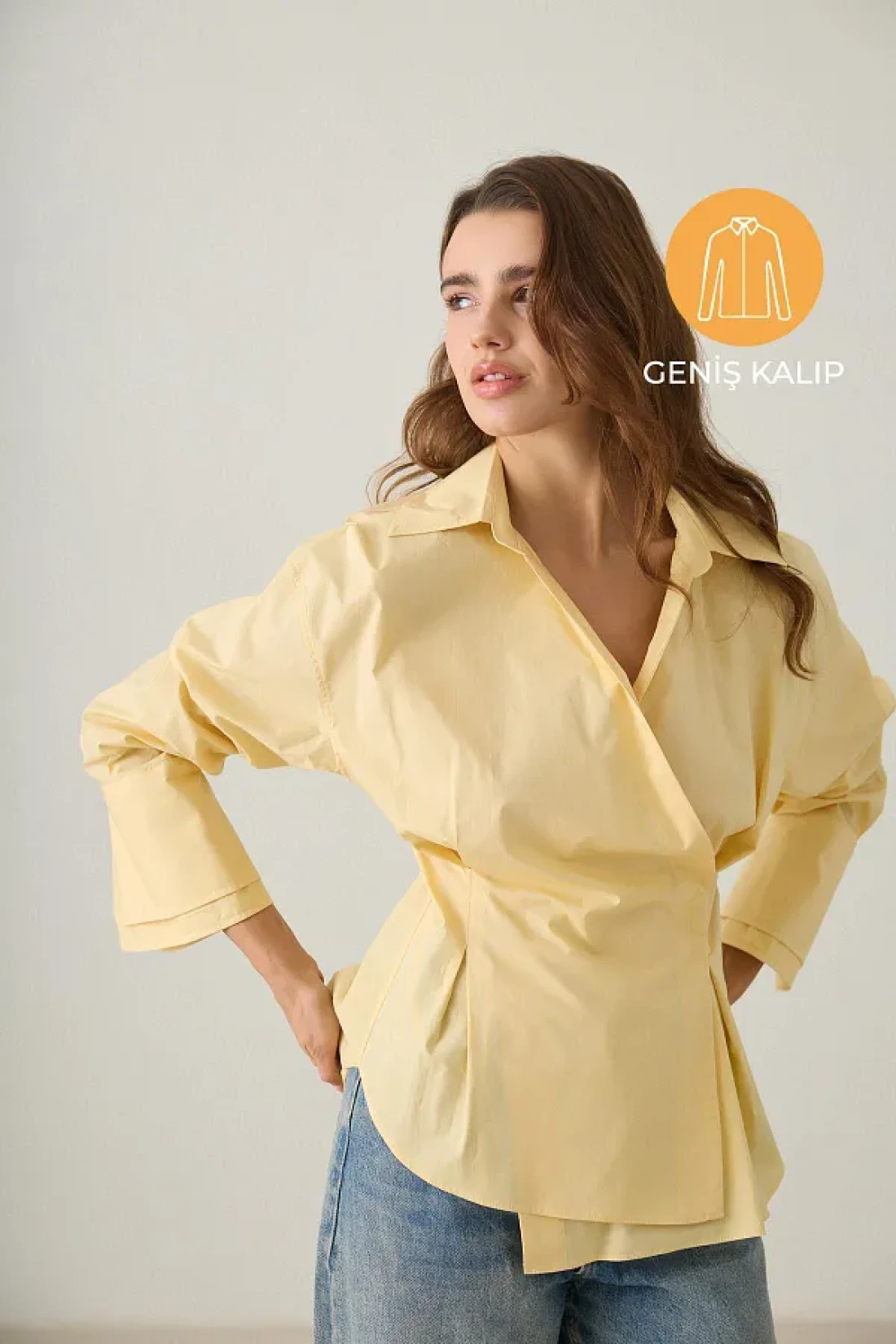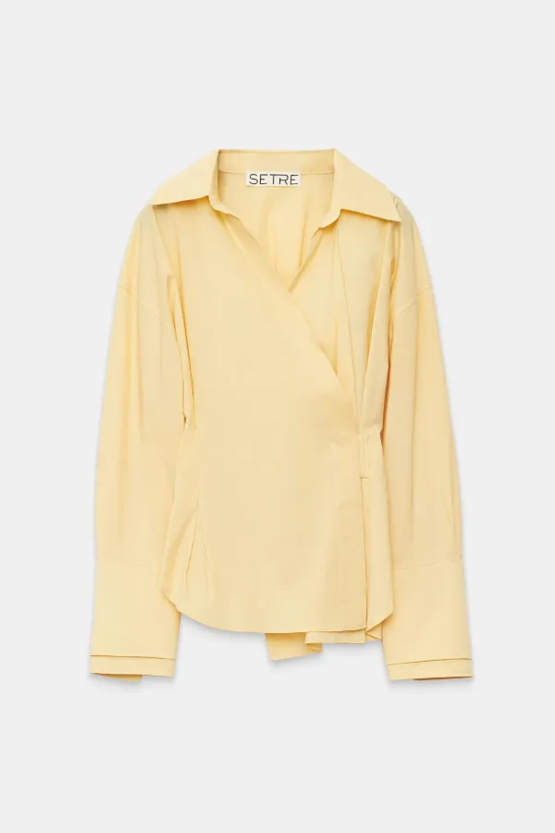 Setre Butter Yellow Waist Detailed Asymmetric Closure Long Sleeve Wide Cut Shirt