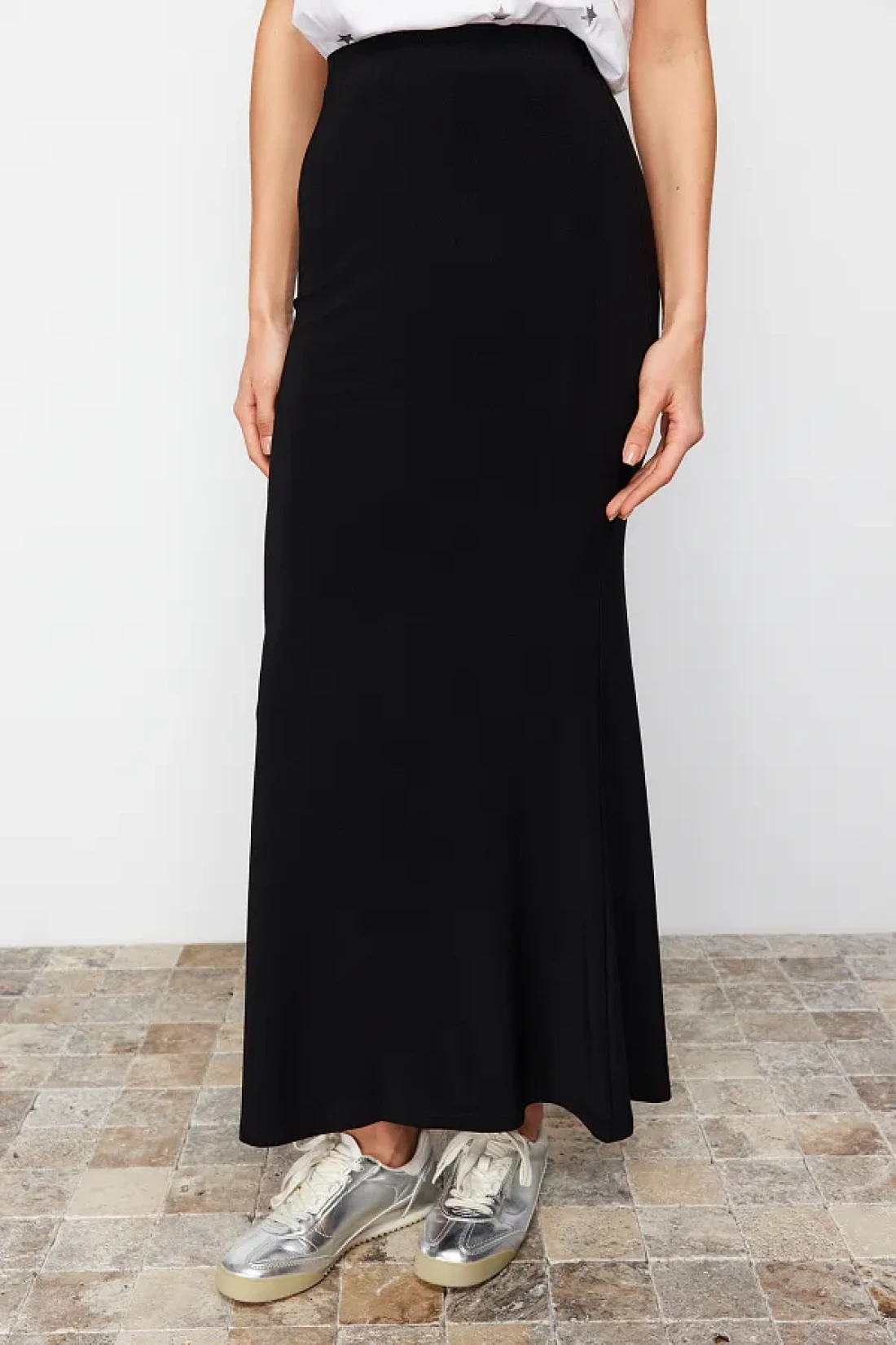 Collection Black Fitted Fish Form Flexible Knitted Maxi Skirt Twoss24Et00155