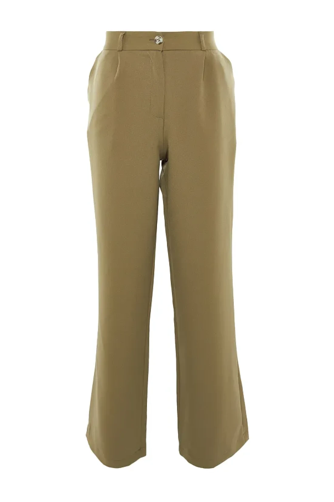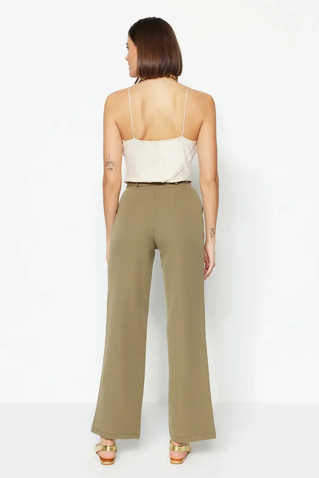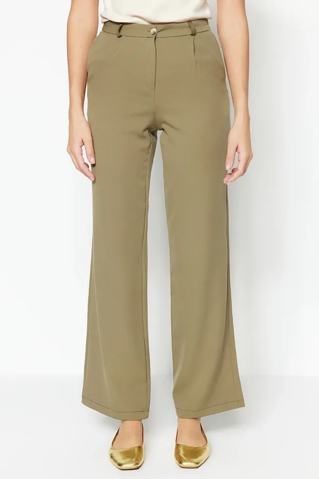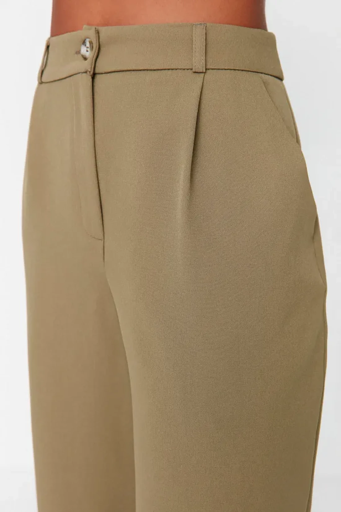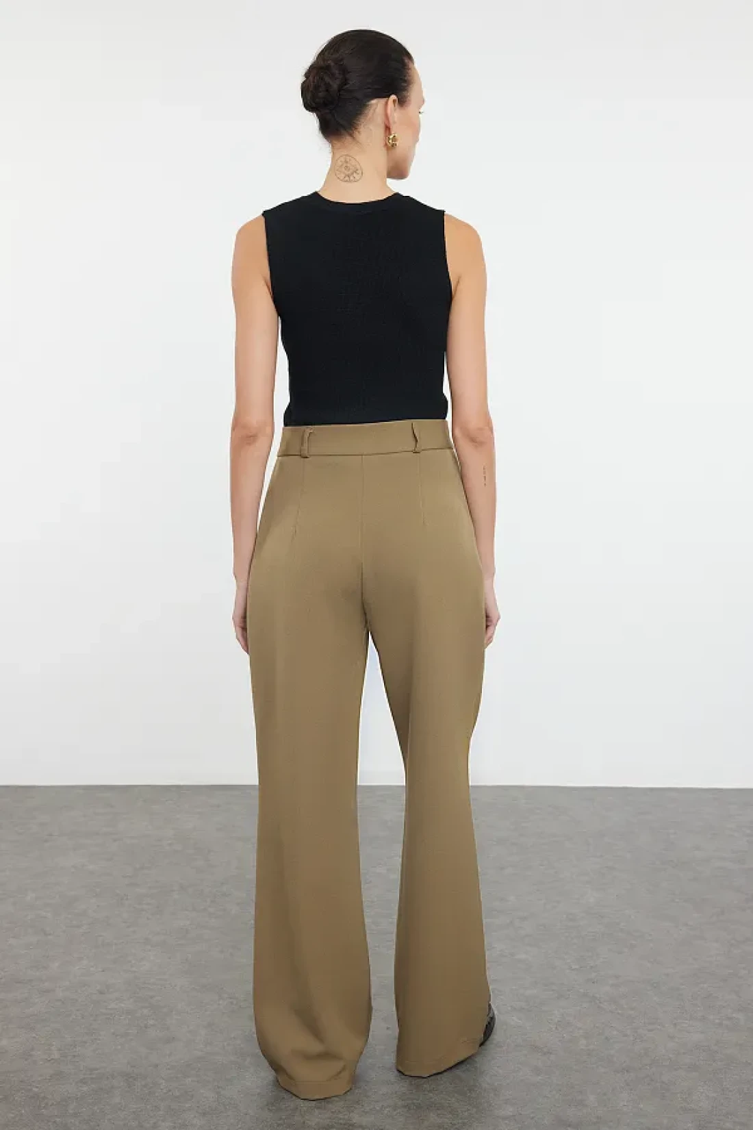 Collection High Waist Wide Leg Pleated Fabric Pants - Light Khaki Twoaw21Pl0076