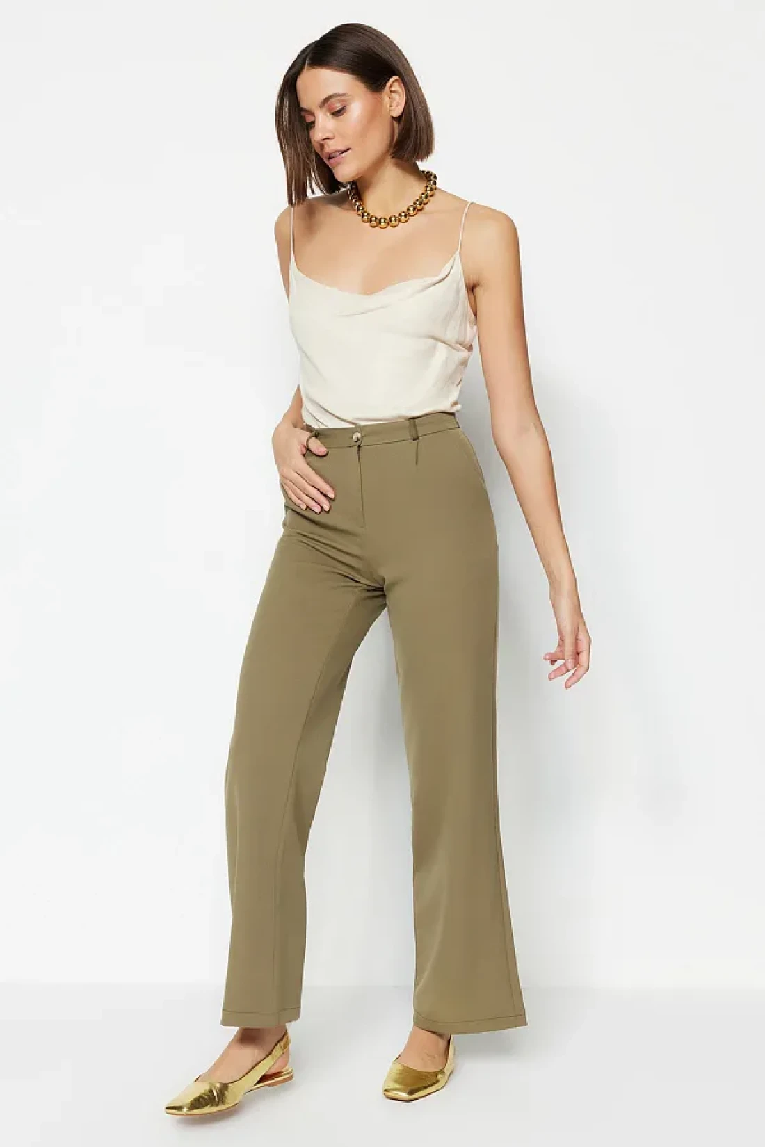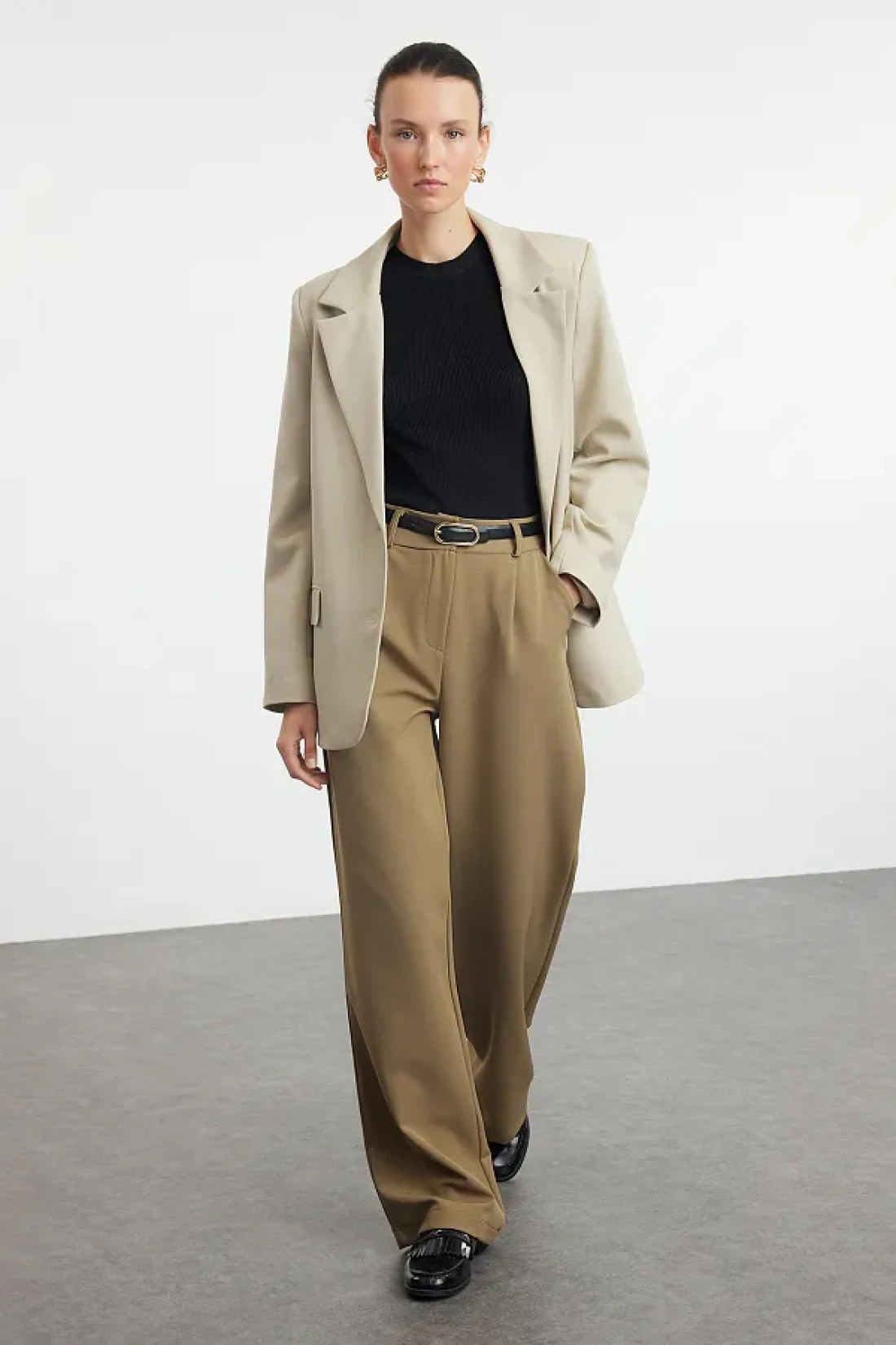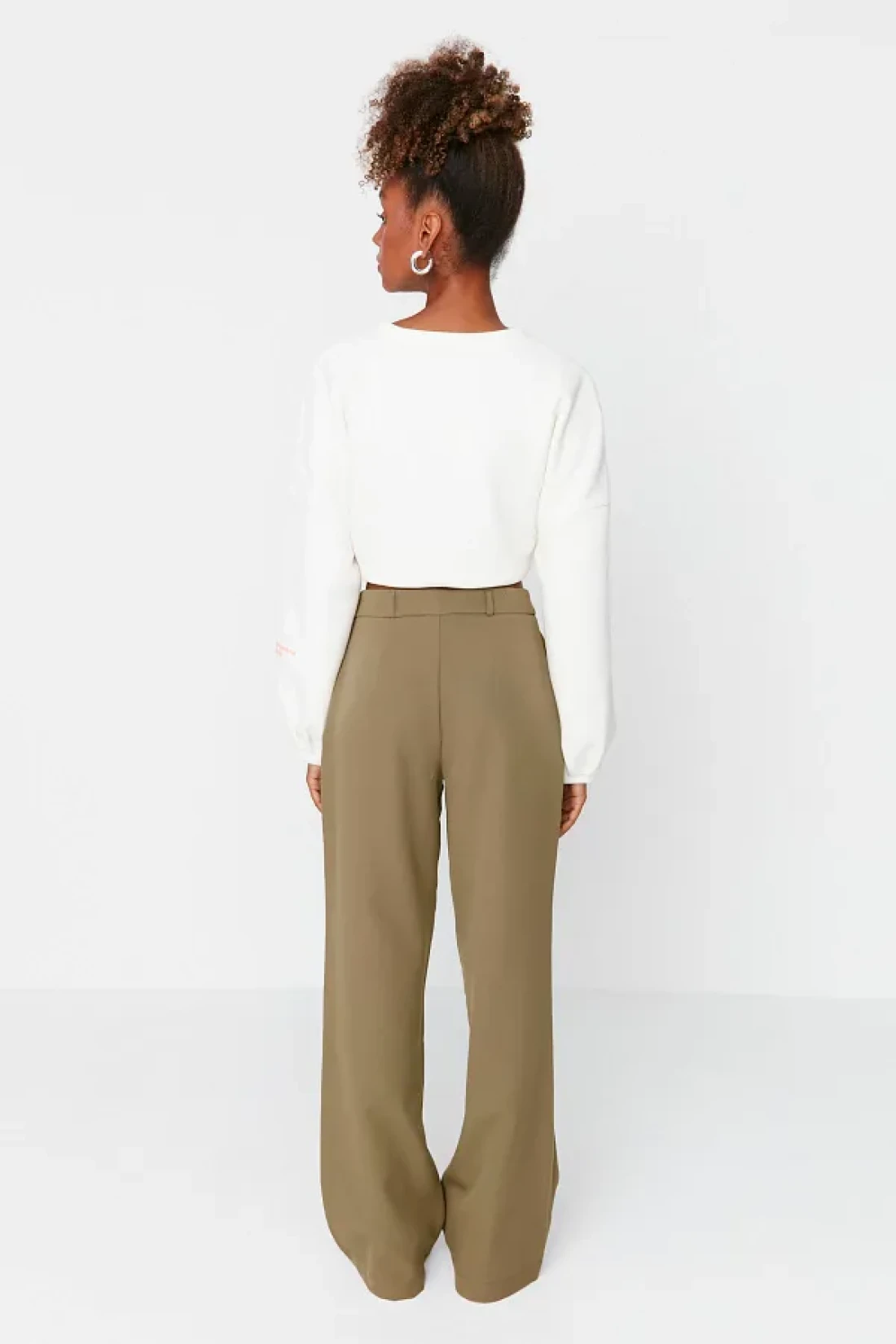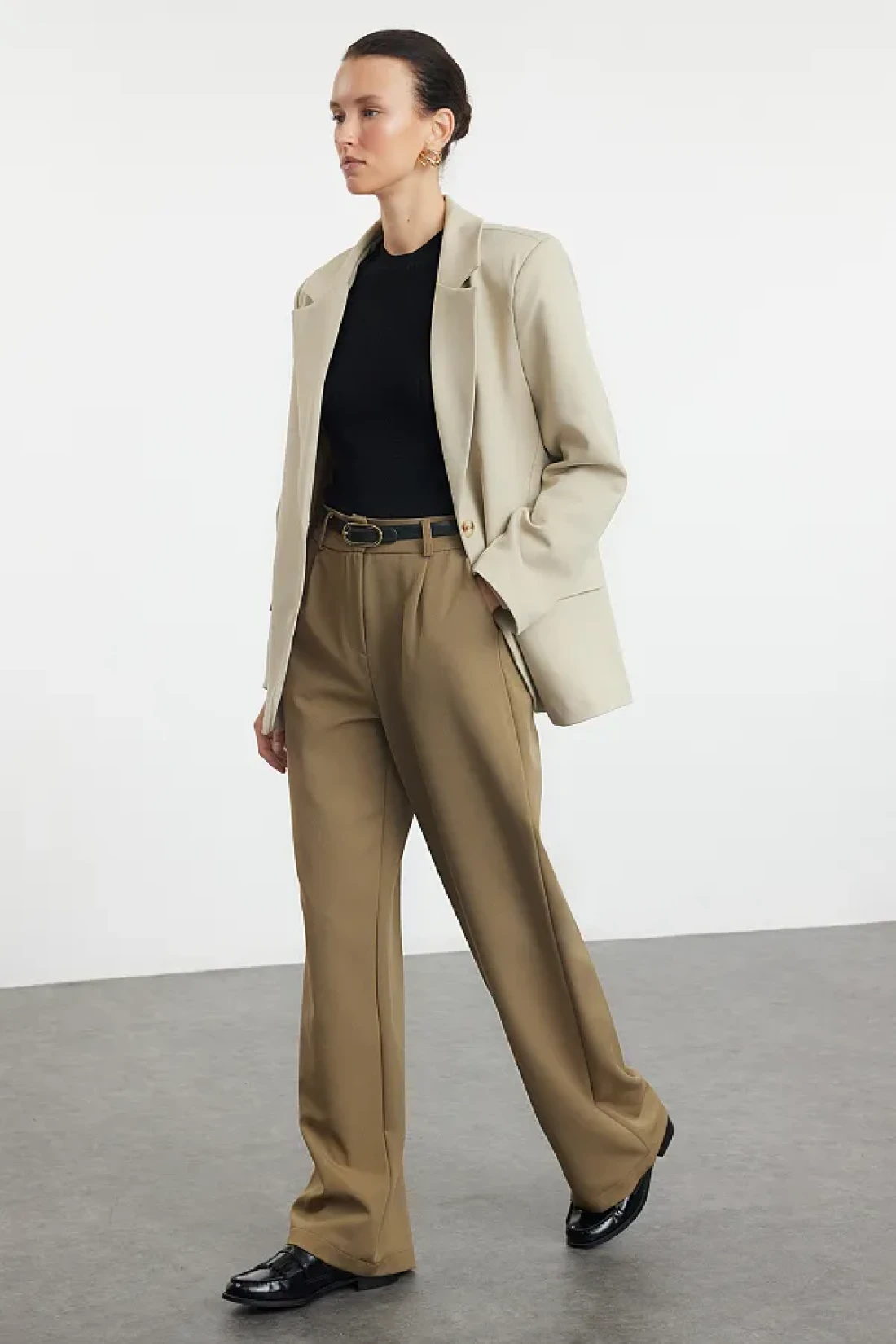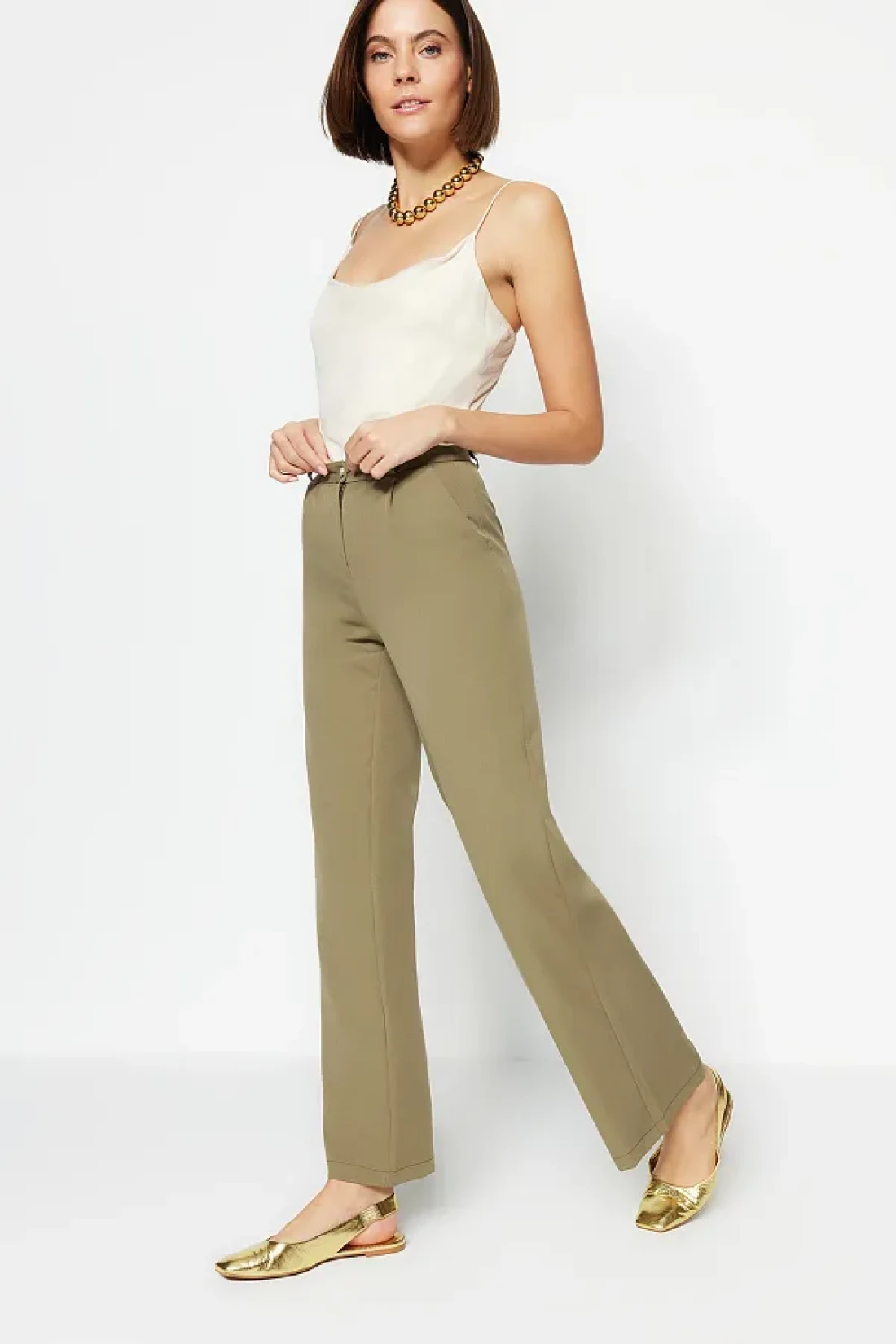 Collection High Waist Wide Leg Pleated Fabric Pants - Light Khaki Twoaw21Pl0076