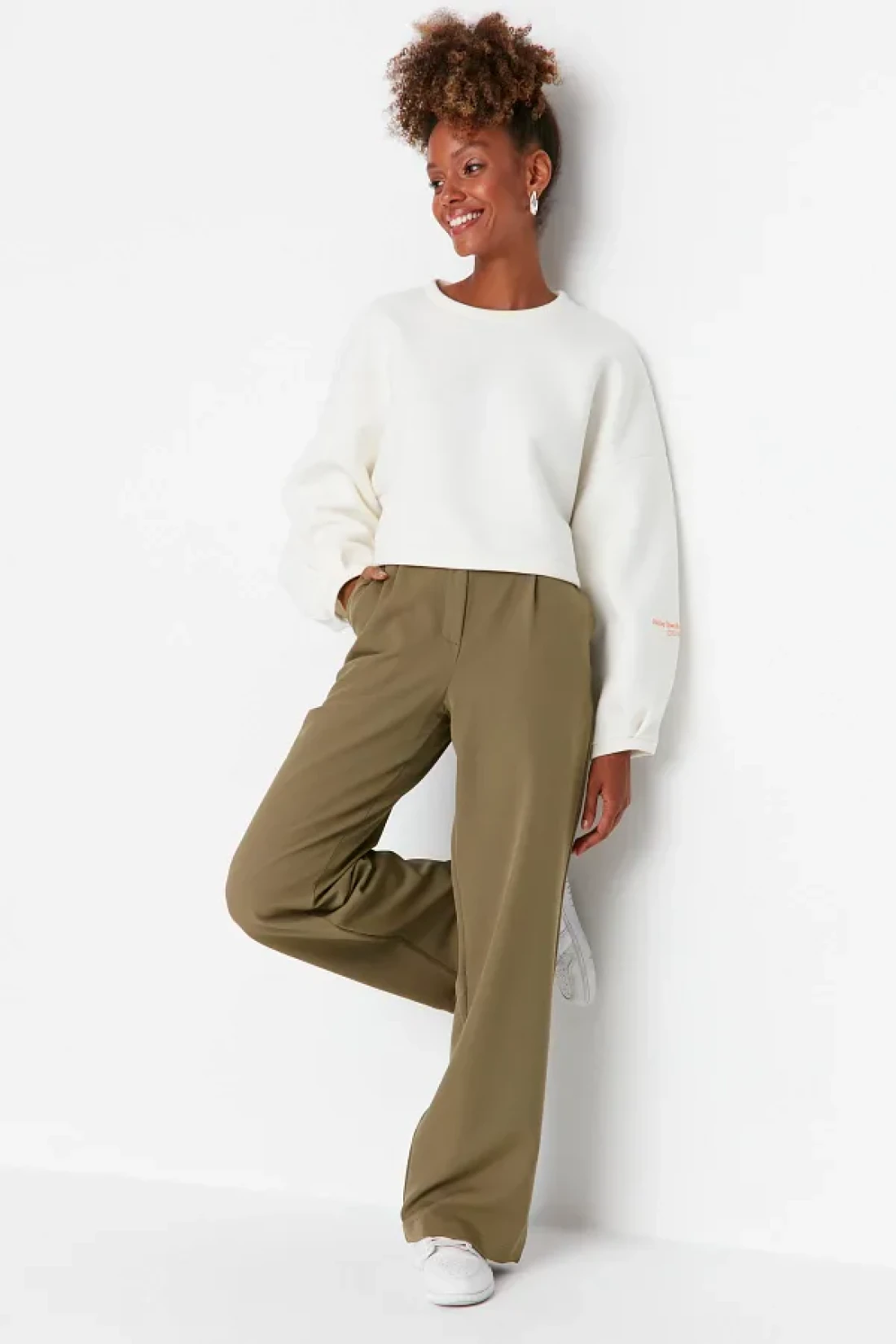 The wide leg silhouette gives a modern and trendy look while also offering a comfortable experience. Finike woven type increases the breathable structure of the product and gives a feeling of freshness all day long