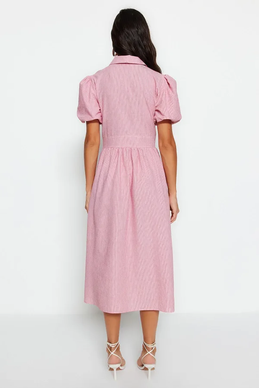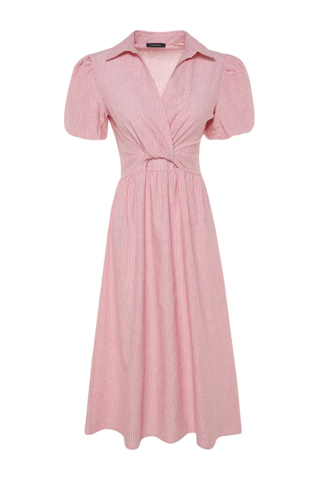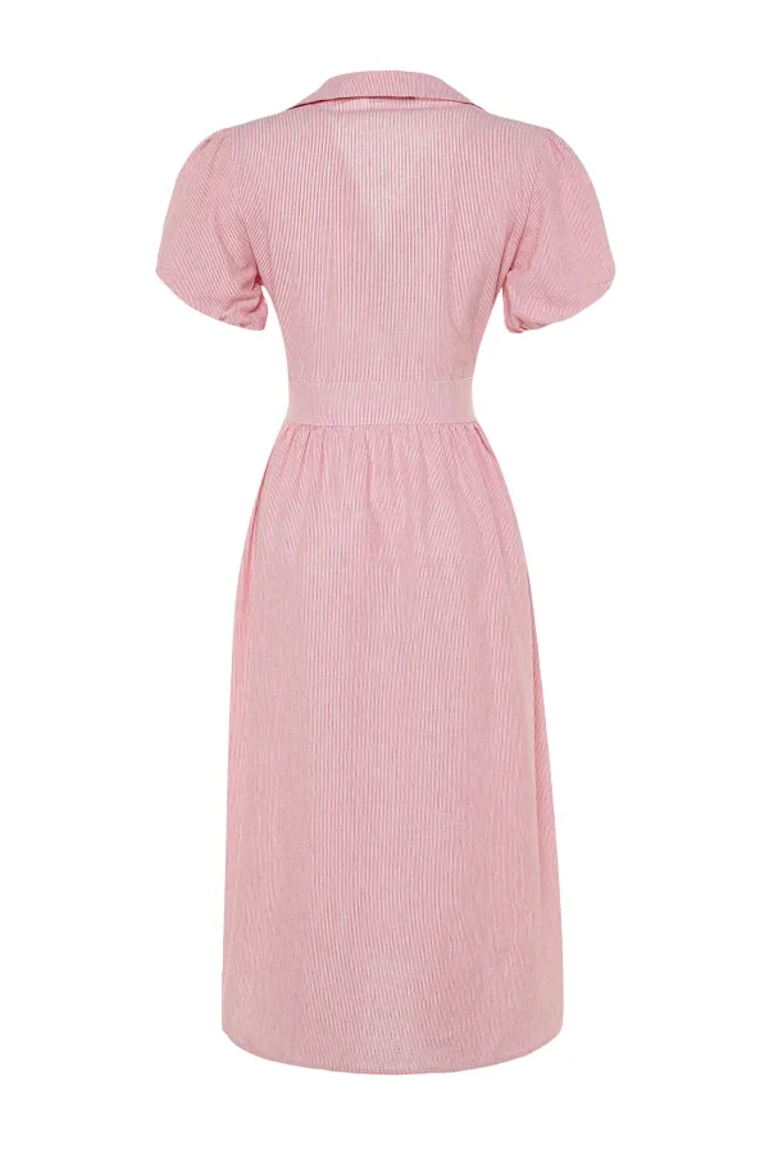 Collection Pink Striped Double Breasted Collar Midi Woven Dress TWOSS23EL02233