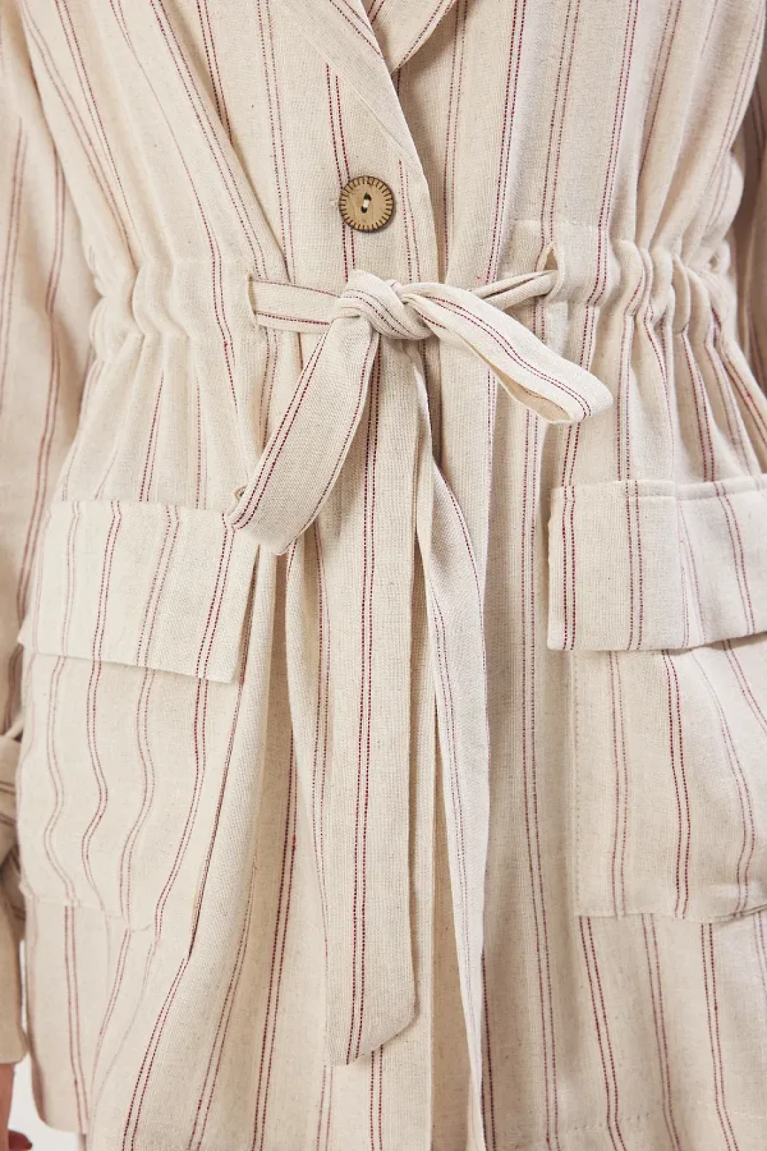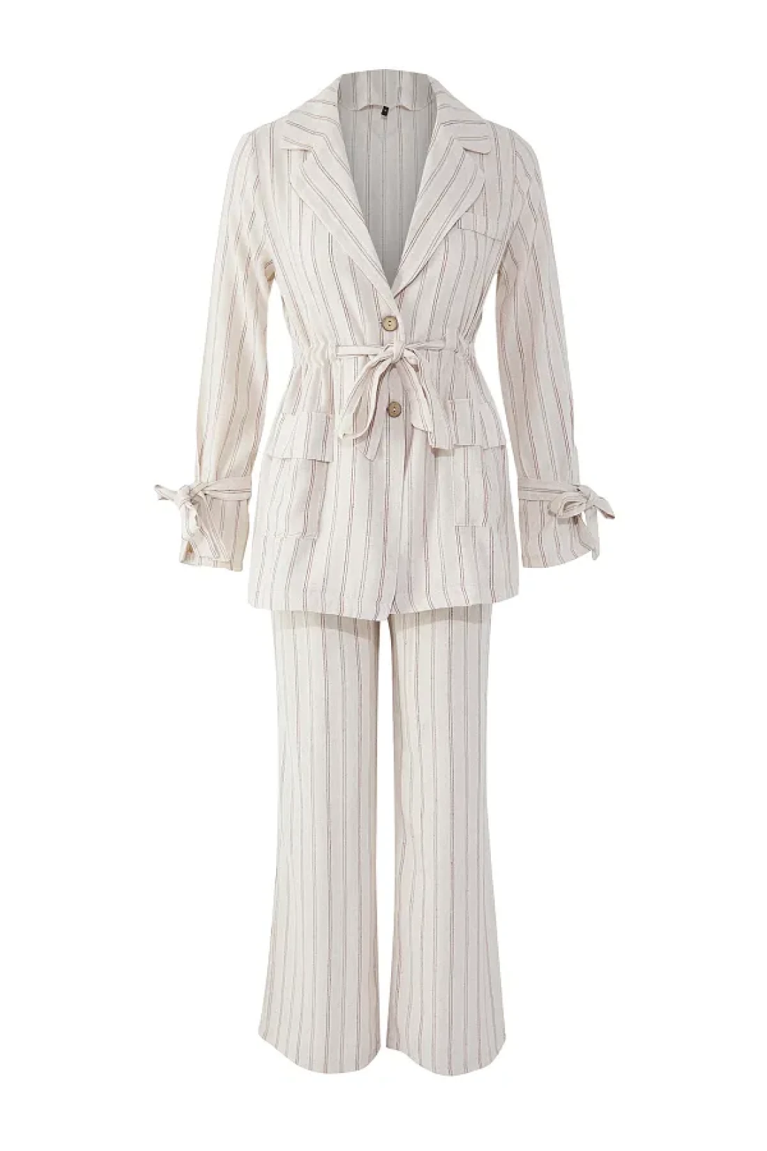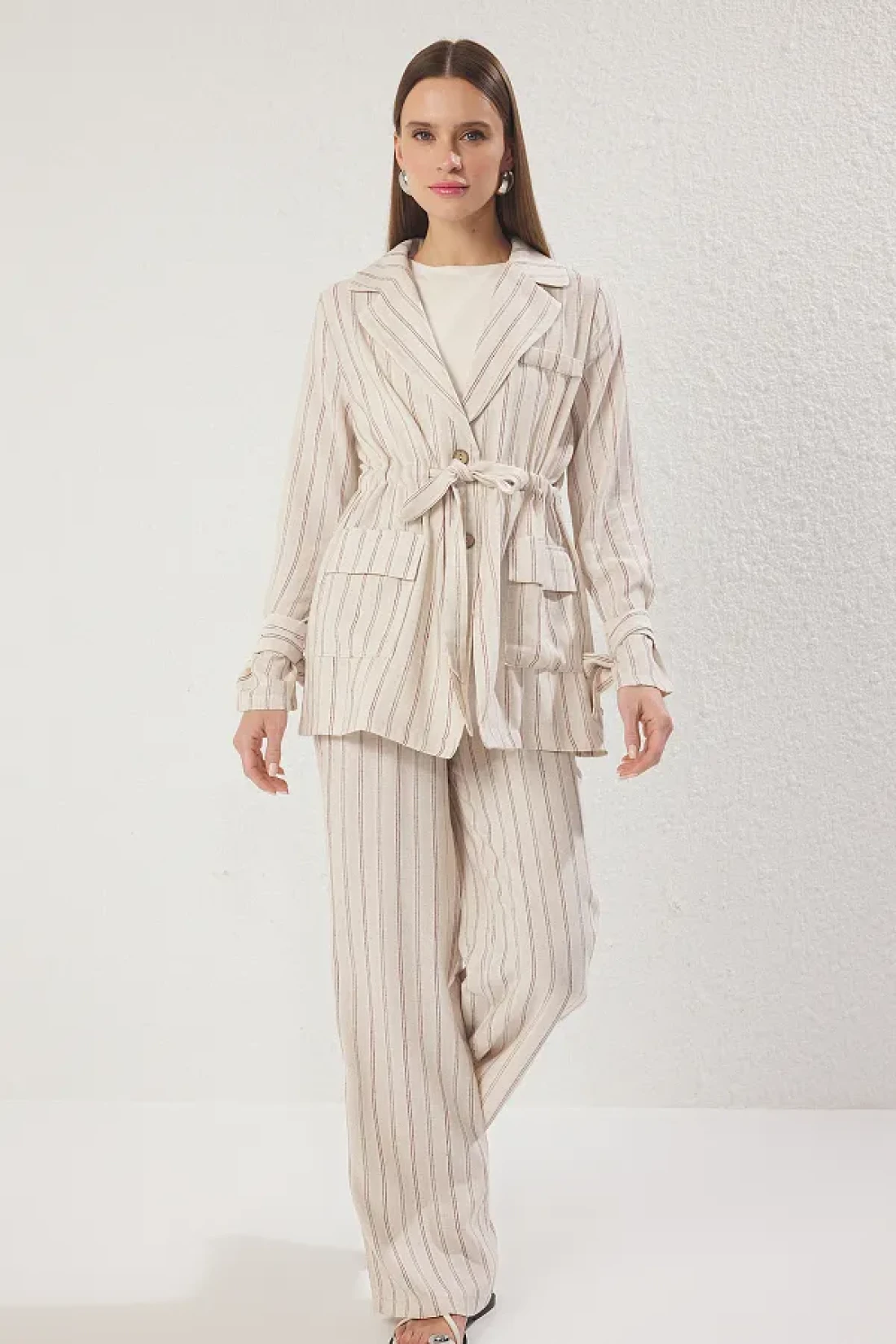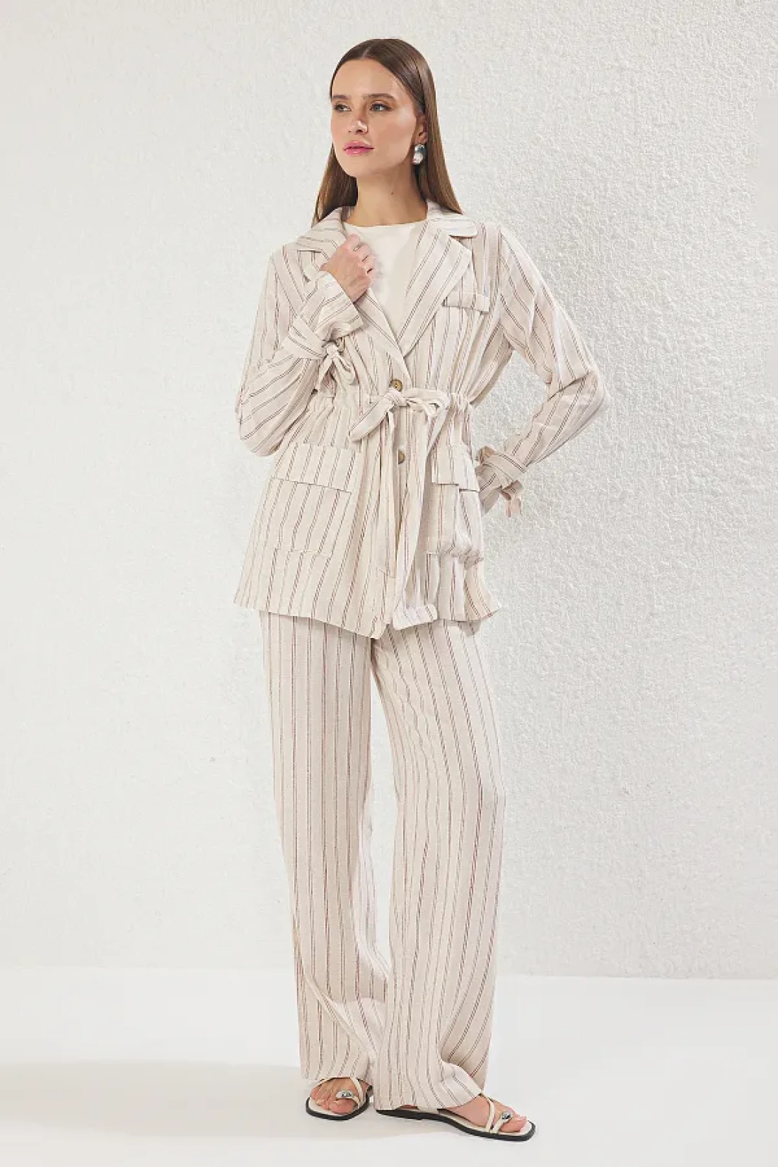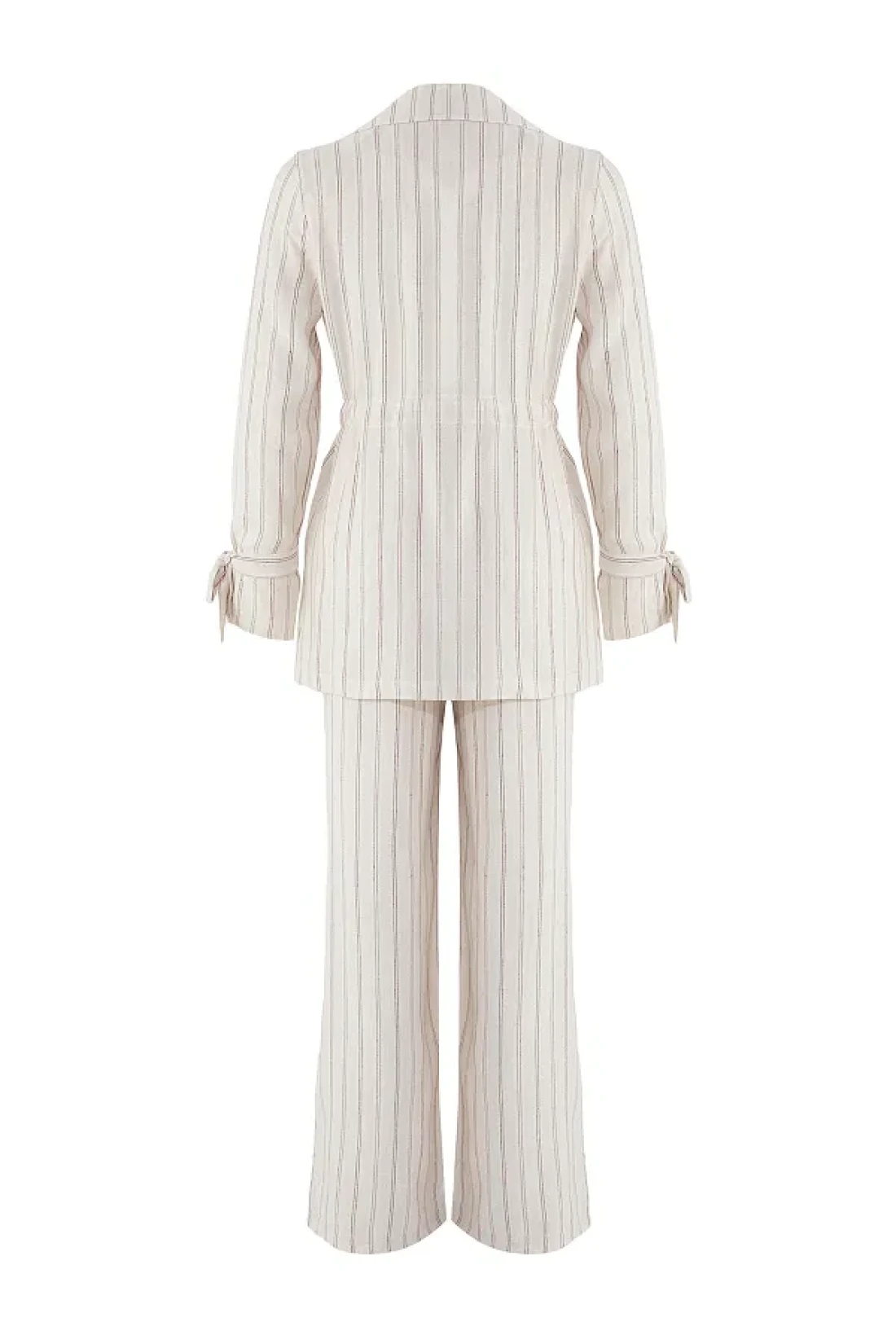 Modest Beige Linen Blended Striped Woven Under-Upper Set Tctss25Us00027
