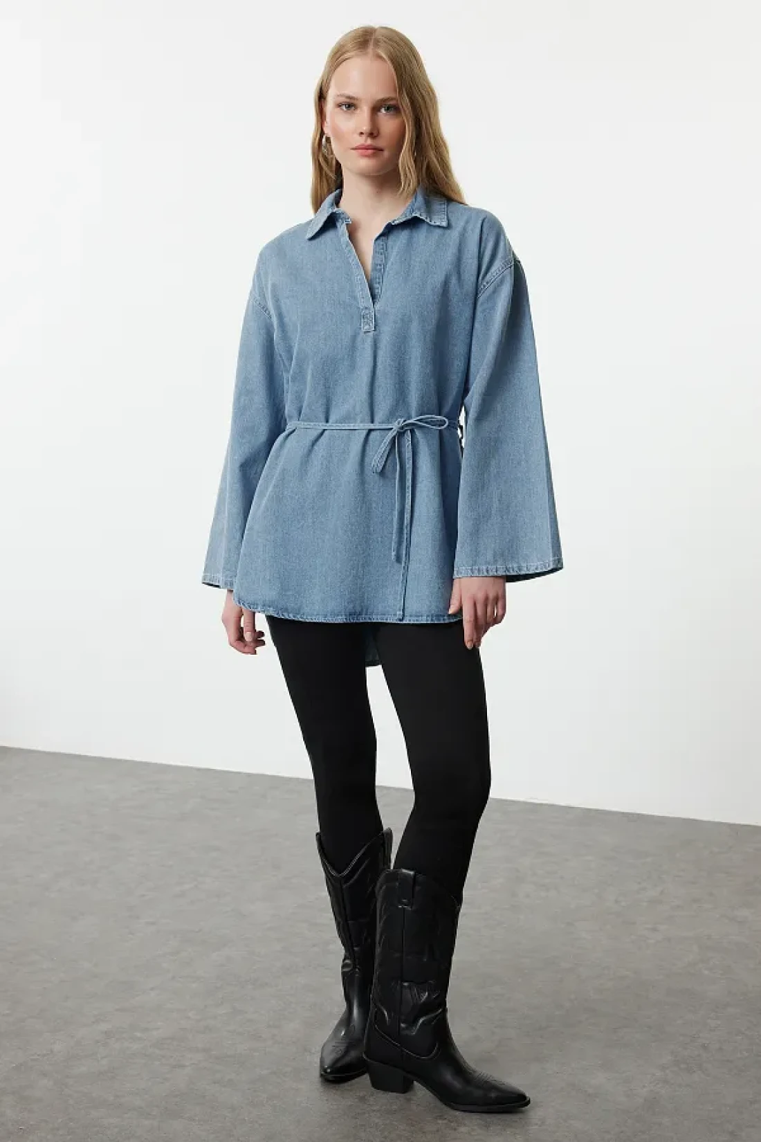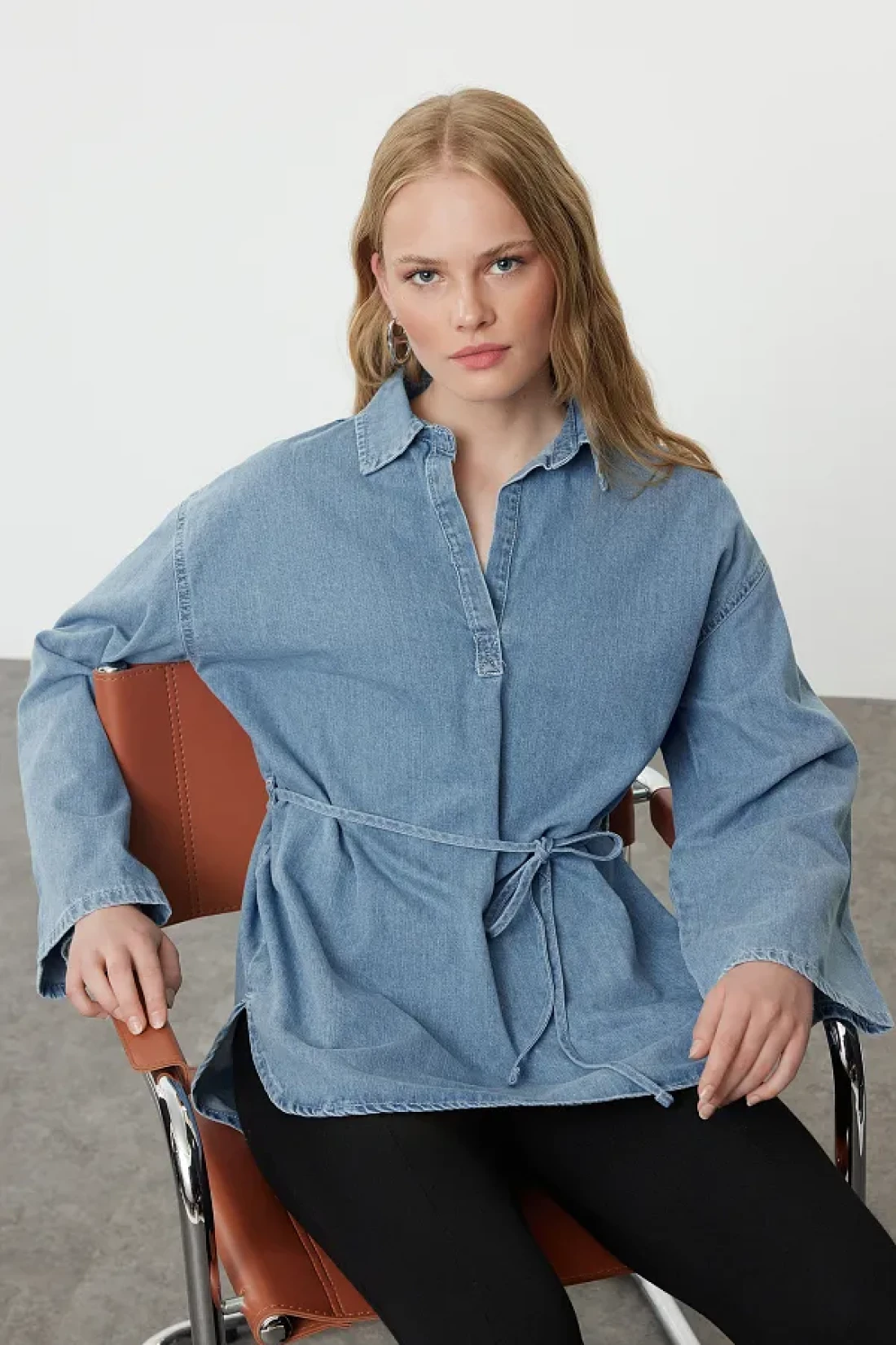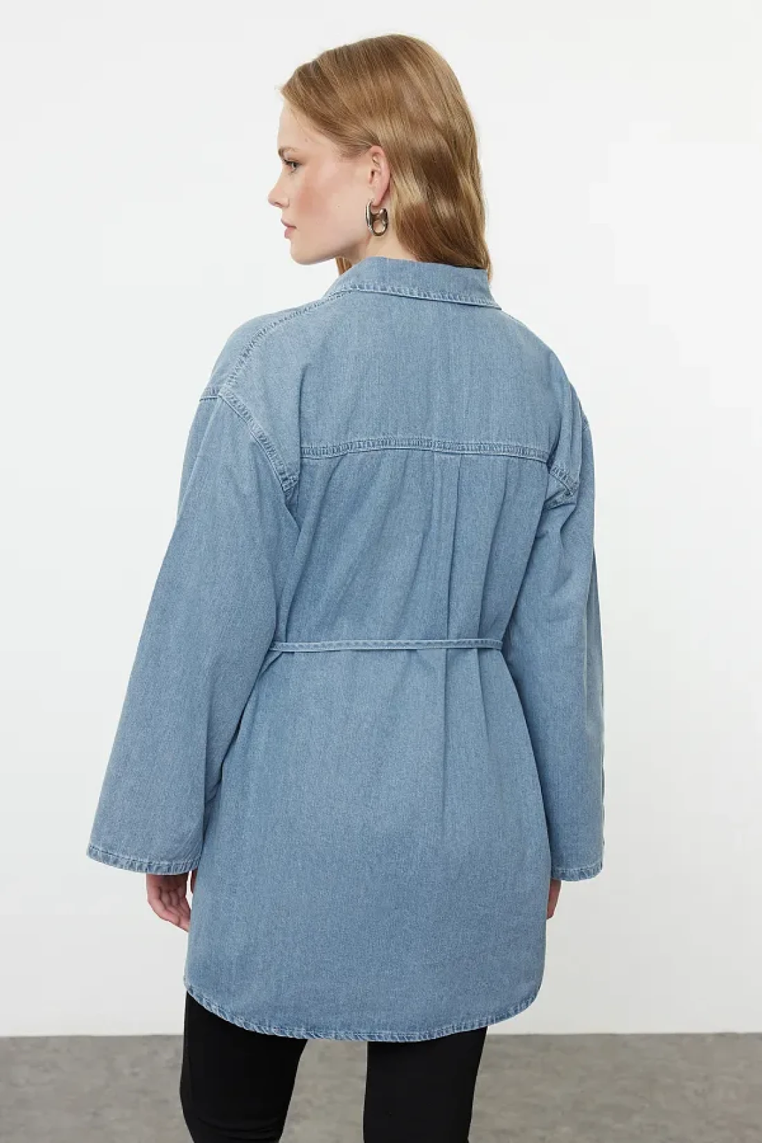Collection Oversize Blue Denim Shirt - Tie-Up, TWOAW25GO00082