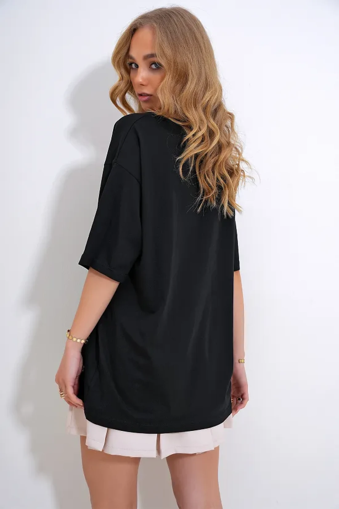 It offers a comfortable experience with its Oversized design, suitable for daily use with its comfortable cut. It provides comfort all day long with its breathable structure thanks to its 100% cotton material. It creates a striking style with the trock and stone printing technique, while giving a modern and chic look with its bicycle collar detail. 2-thread combed cotton weaving type increases durability, allowing for long-term use