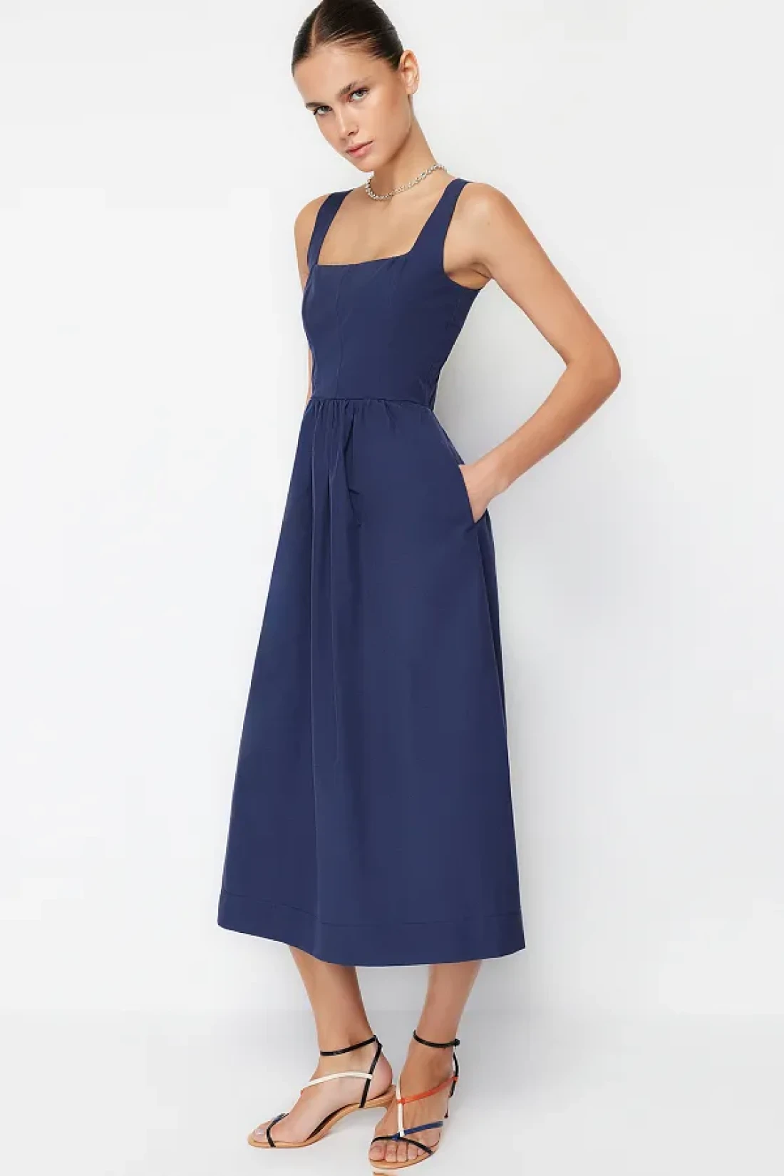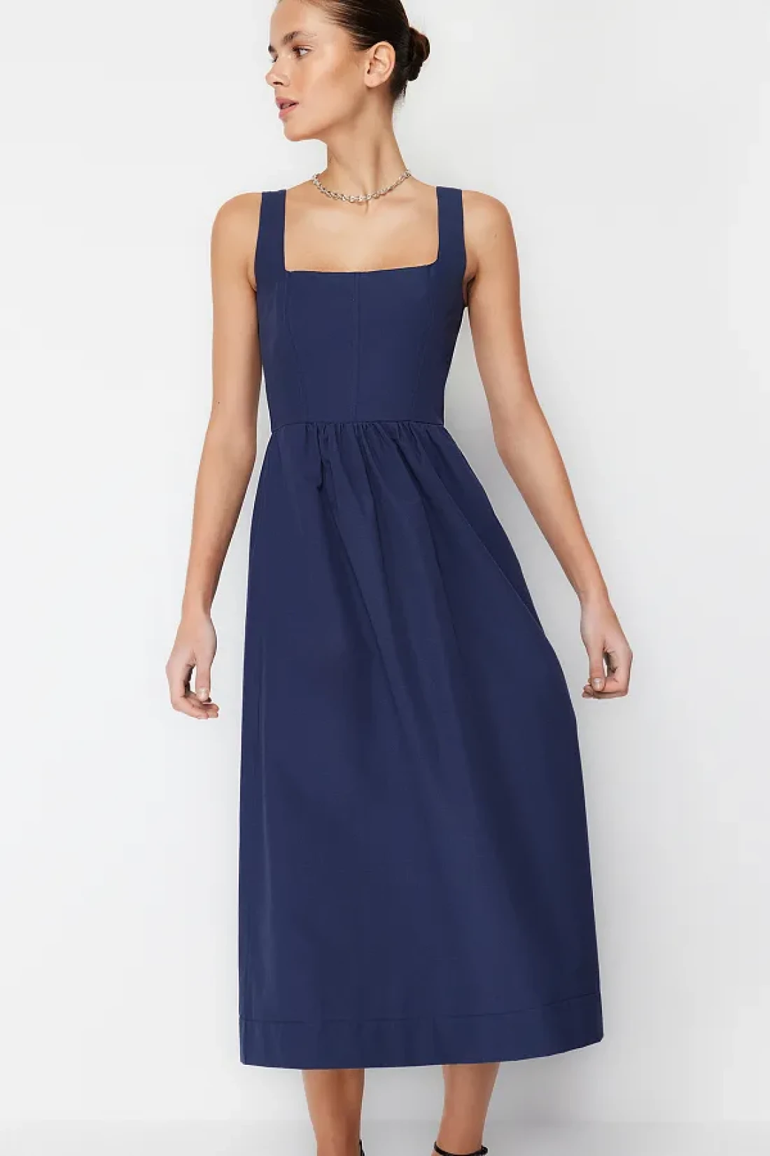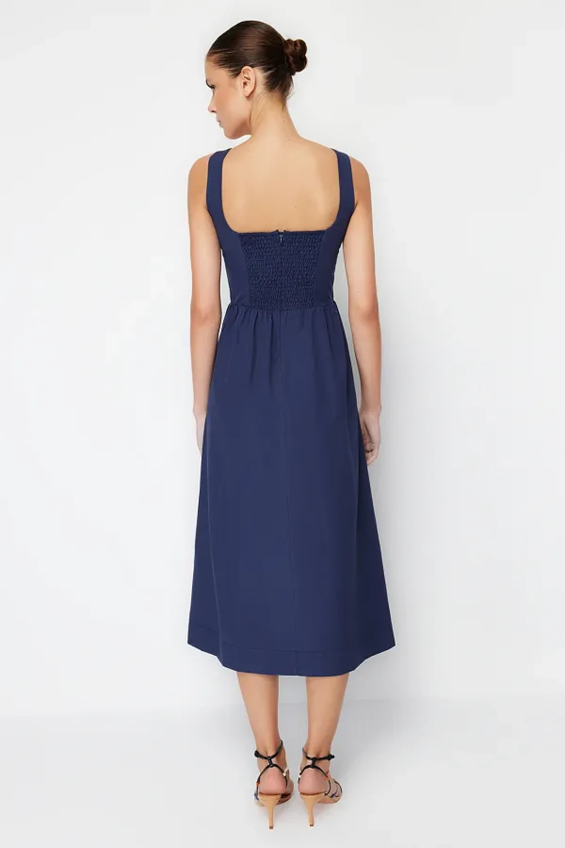 Collection Indigo Waist Midi Corset Woven Dress with Sewing Detail TWOSS24EL00038