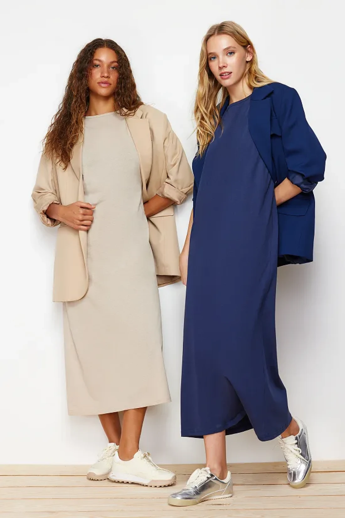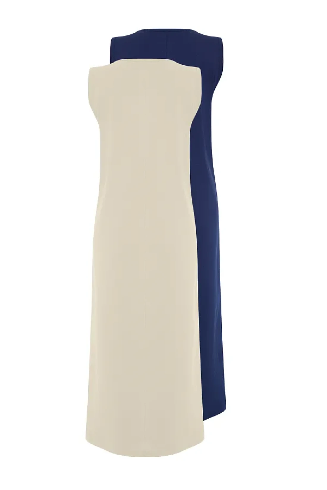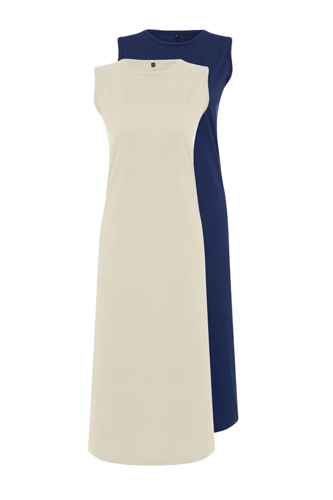 Modest Pack of 2 Navy Blue and Mink 100% Cotton Knitted Dress - TCTAW22UK0110