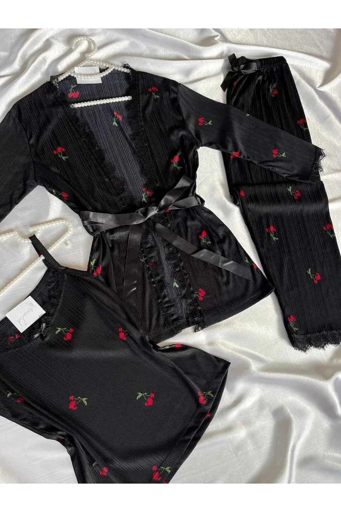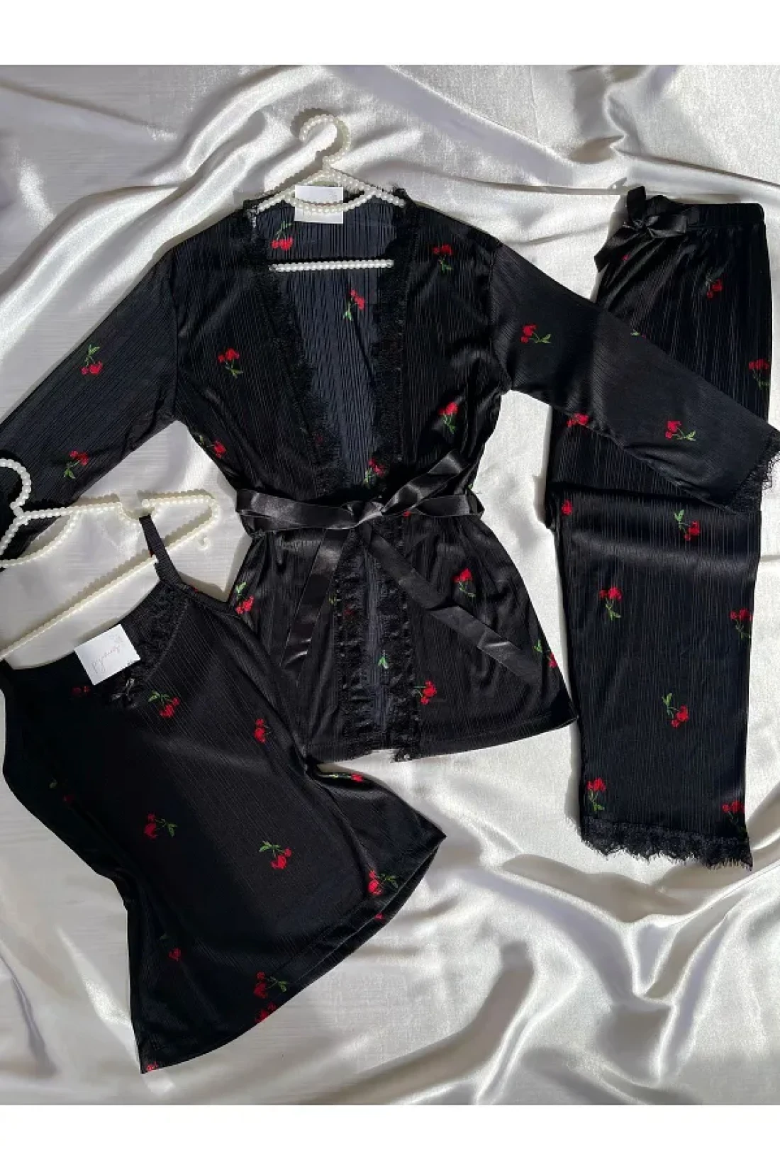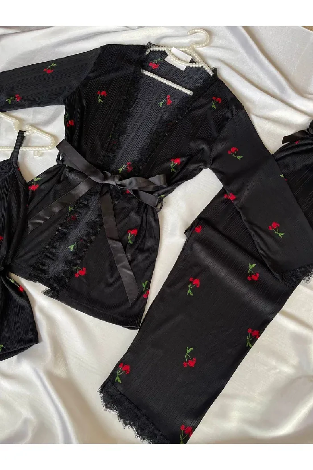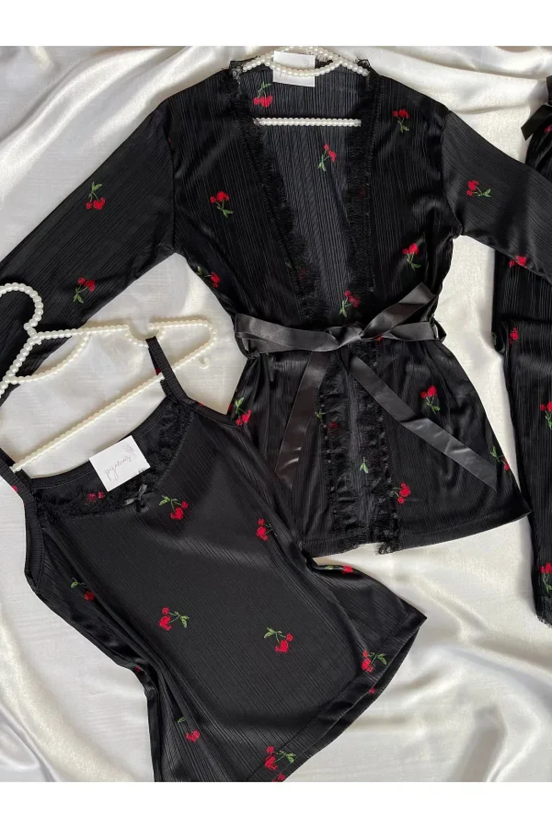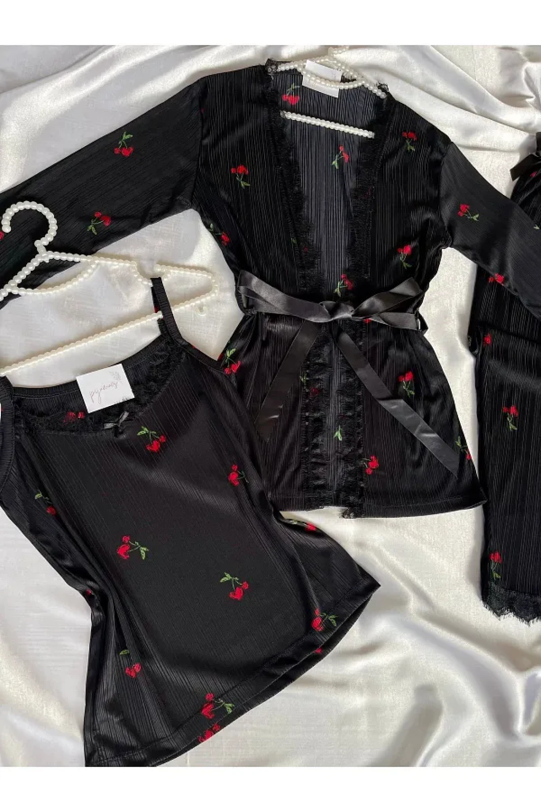 Pijamacs Black Cherry Patterned Pegasus Pajama Set with Apron